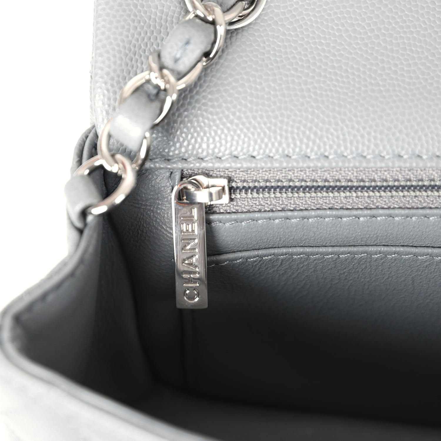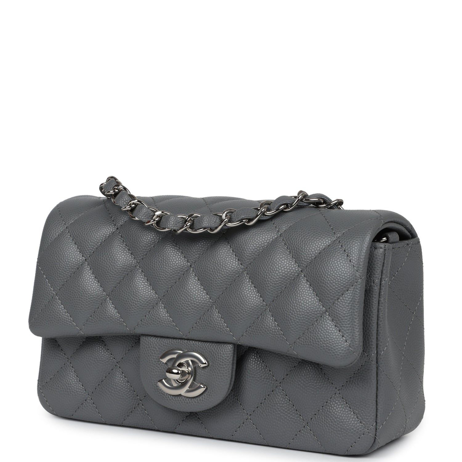 Chanel Mini Rectangular Flap Bag Dark Grey Caviar Silver Hardware