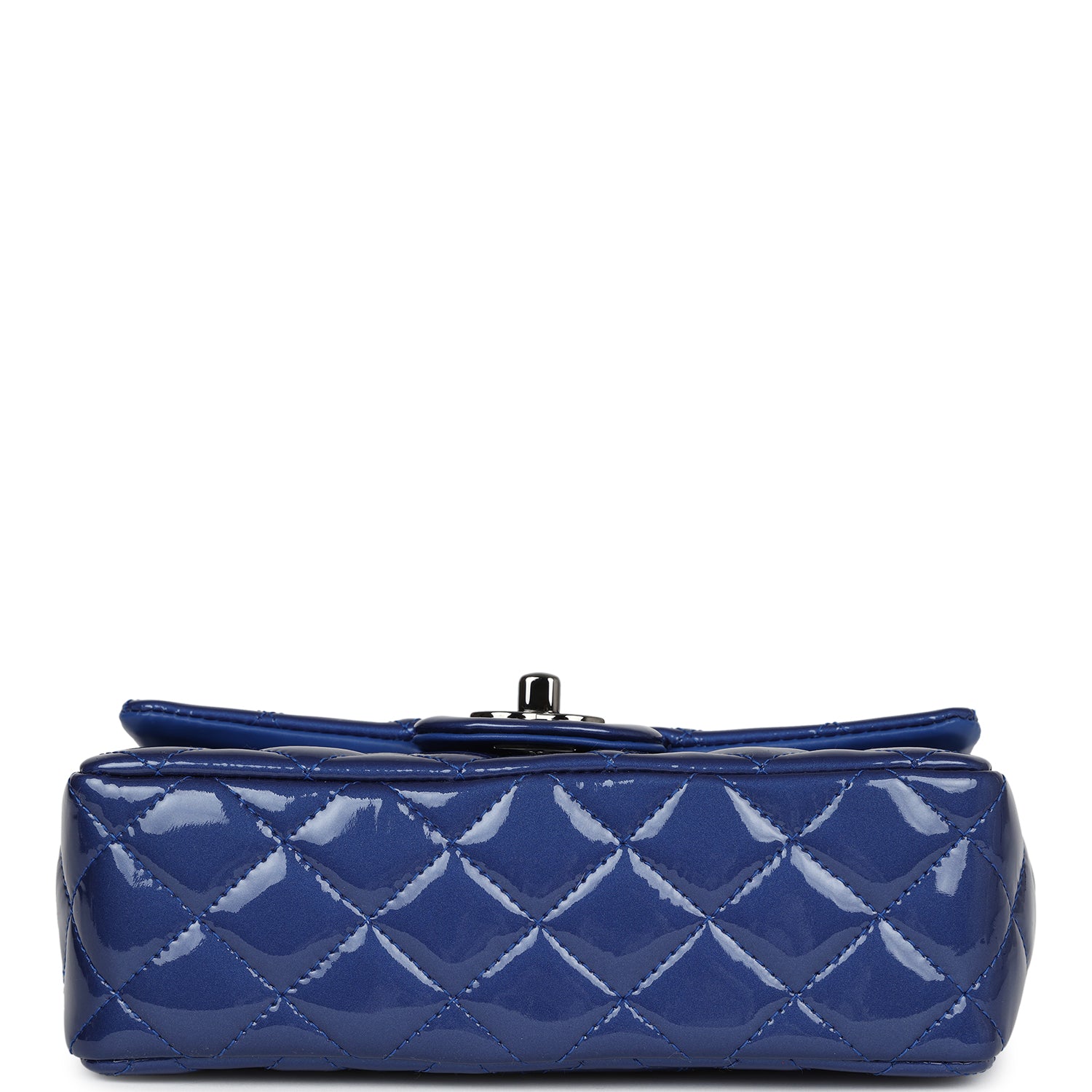 Chanel Mini Rectangular Flap Bag Blue Patent Ruthenium Hardware