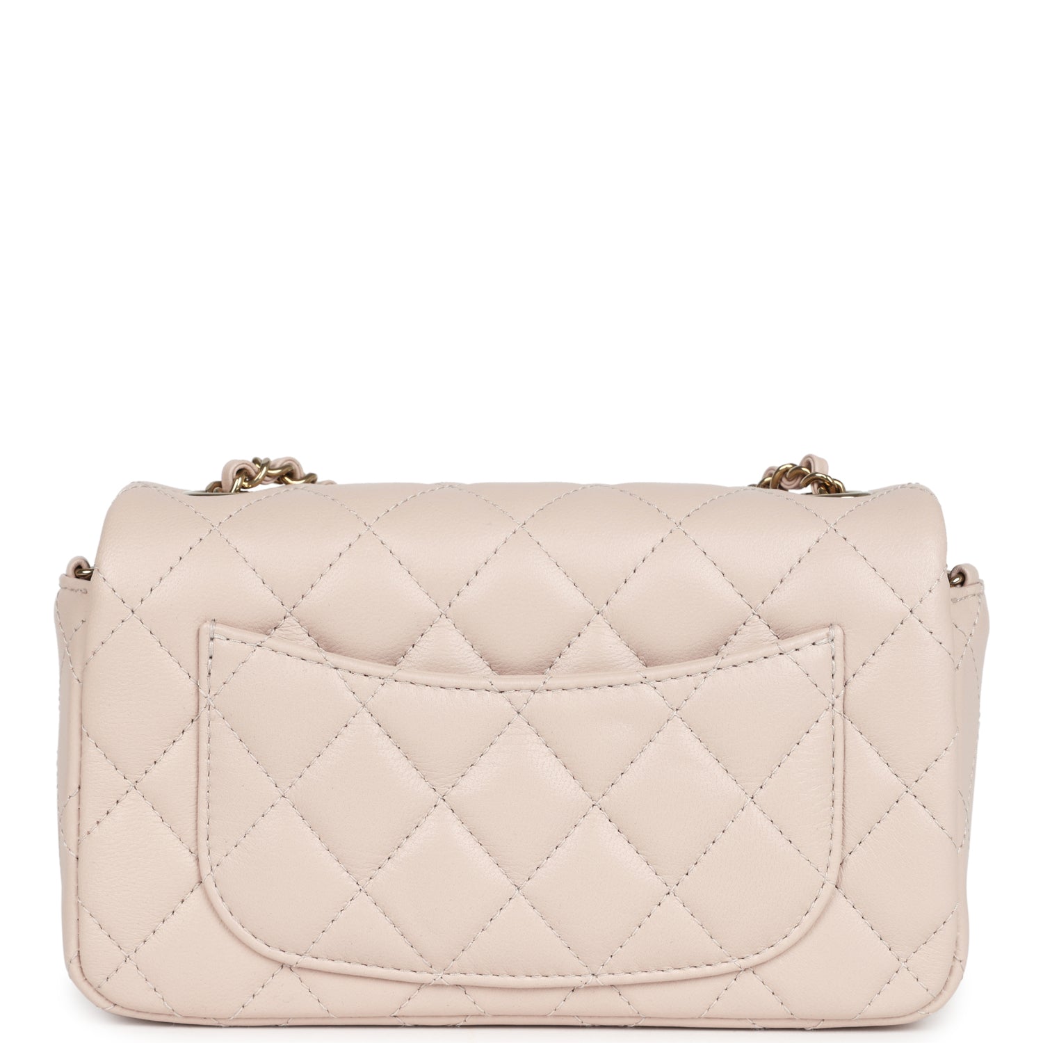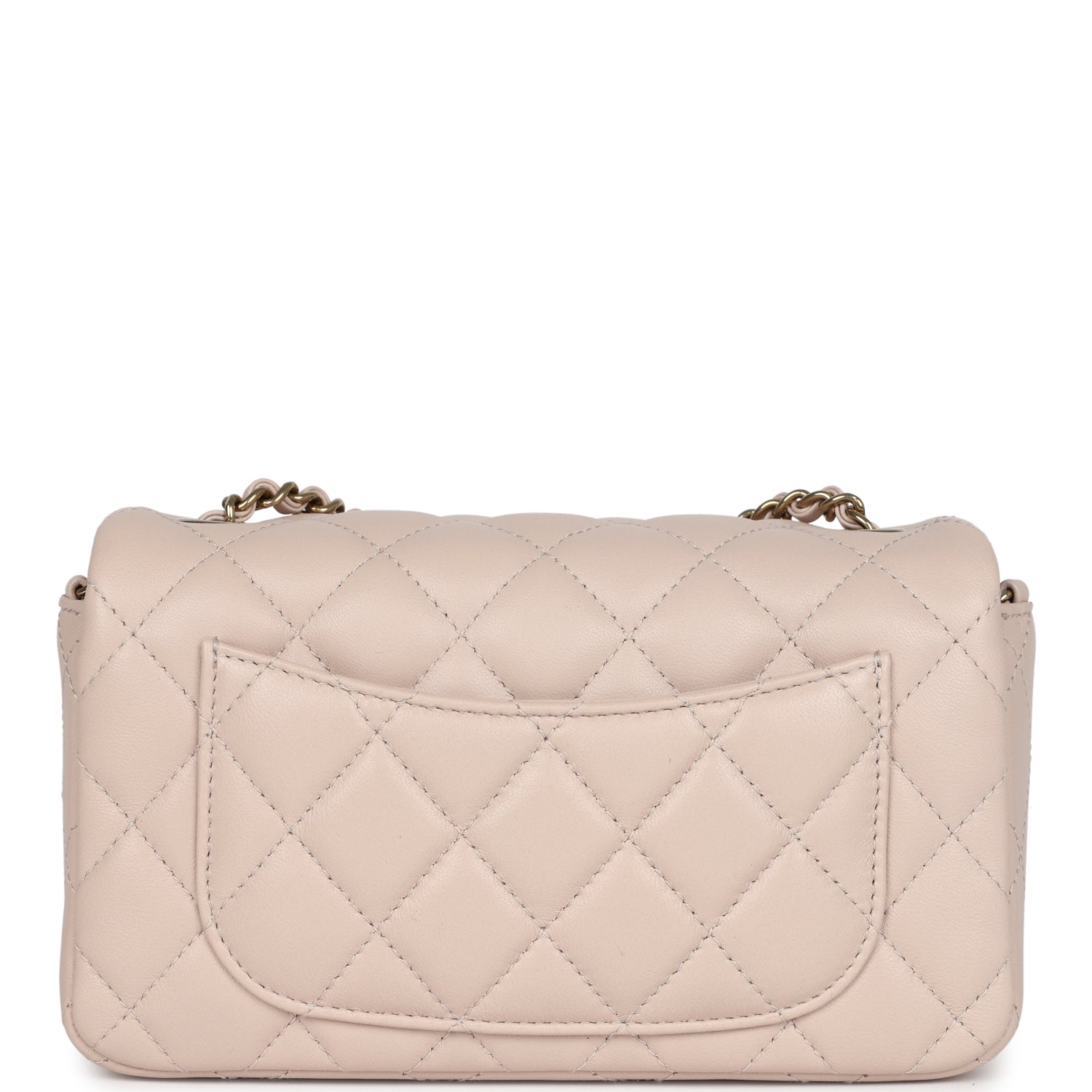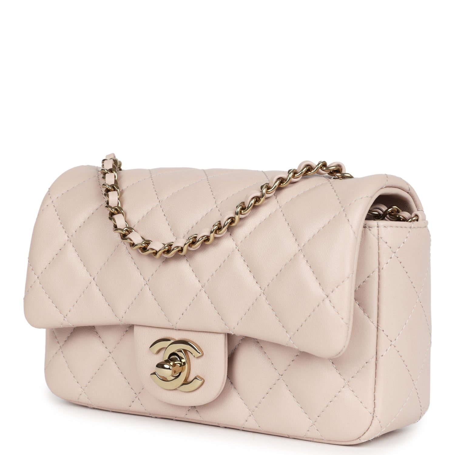 Chanel Mini Rectangular Flap Bag Light Beige Lambskin Gold Hardware