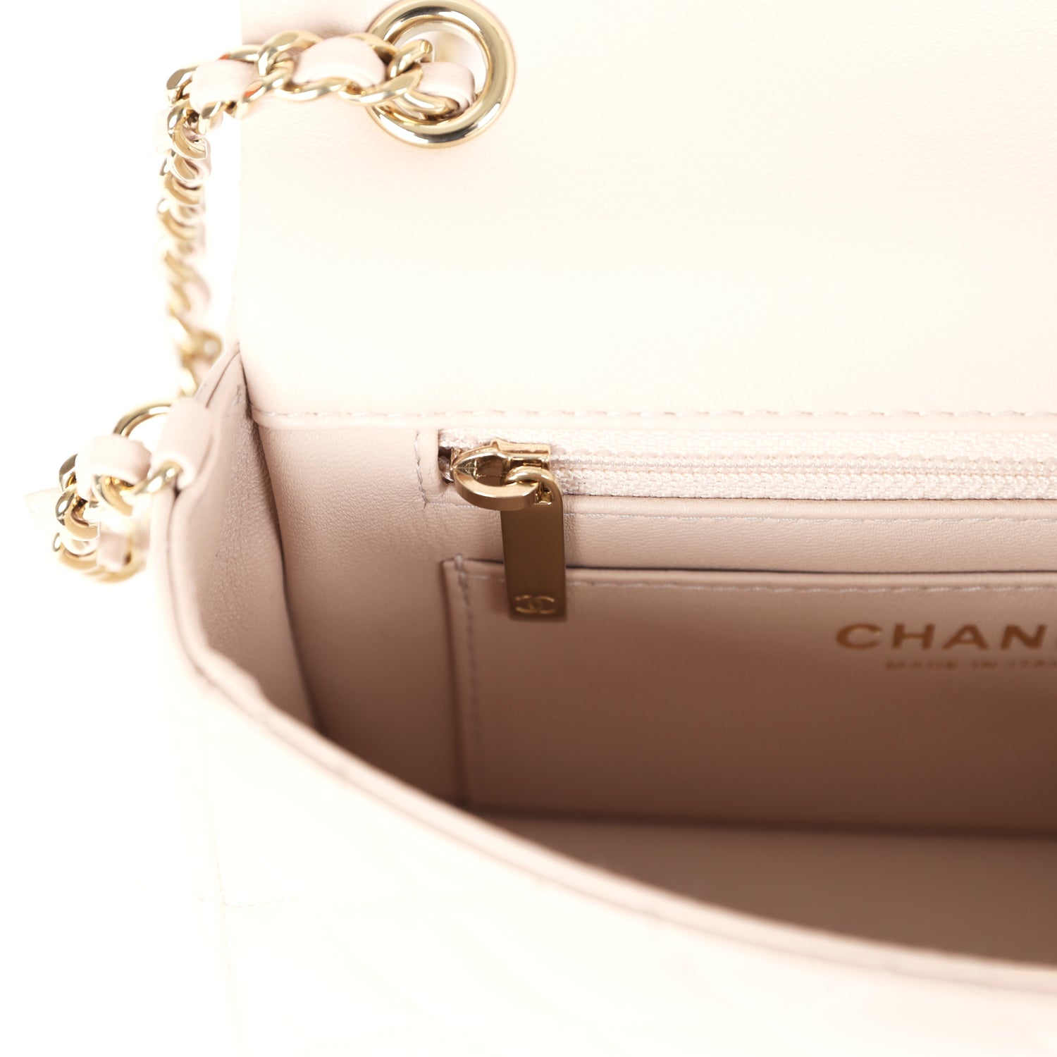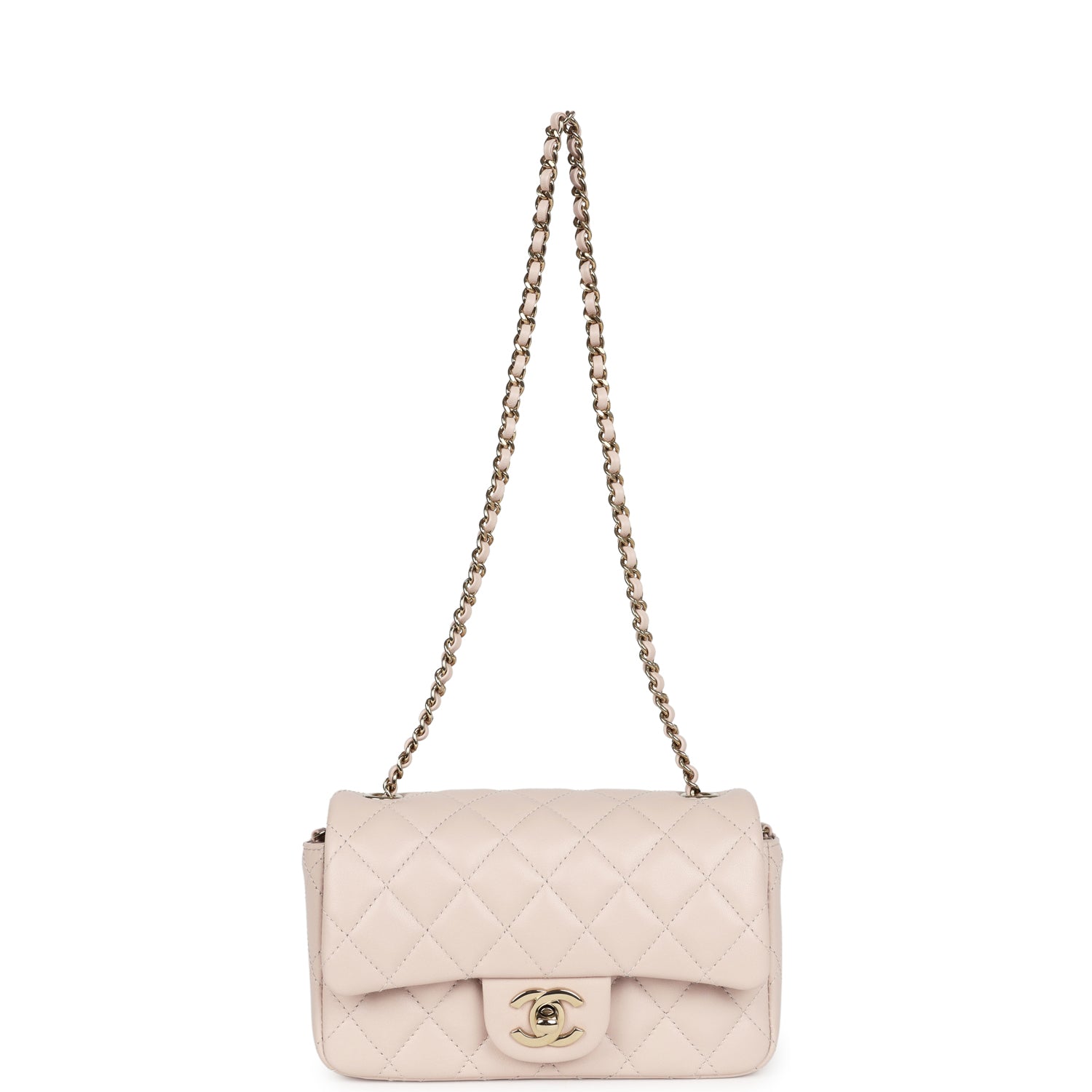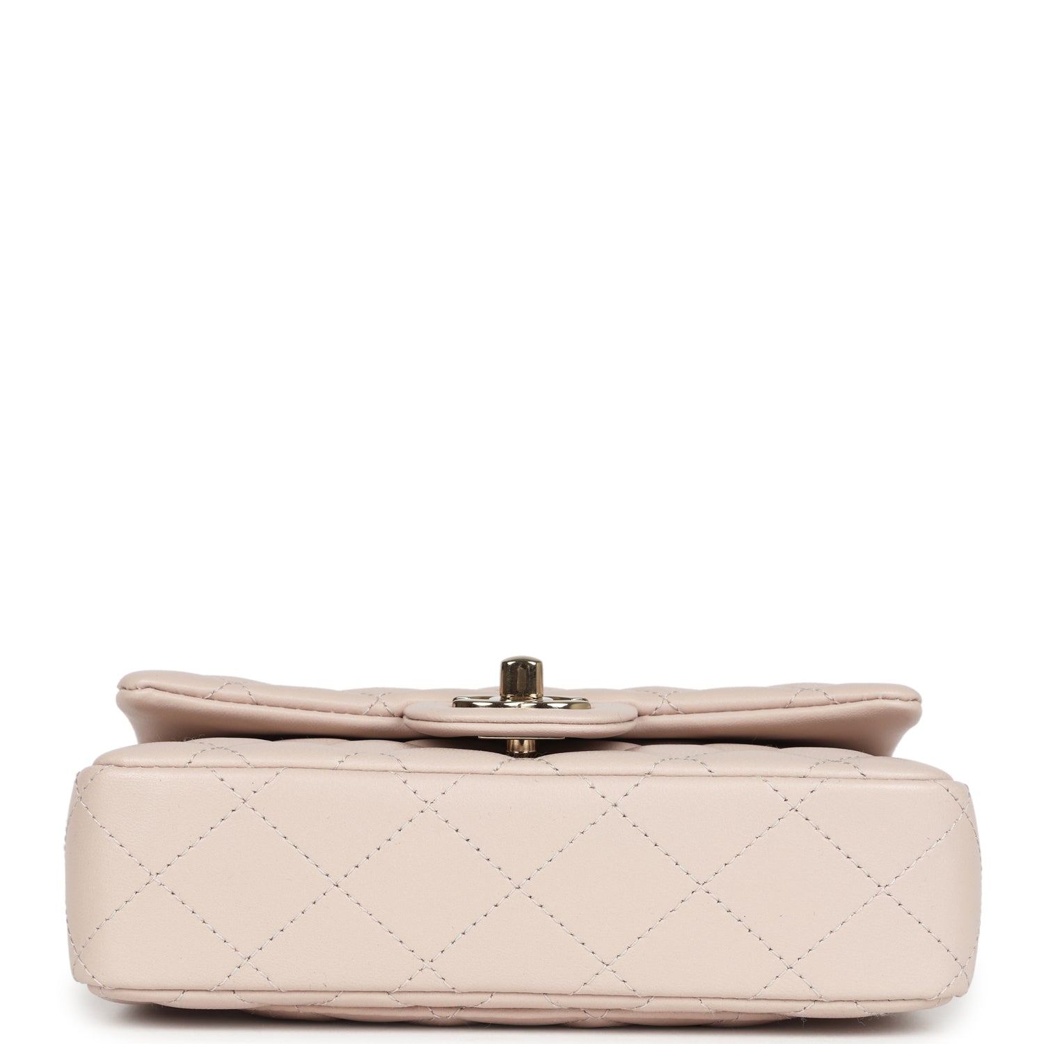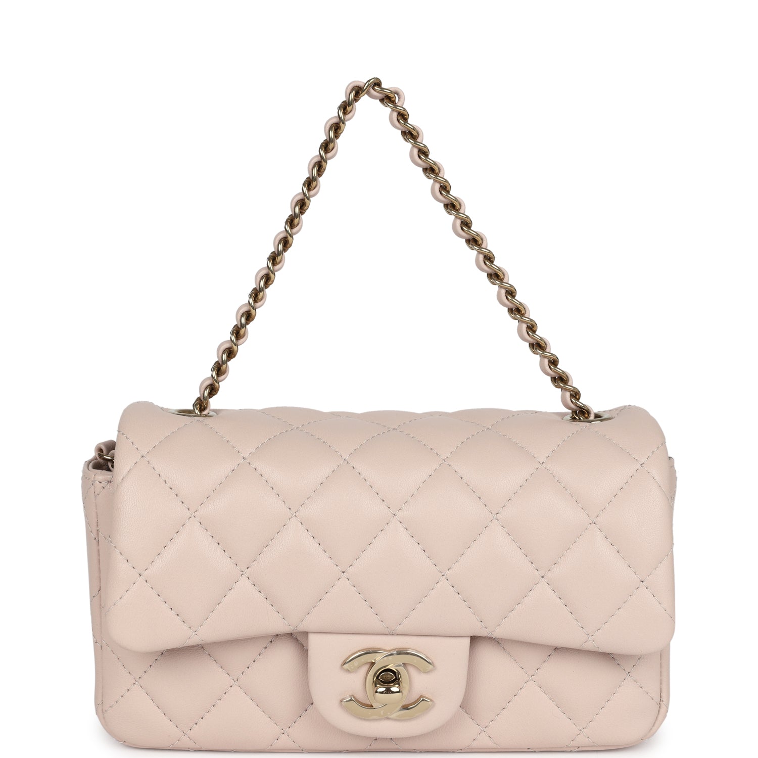 Chanel Mini Rectangular Flap Bag Light Beige Lambskin Gold Hardware