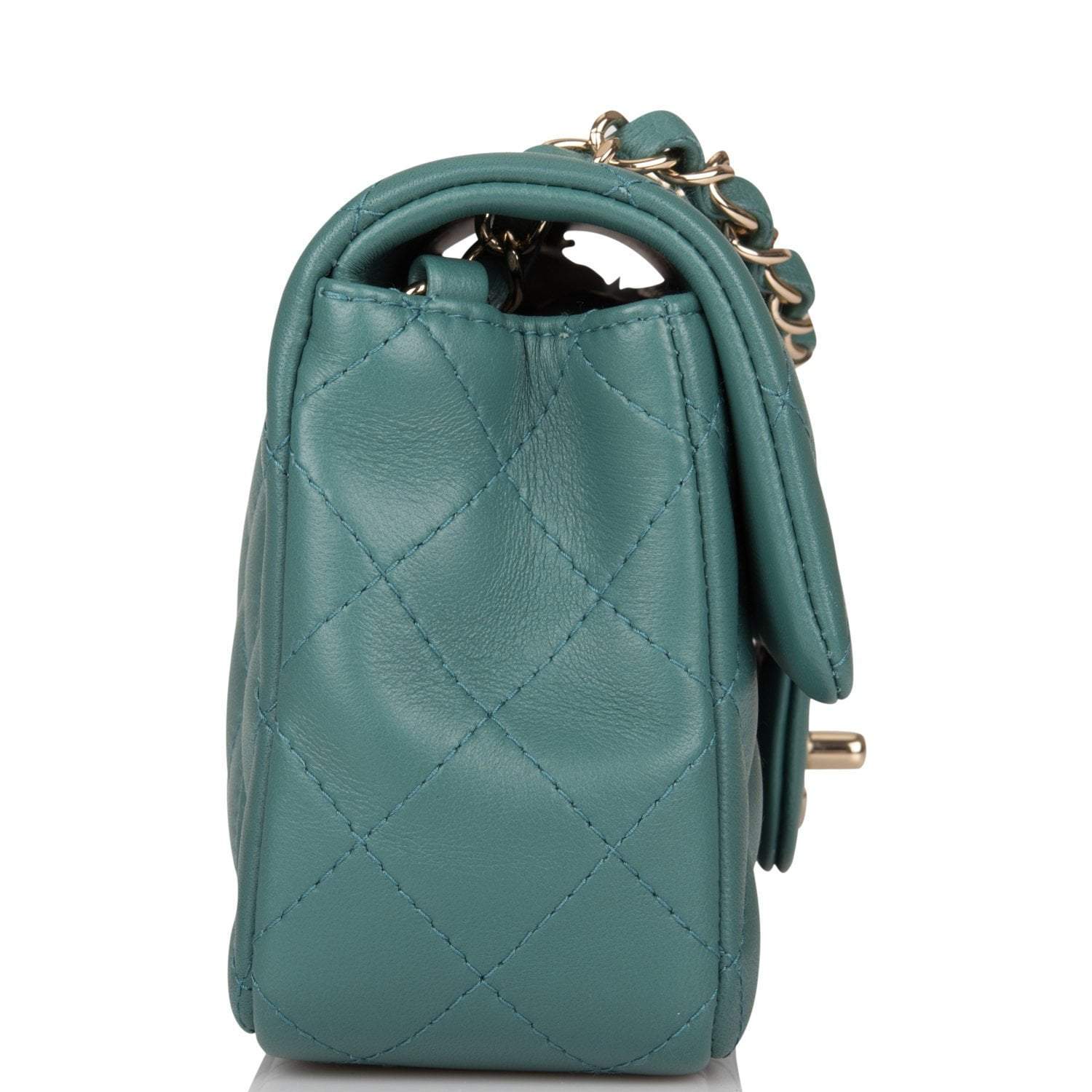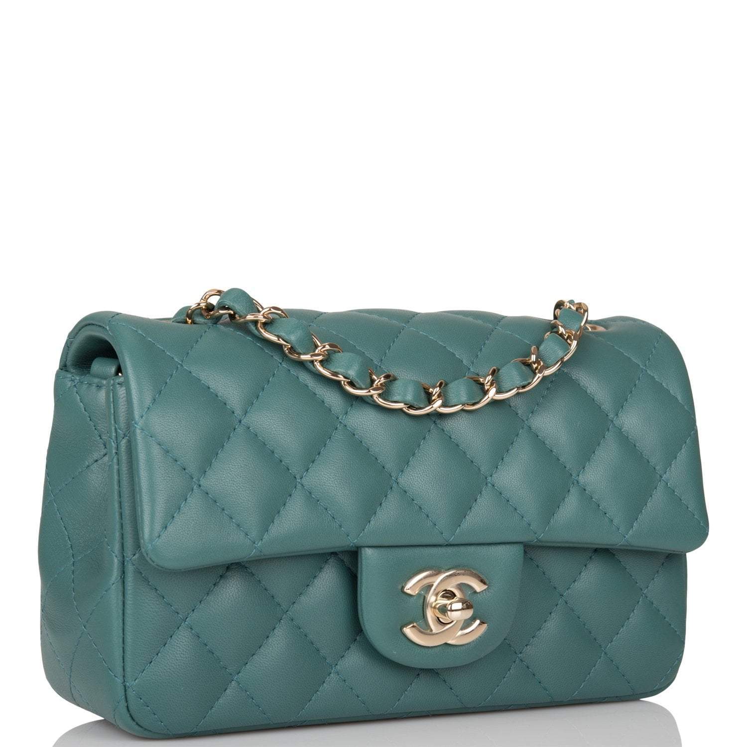 Chanel Mini Rectangular Flap Bag Light Green Lambskin Light Gold Hardware