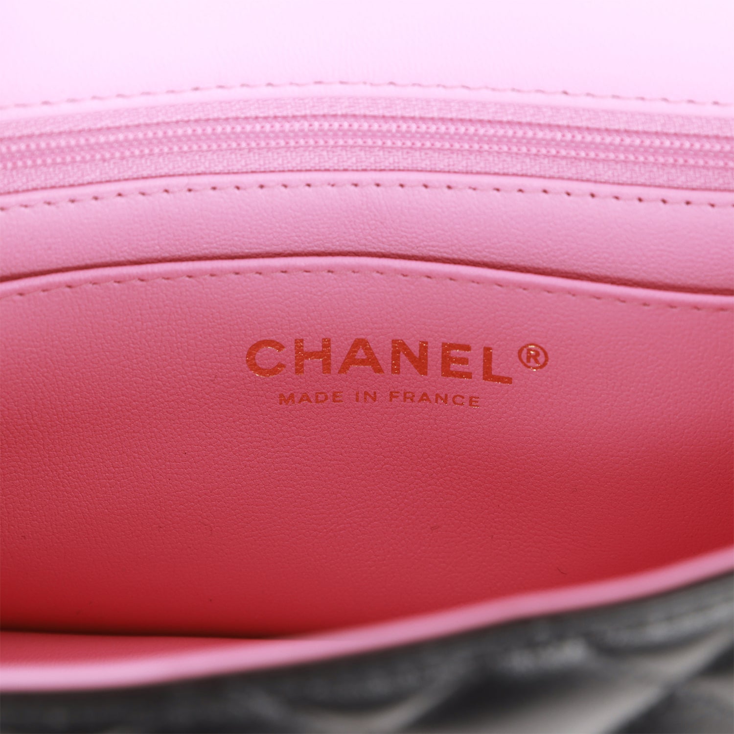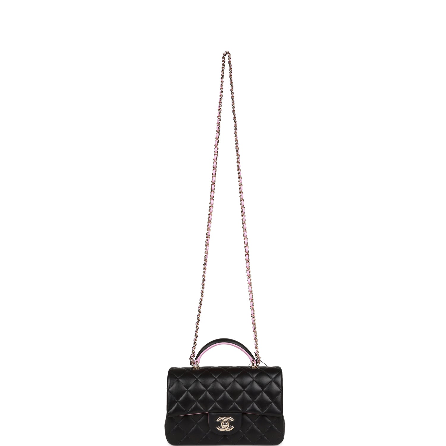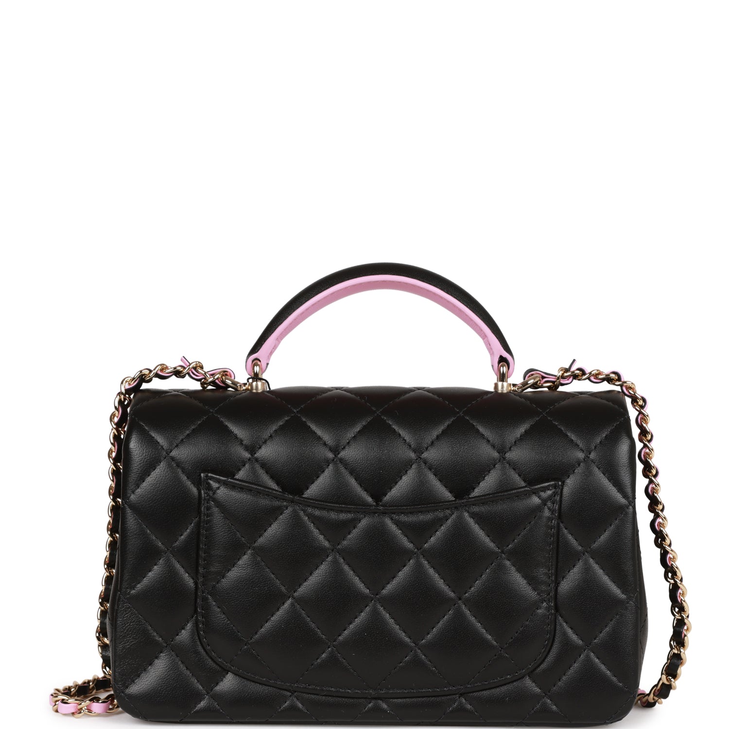Chanel Mini Rectangular Flap with Top Handle Black and Pink Lambskin Light Gold Hardware