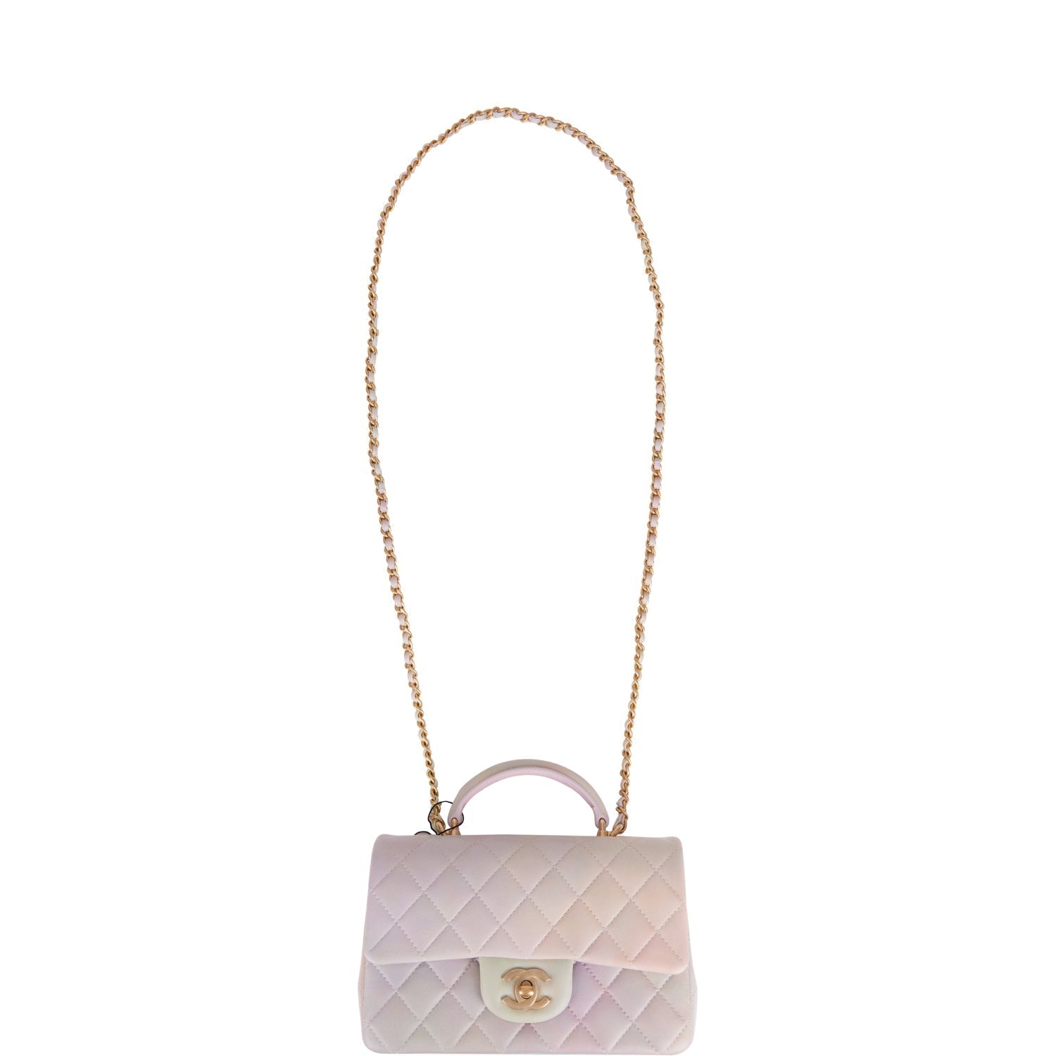 Chanel Mini Rectangular Flap with Top Handle Pink and Green Lambskin Light Gold Hardware