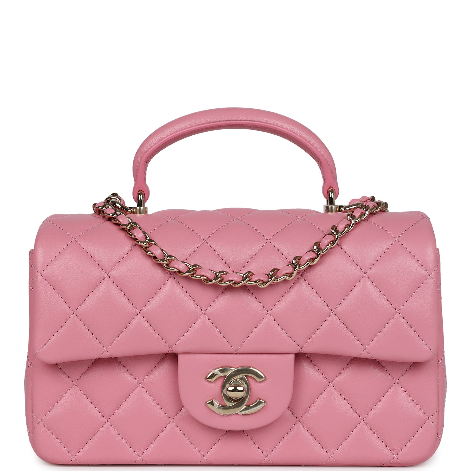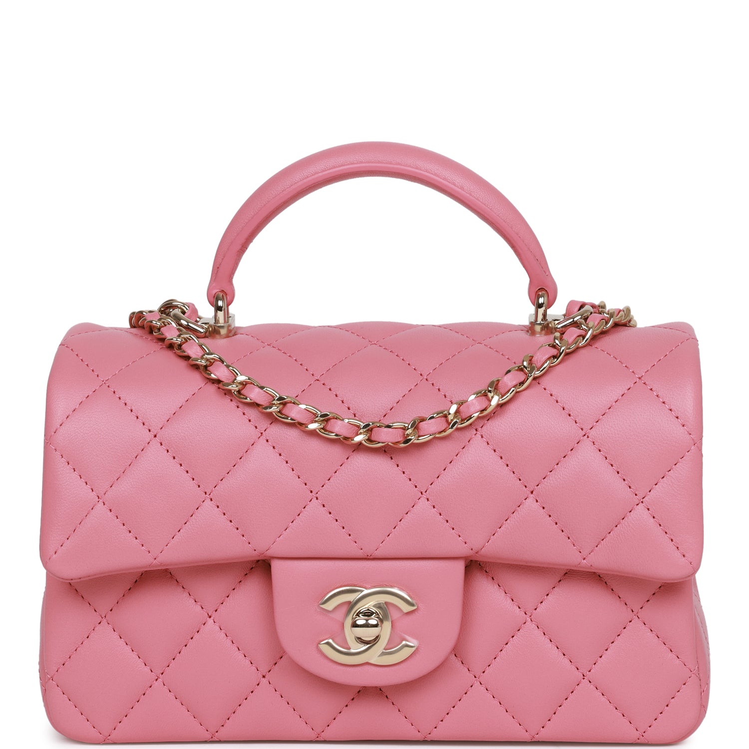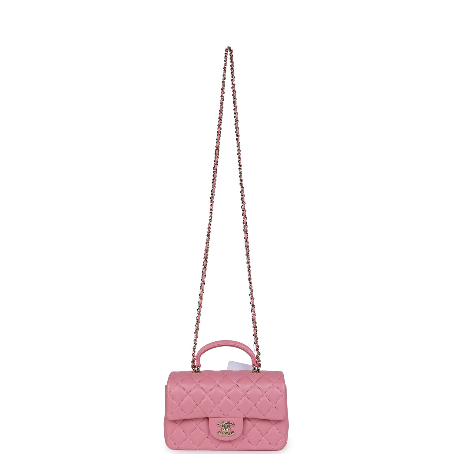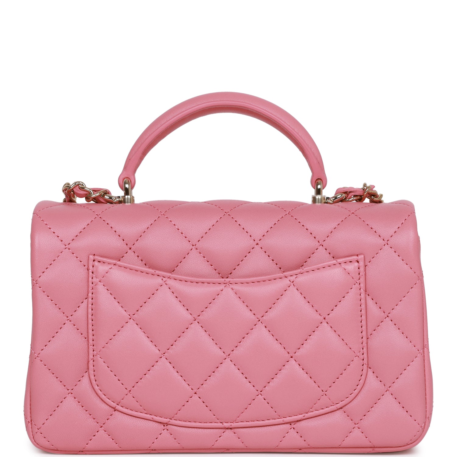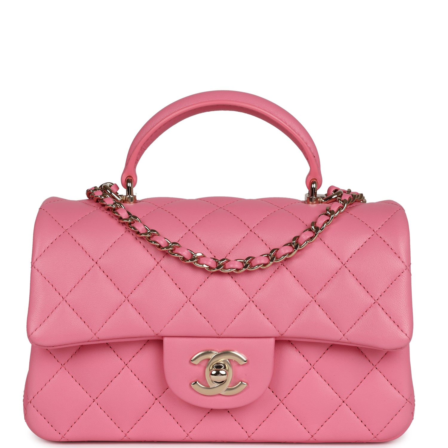 Chanel Mini Rectangular Flap with Top Handle Pink Lambskin Light Gold Hardware