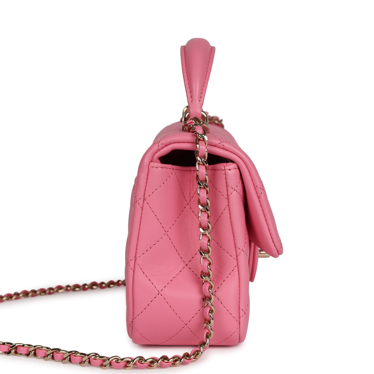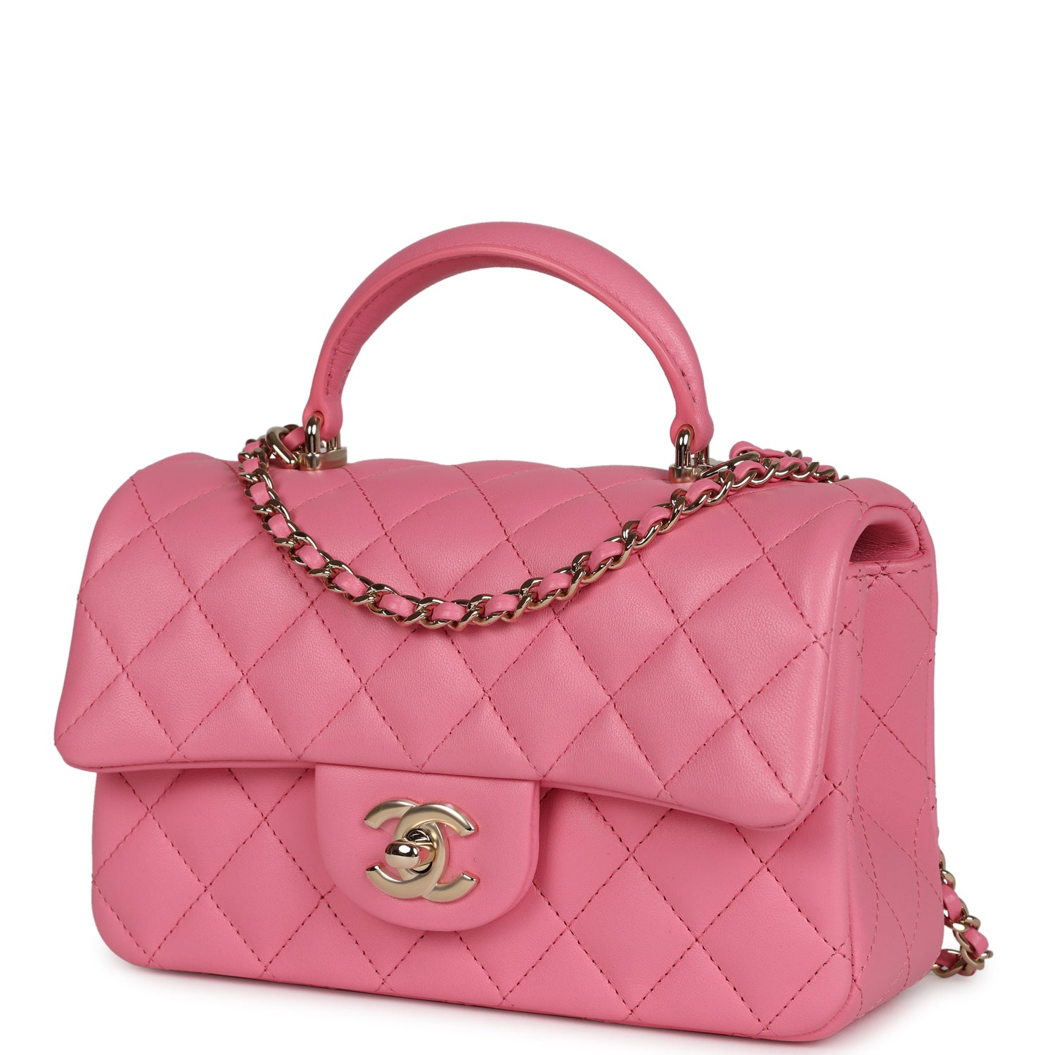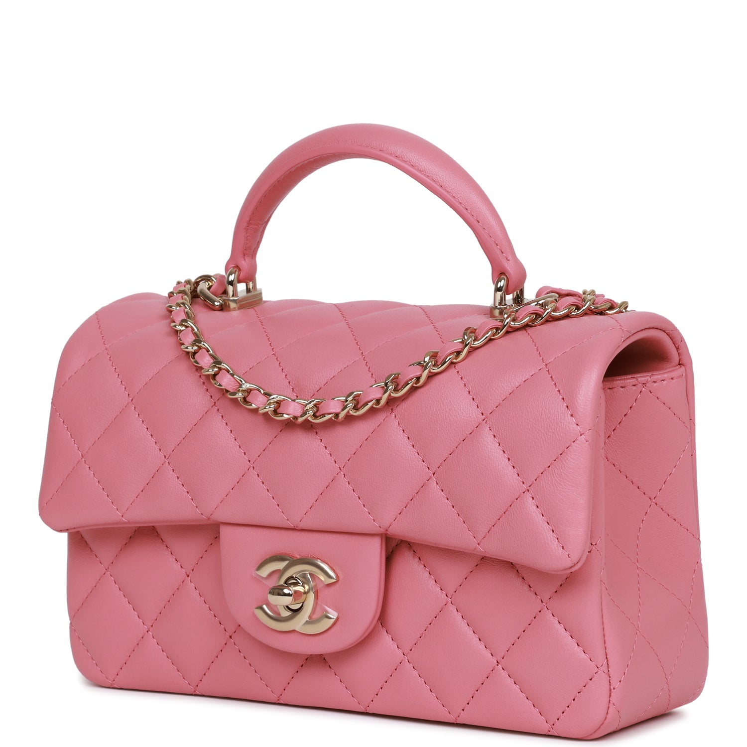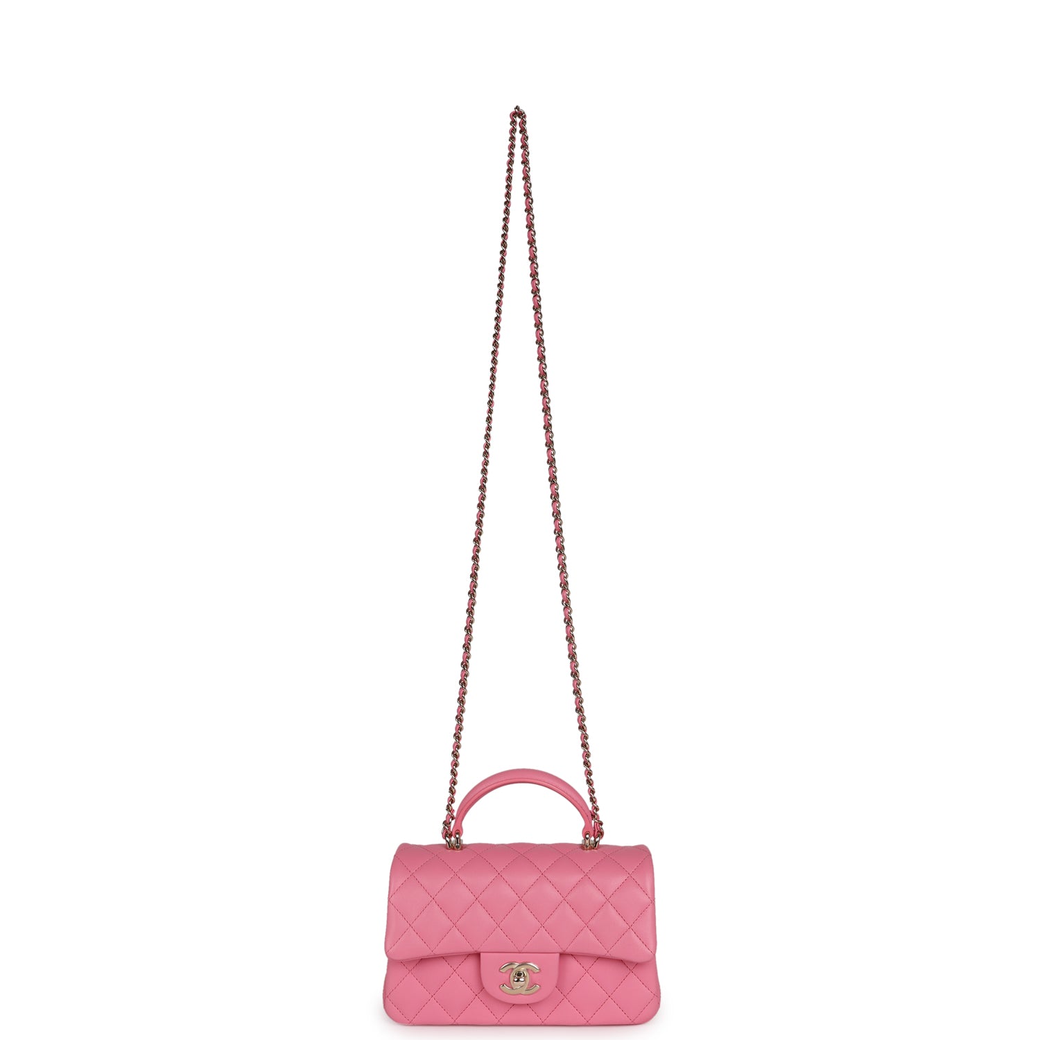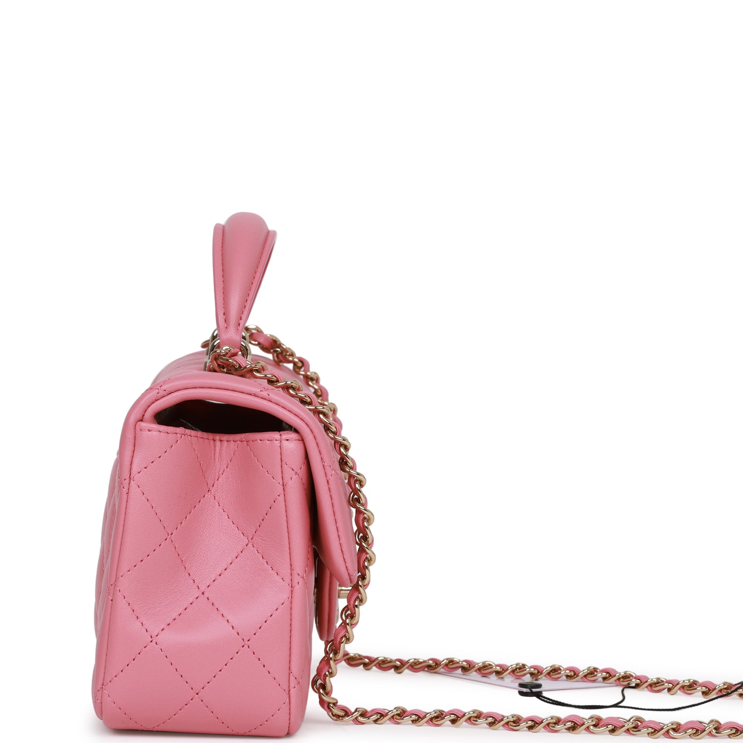 Chanel Mini Rectangular Flap with Top Handle Pink Lambskin Light Gold Hardware