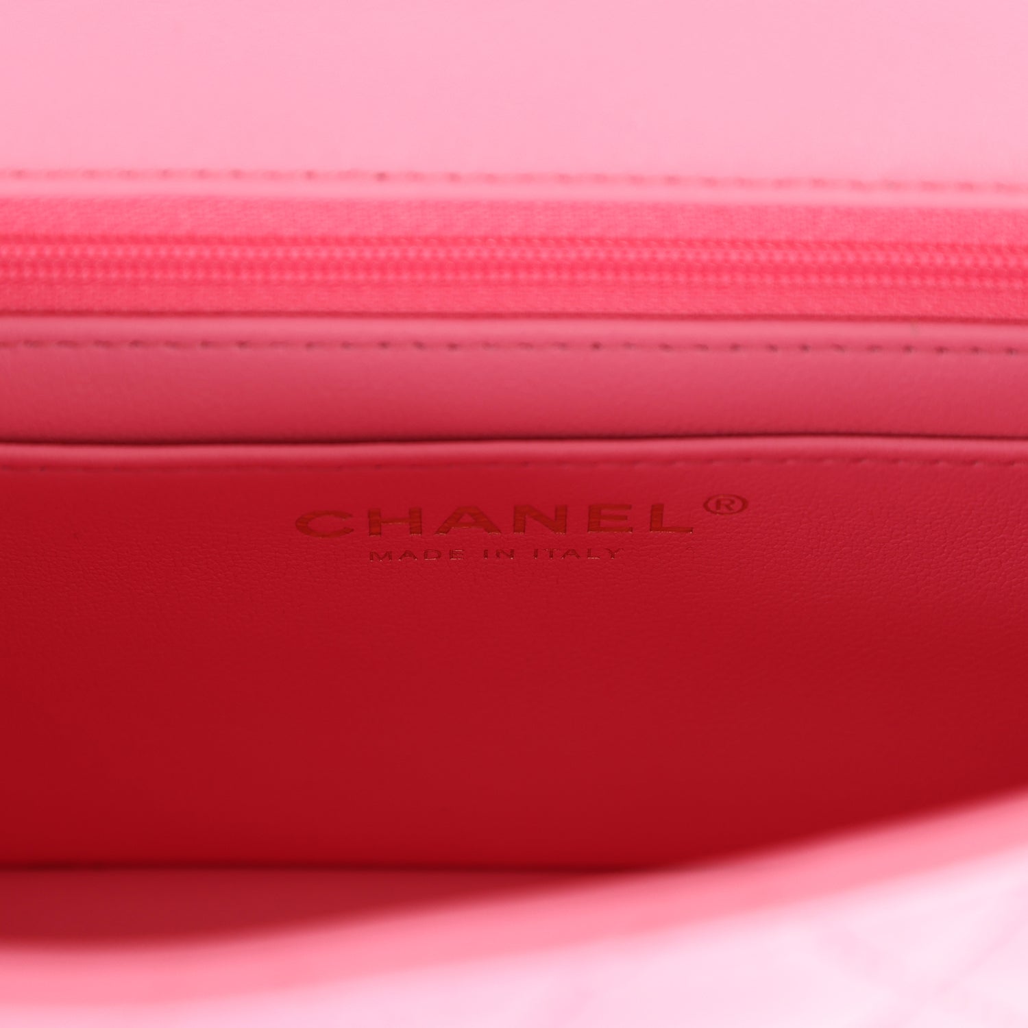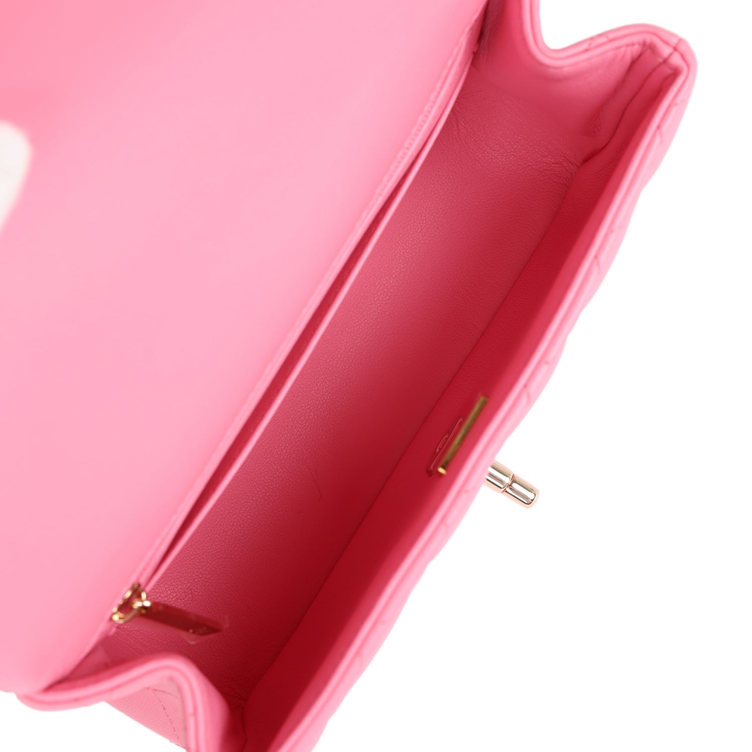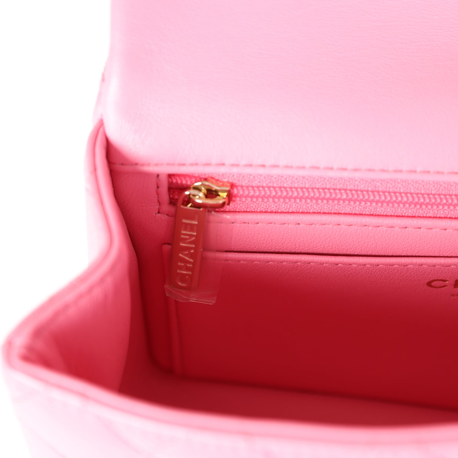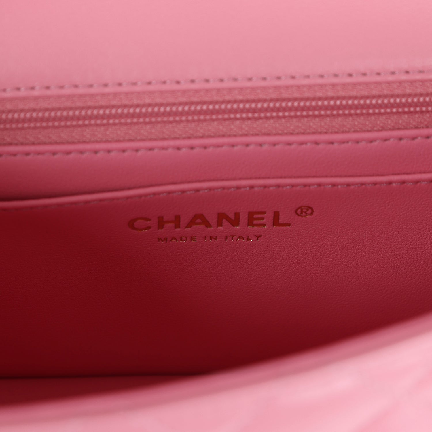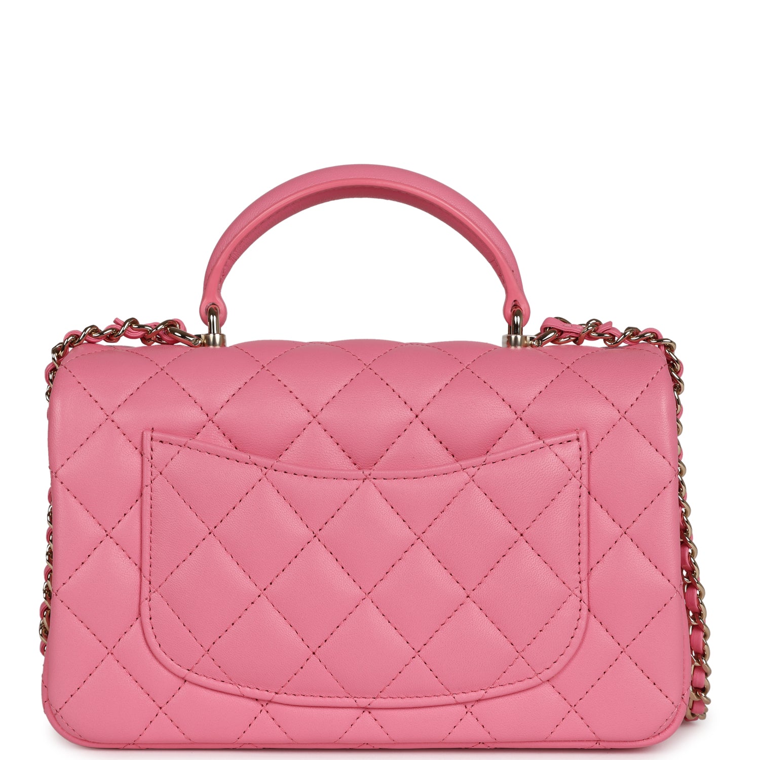 Chanel Mini Rectangular Flap with Top Handle Pink Lambskin Light Gold Hardware