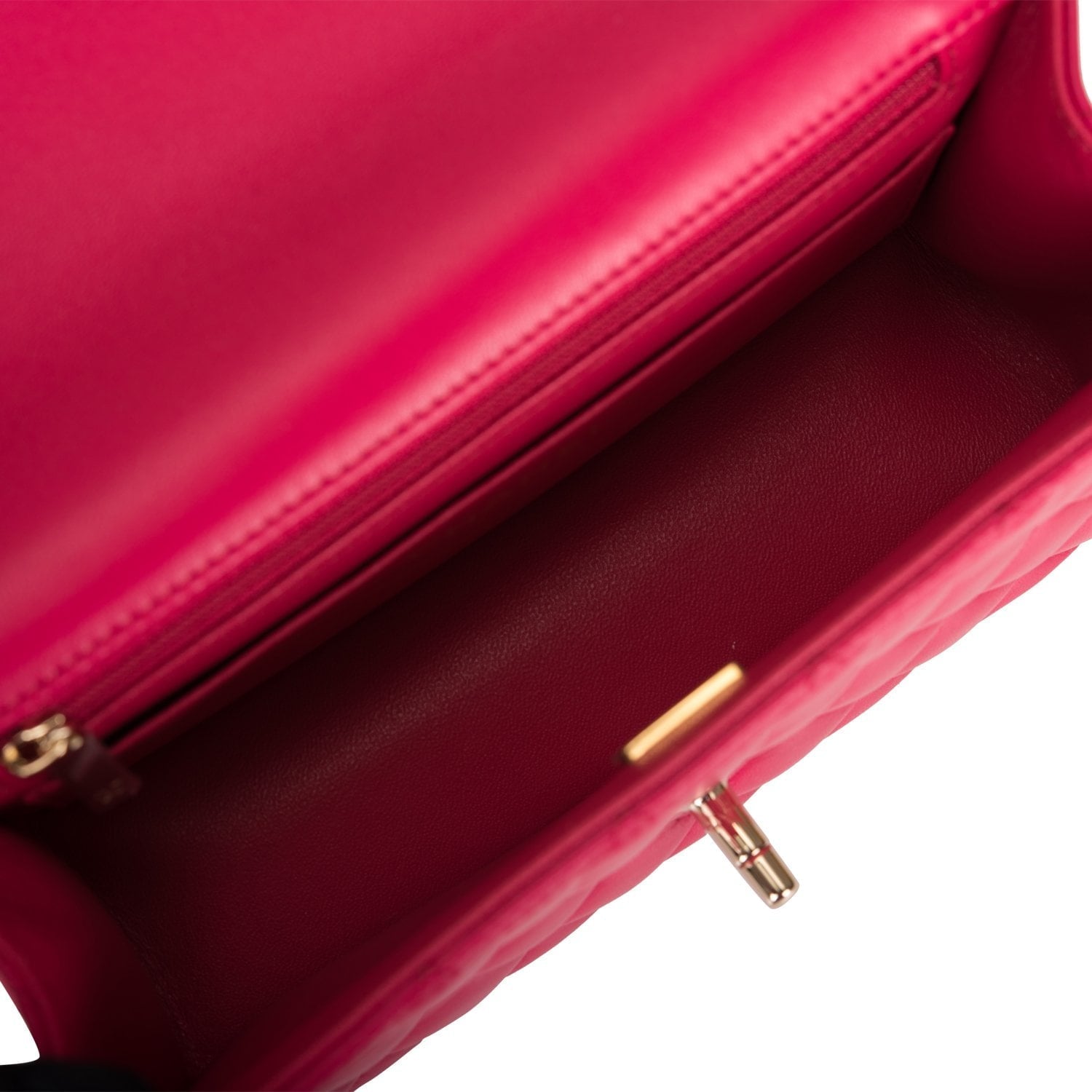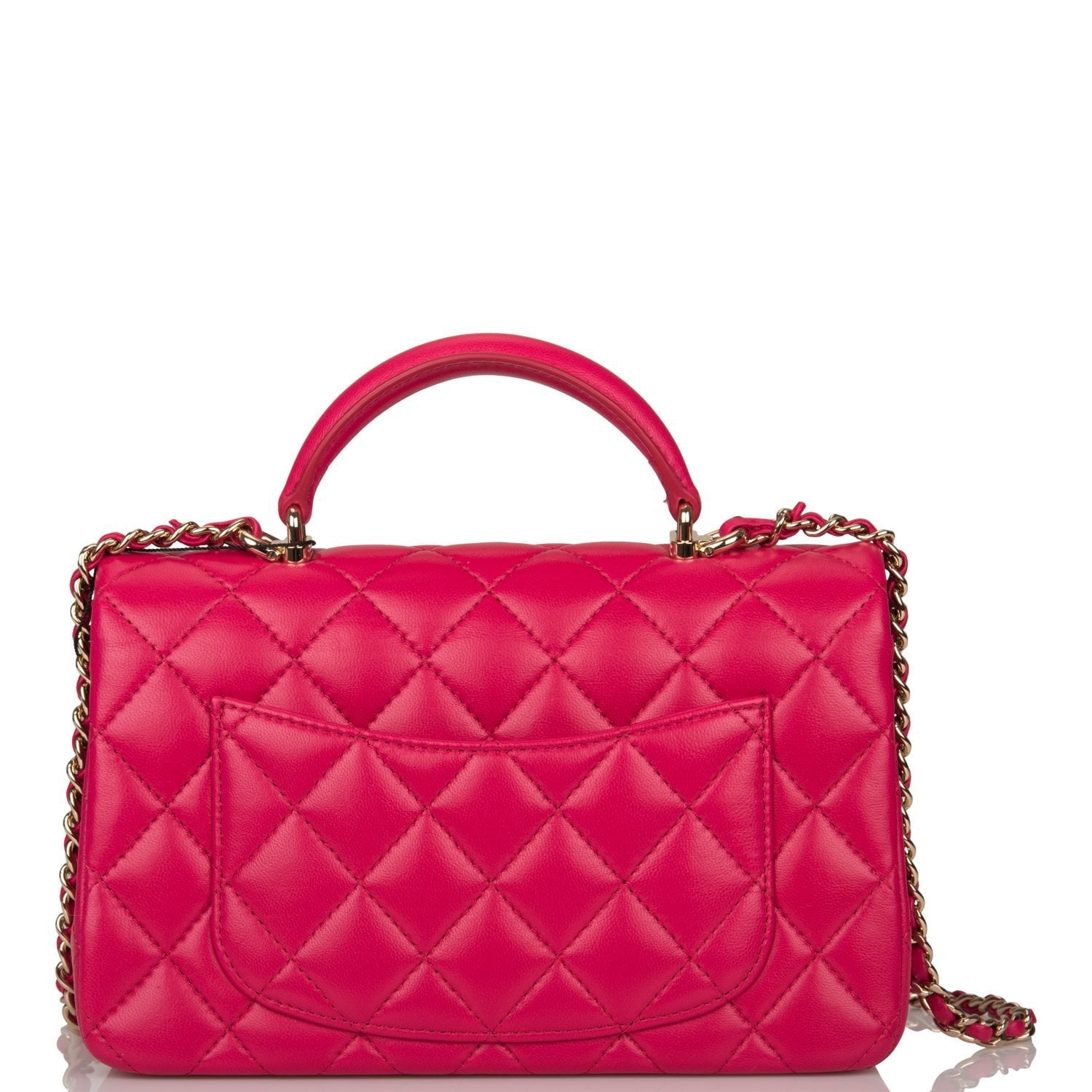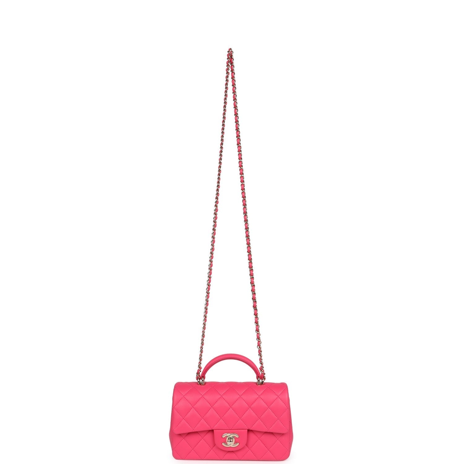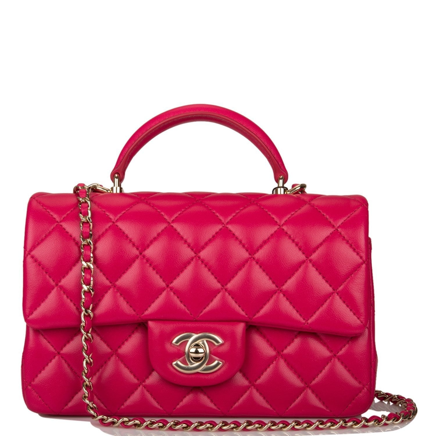 Chanel Mini Rectangular Flap Top Handle Dark Pink Lambskin Light Gold Hardware