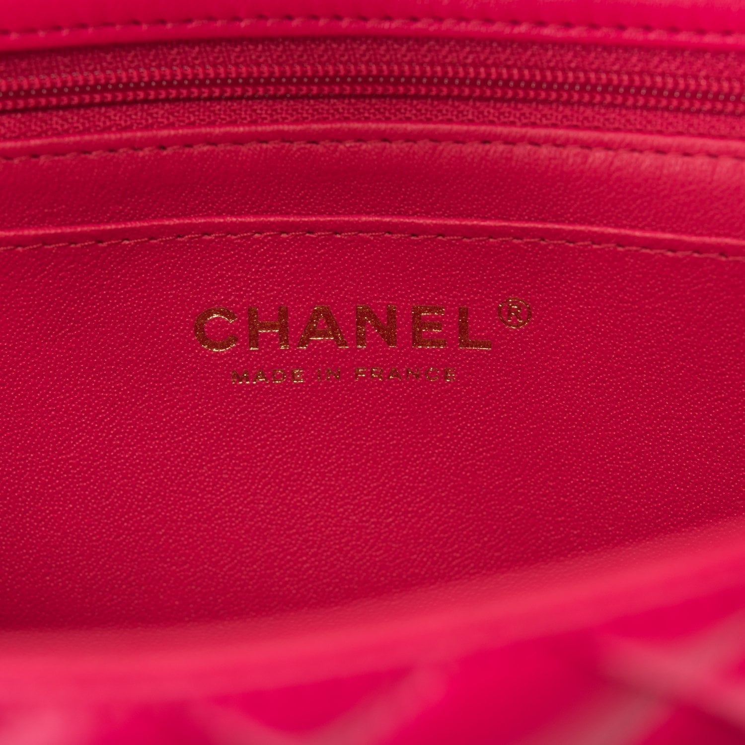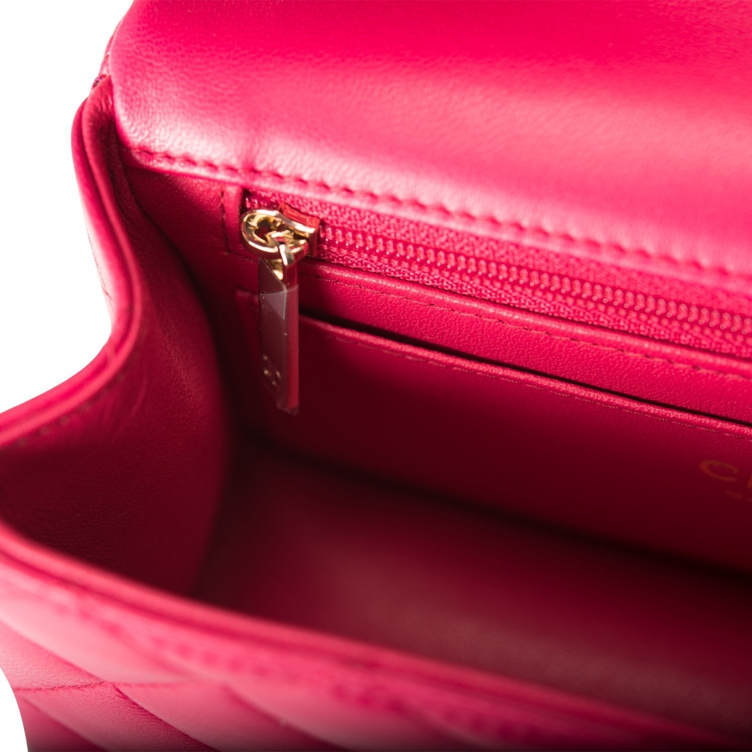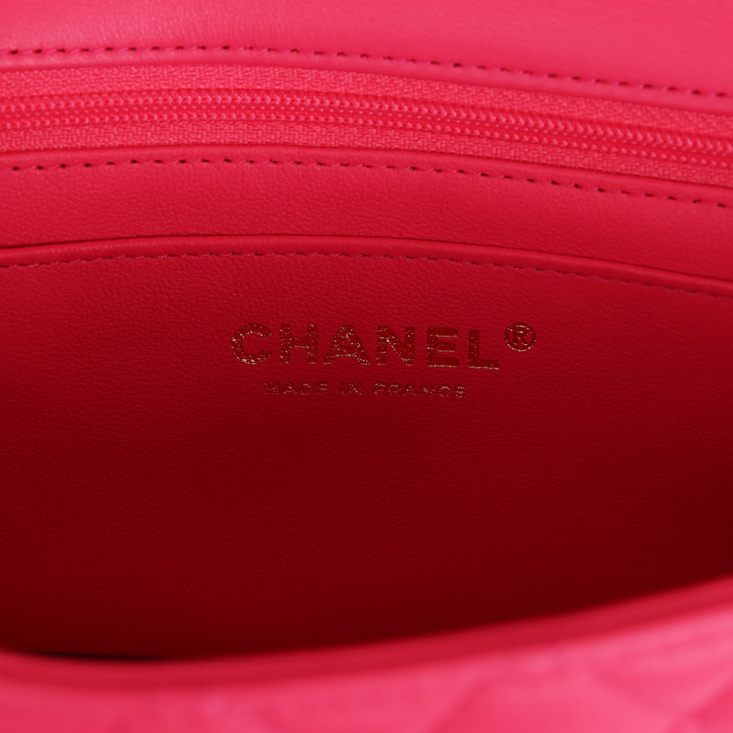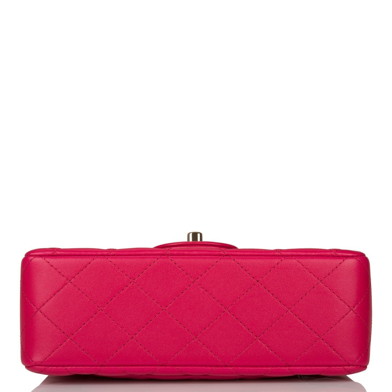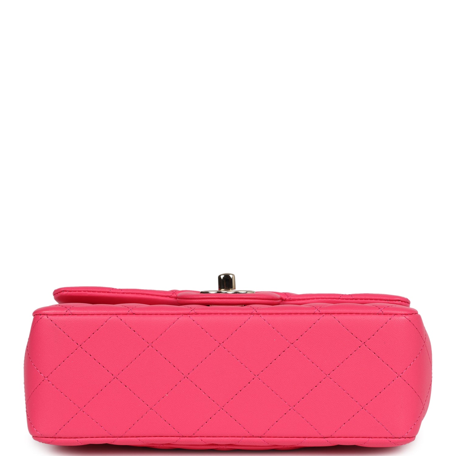 Chanel Mini Rectangular Flap Top Handle Dark Pink Lambskin Light Gold Hardware