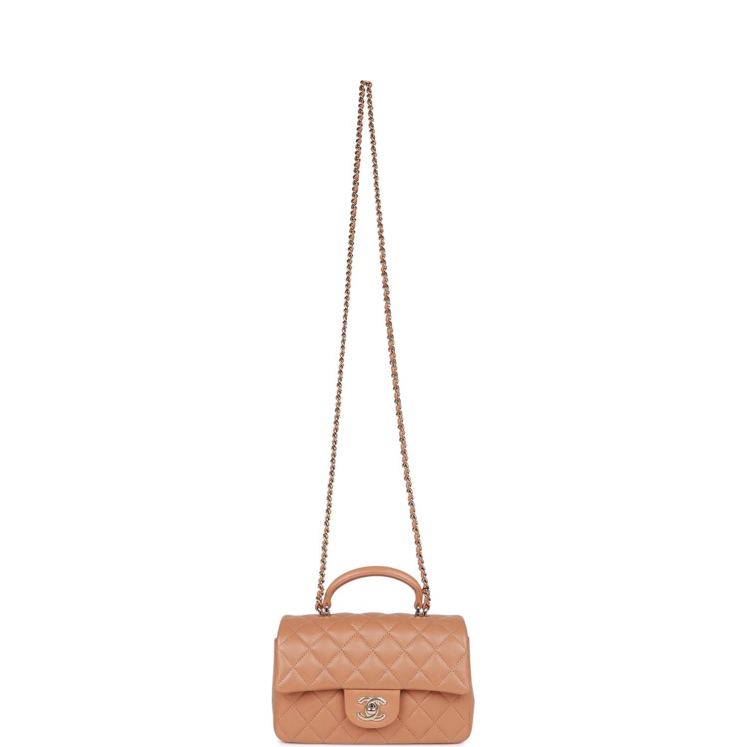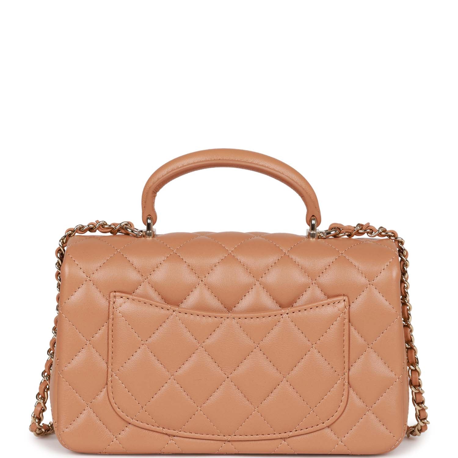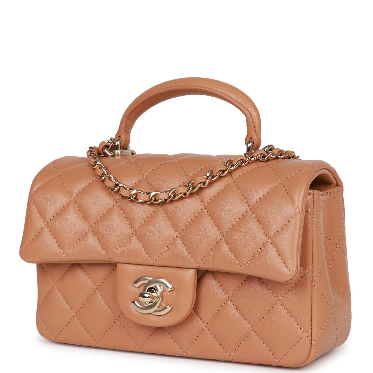 Chanel Mini Rectangular Flap with Top Handle Caramel Lambskin Light Gold Hardware