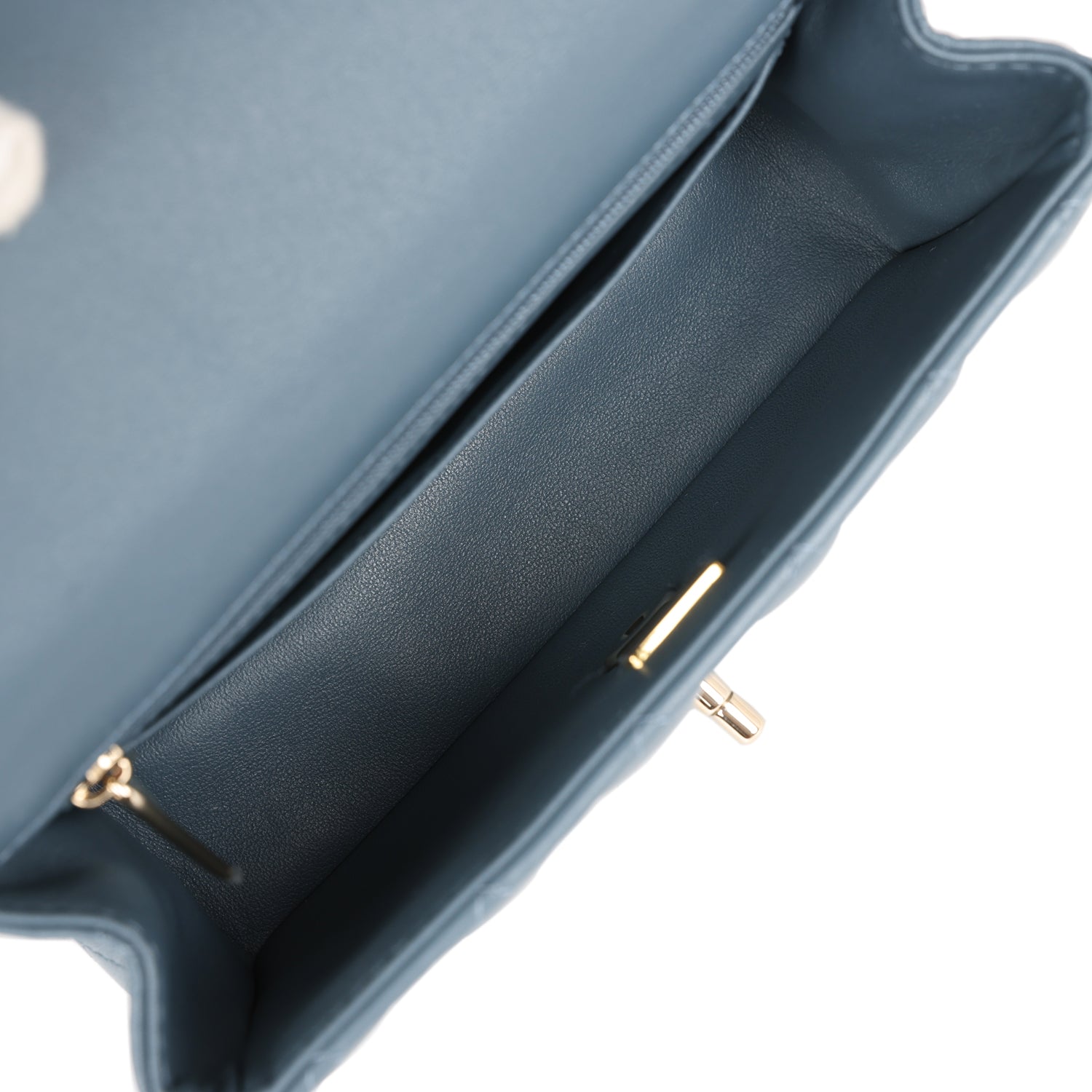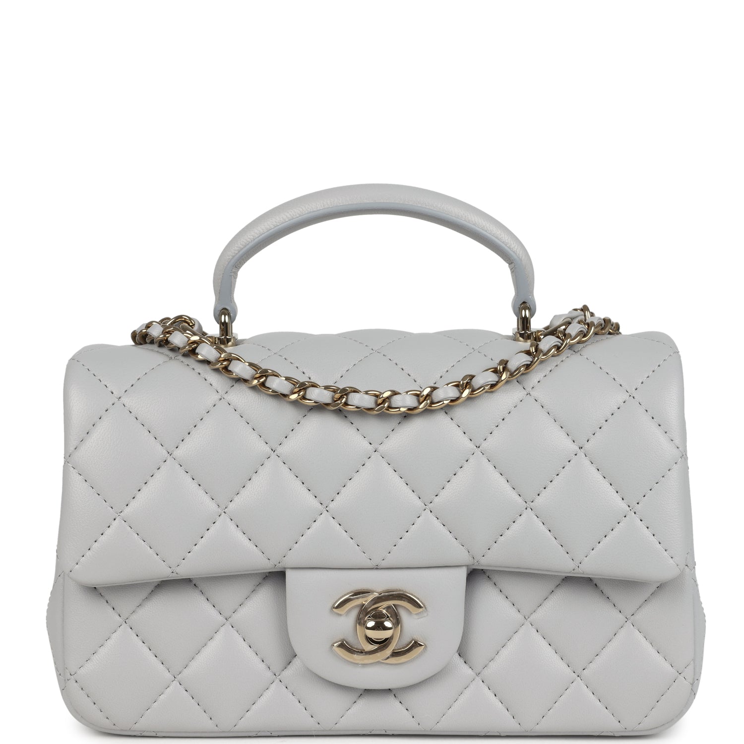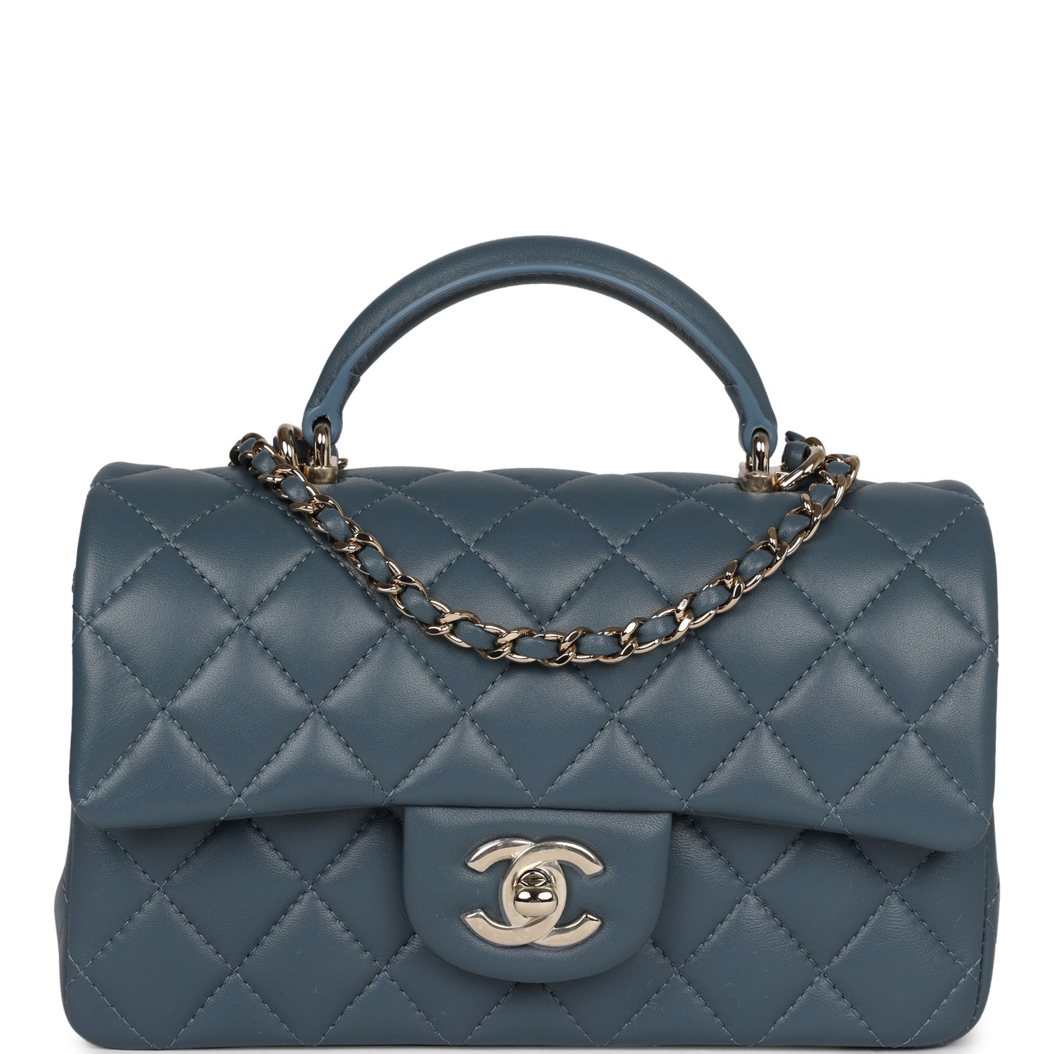 Chanel Mini Rectangular Flap with Top Handle Blue Lambskin Light Gold Hardware