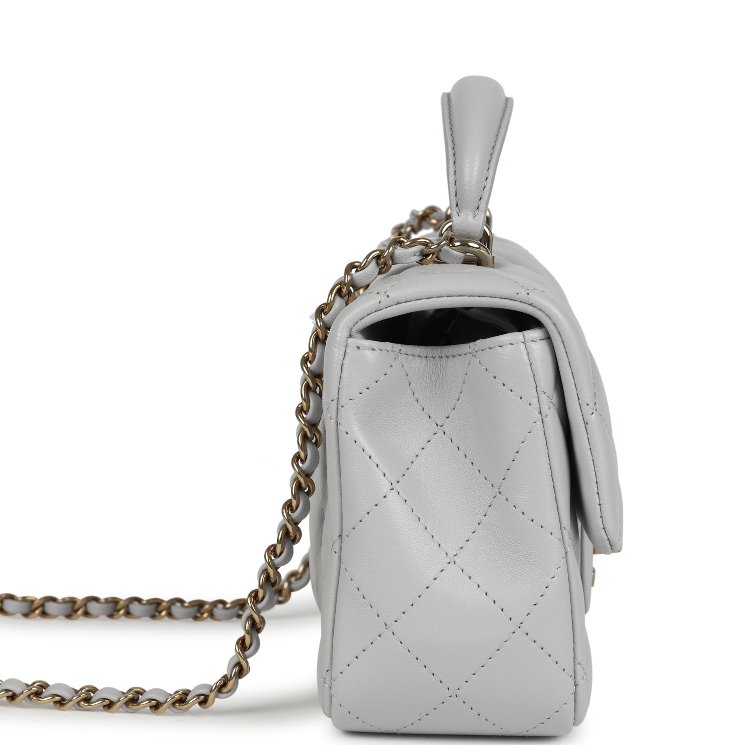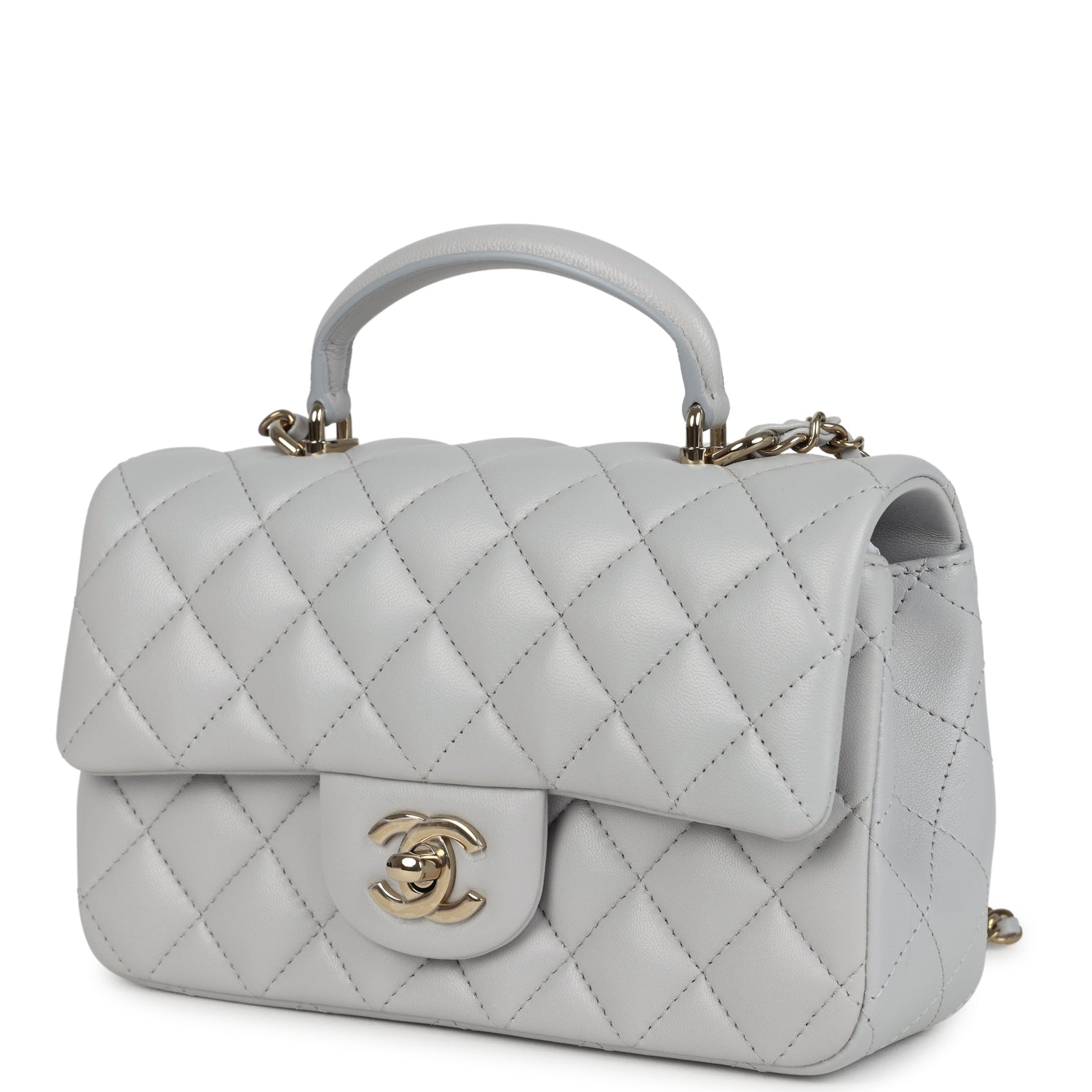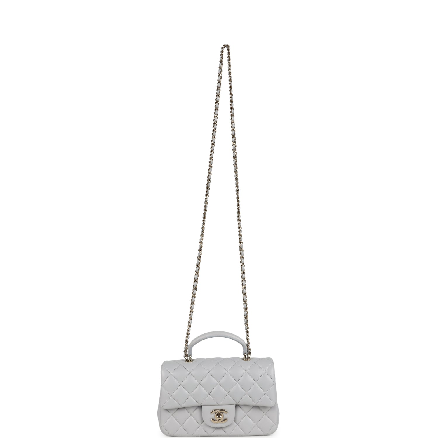 Chanel Mini Rectangular Flap with Top Handle Blue Lambskin Light Gold Hardware