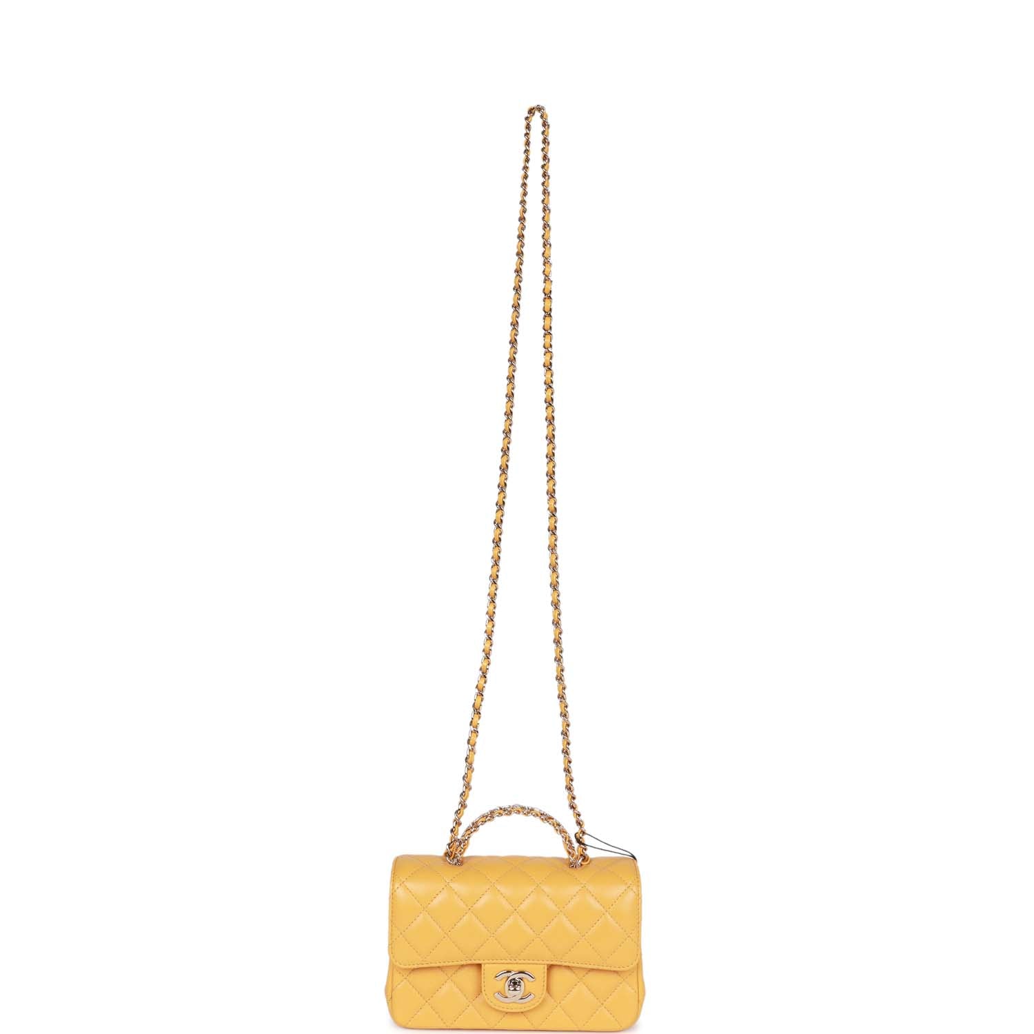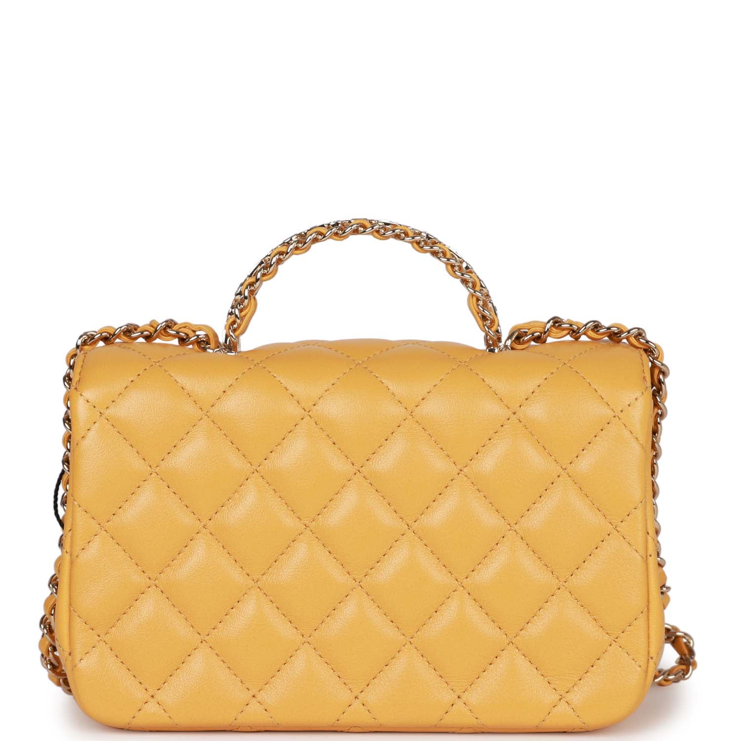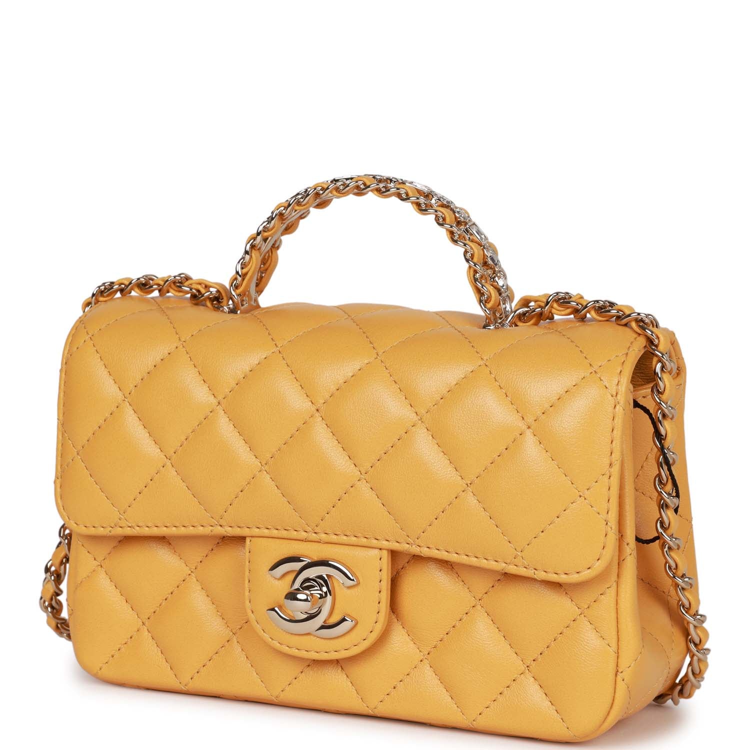 Chanel Mini Rectangular Flap with Jeweled Top Handle Yellow Lambskin Light Gold Hardware