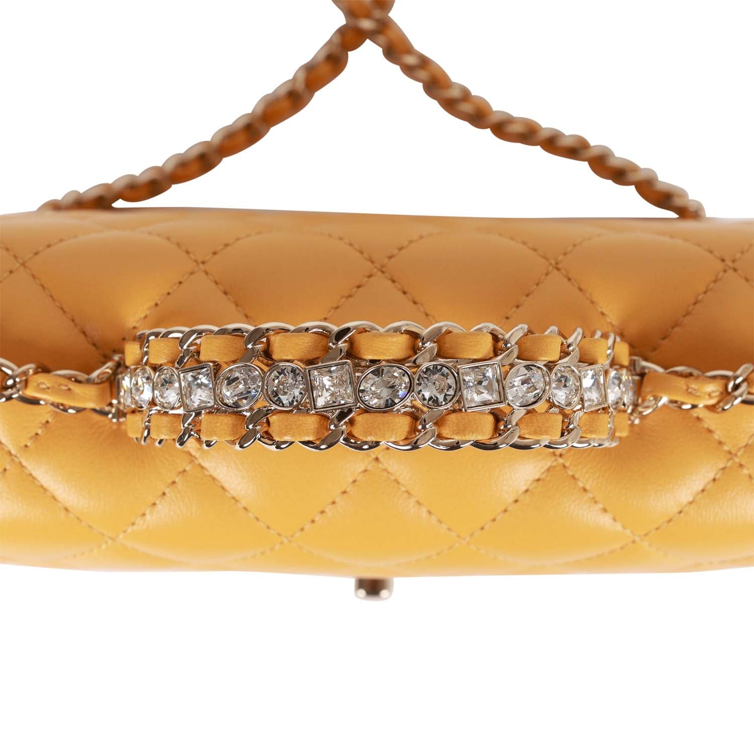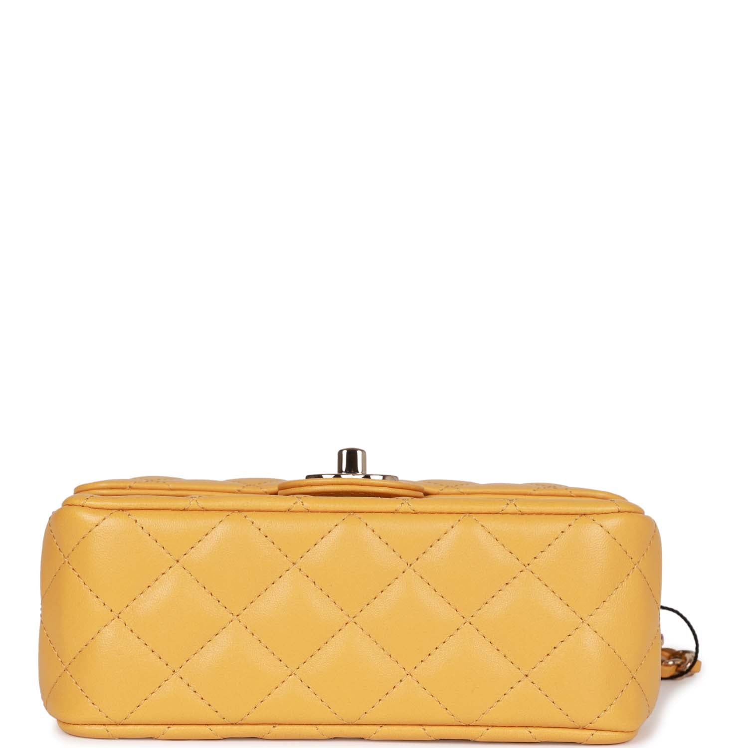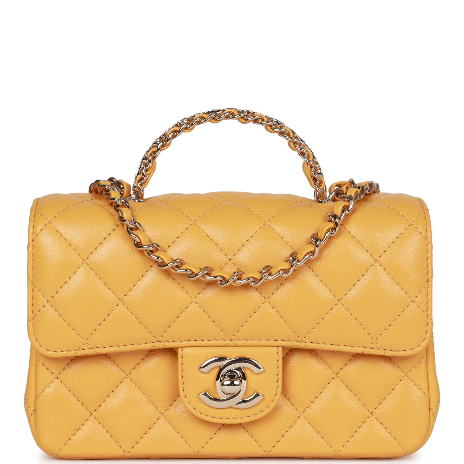 Chanel Mini Rectangular Flap with Jeweled Top Handle Yellow Lambskin Light Gold Hardware