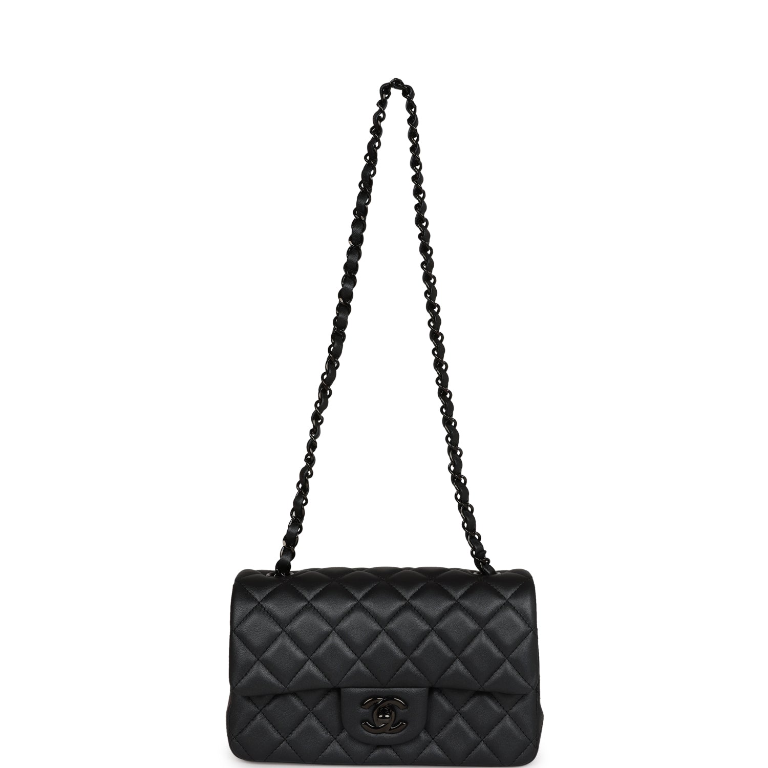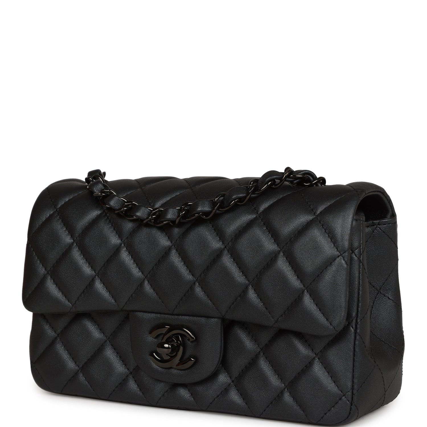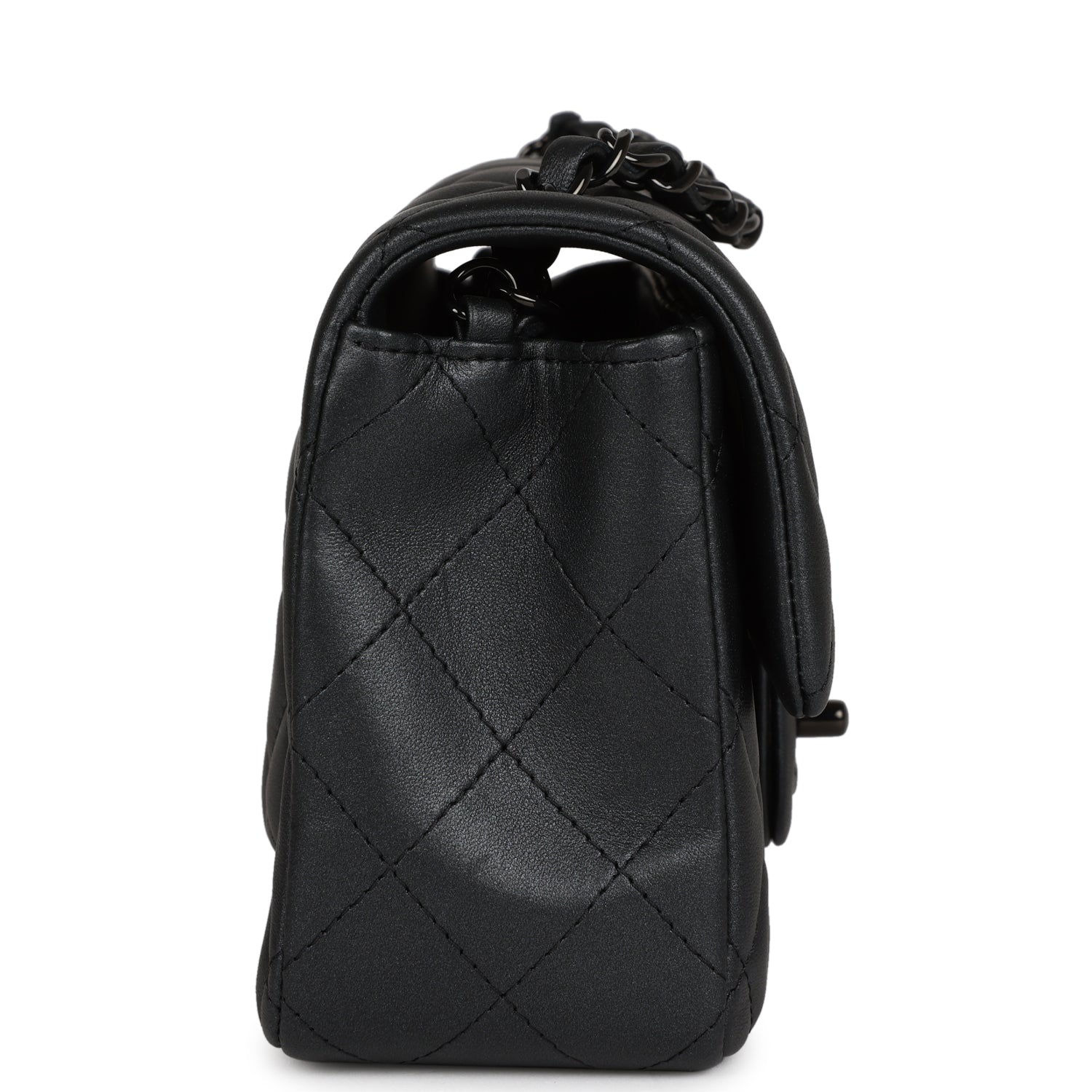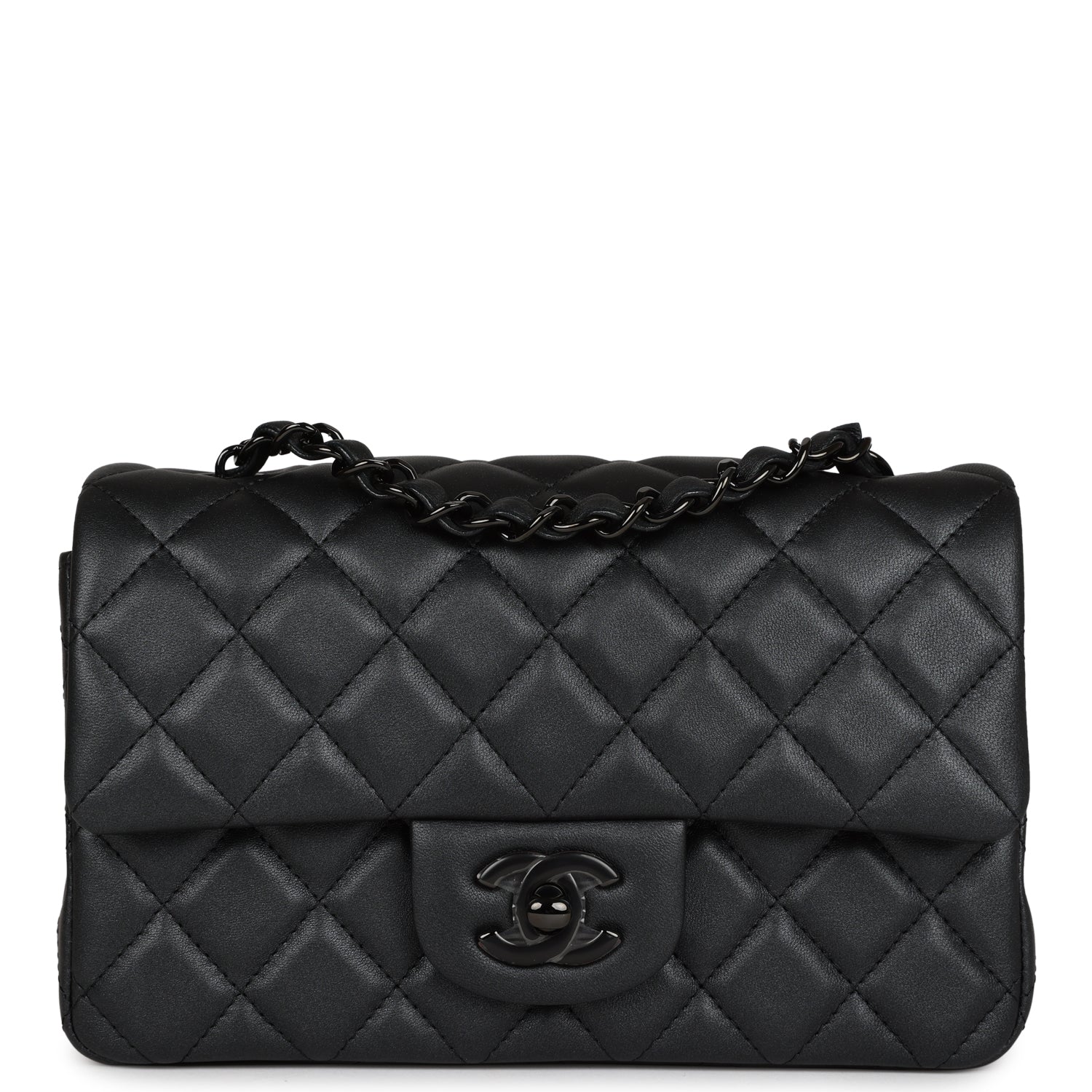 Chanel Mini Rectangular Flap So Black Iridescent Lambskin Black Hardware