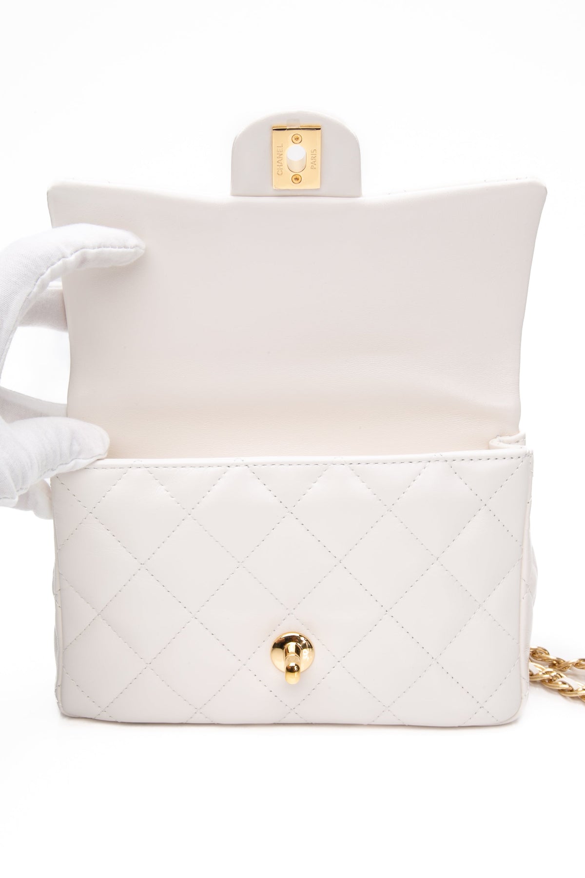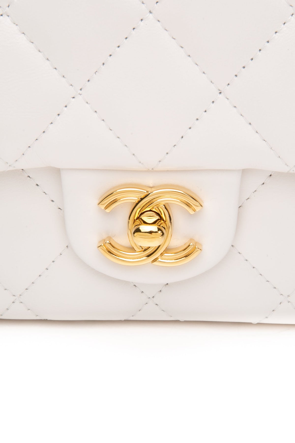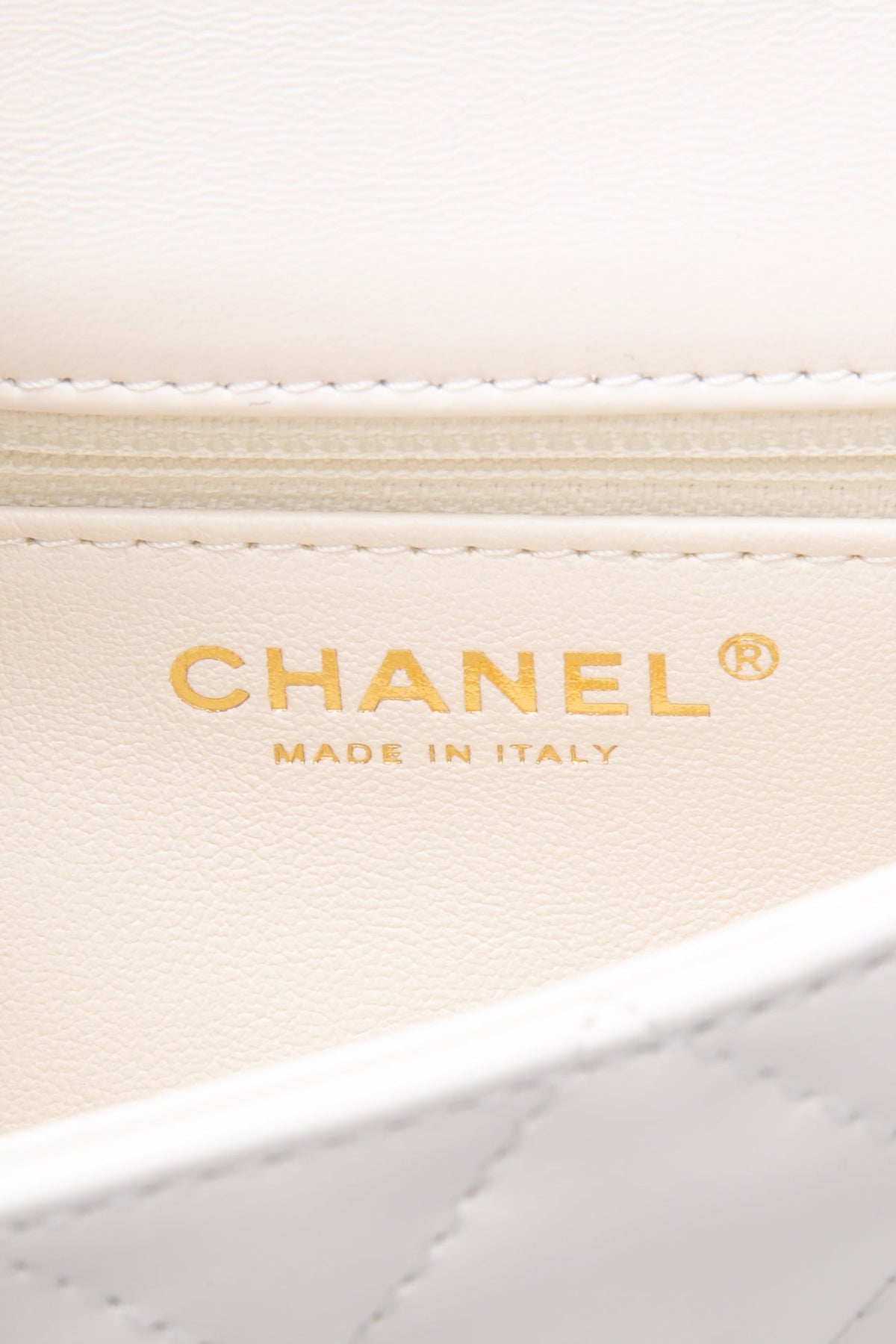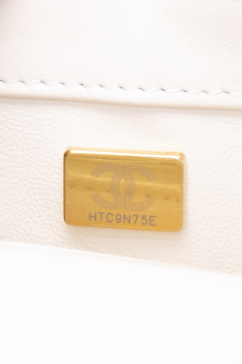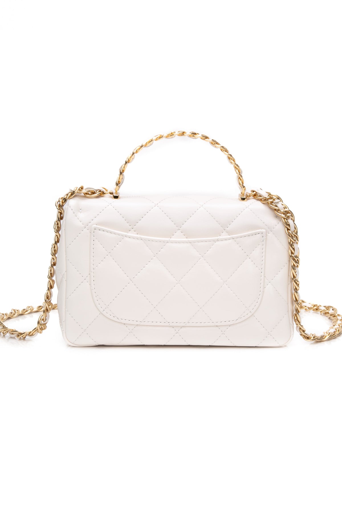 CHANEL Mini White Quilted Calfskin Top Handle Flap Bag with Chain