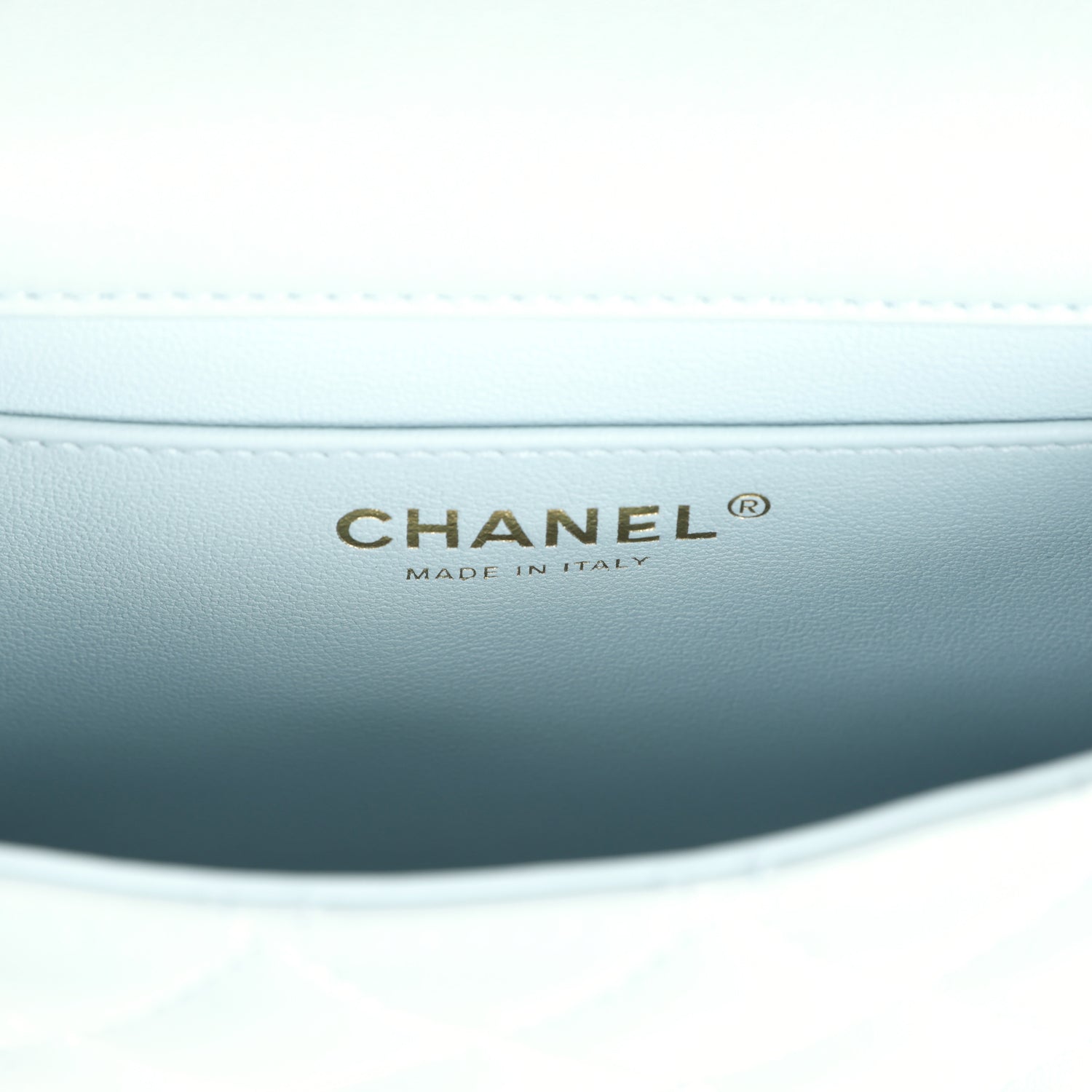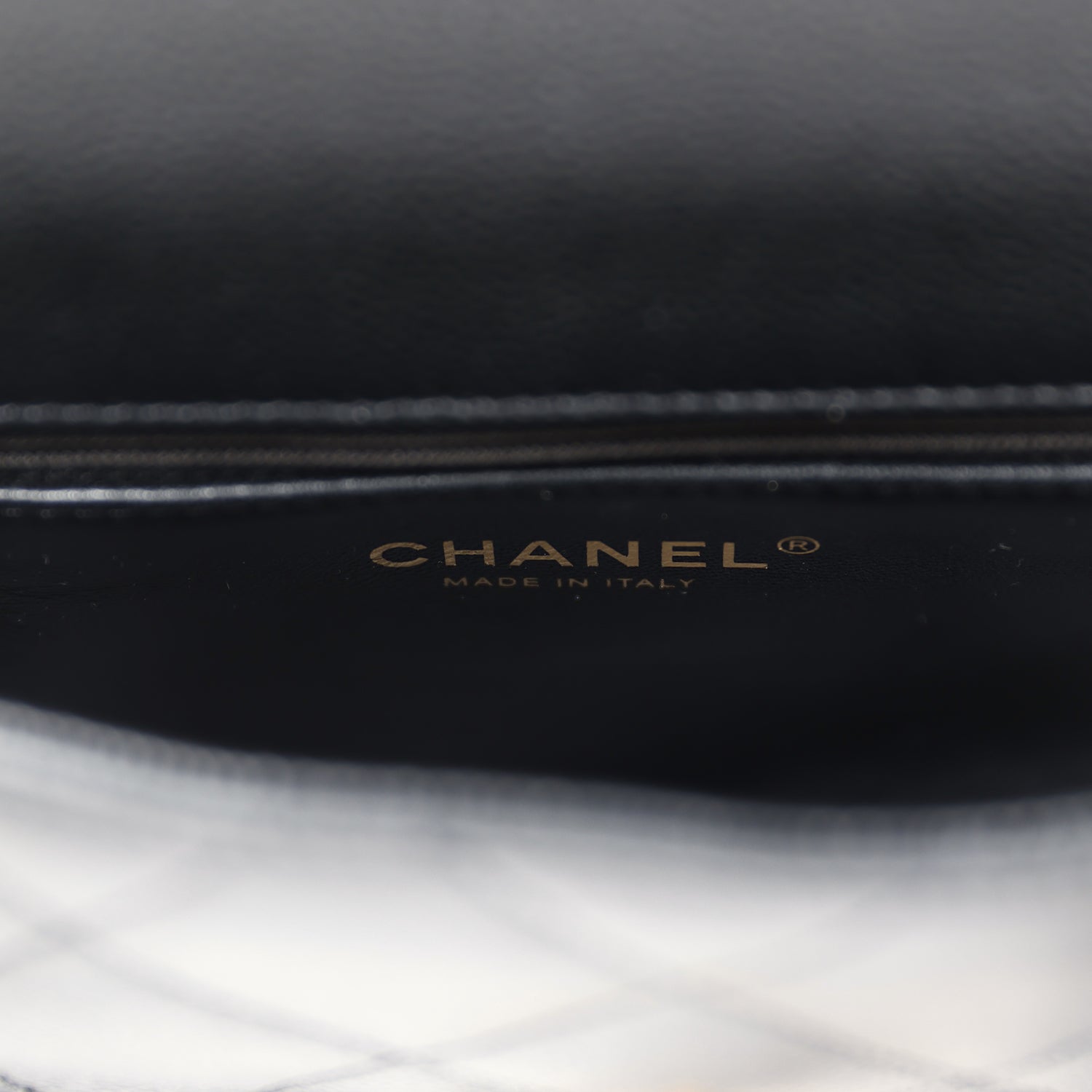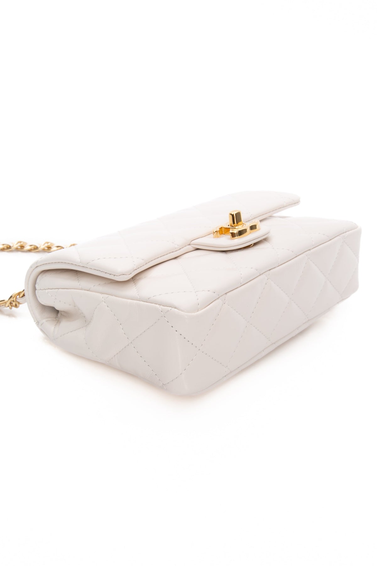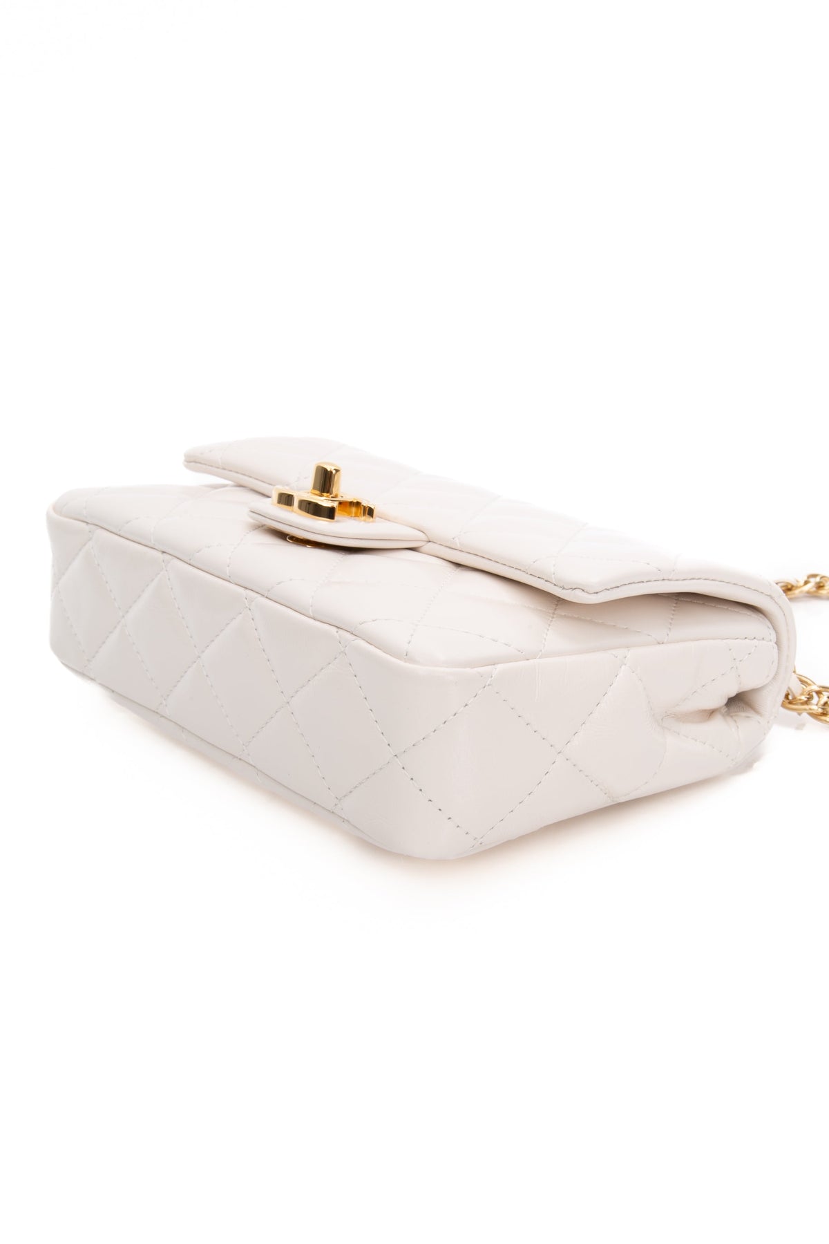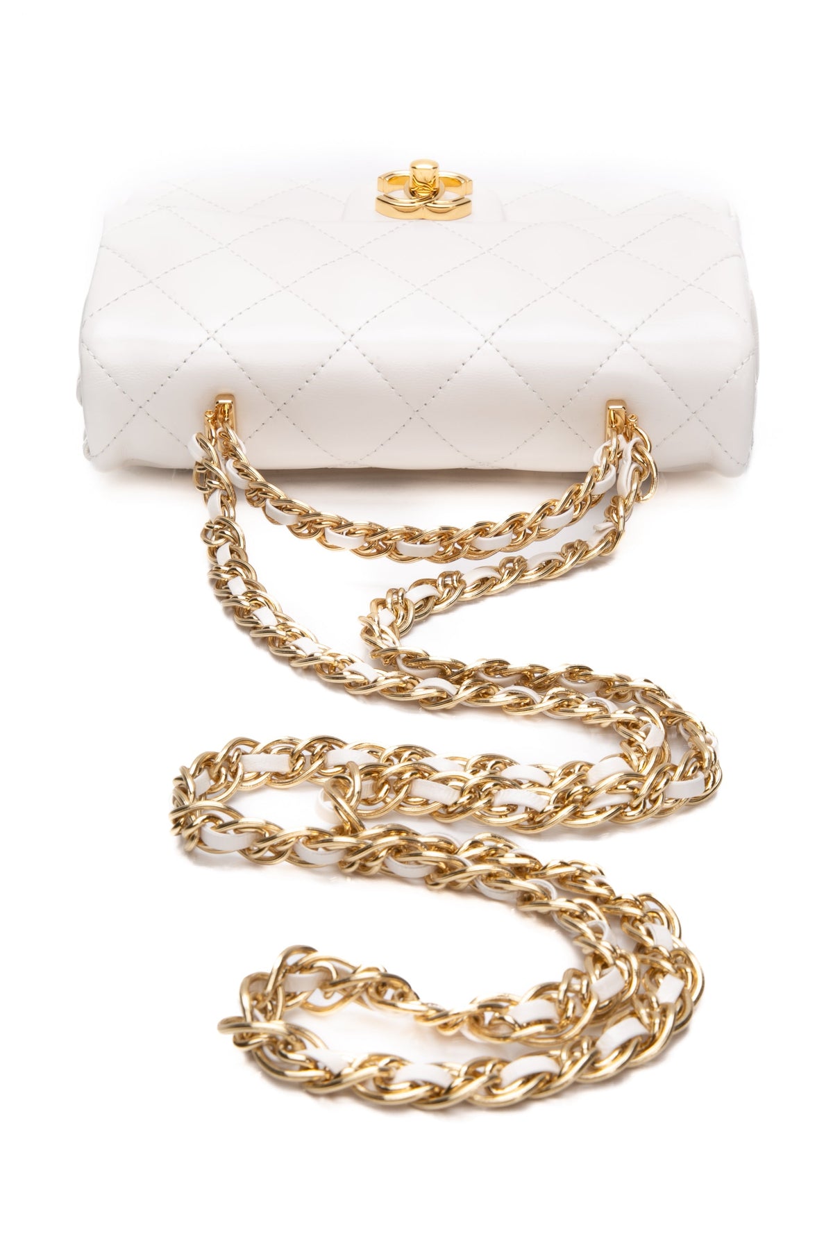 CHANEL Mini White Quilted Calfskin Top Handle Flap Bag with Chain