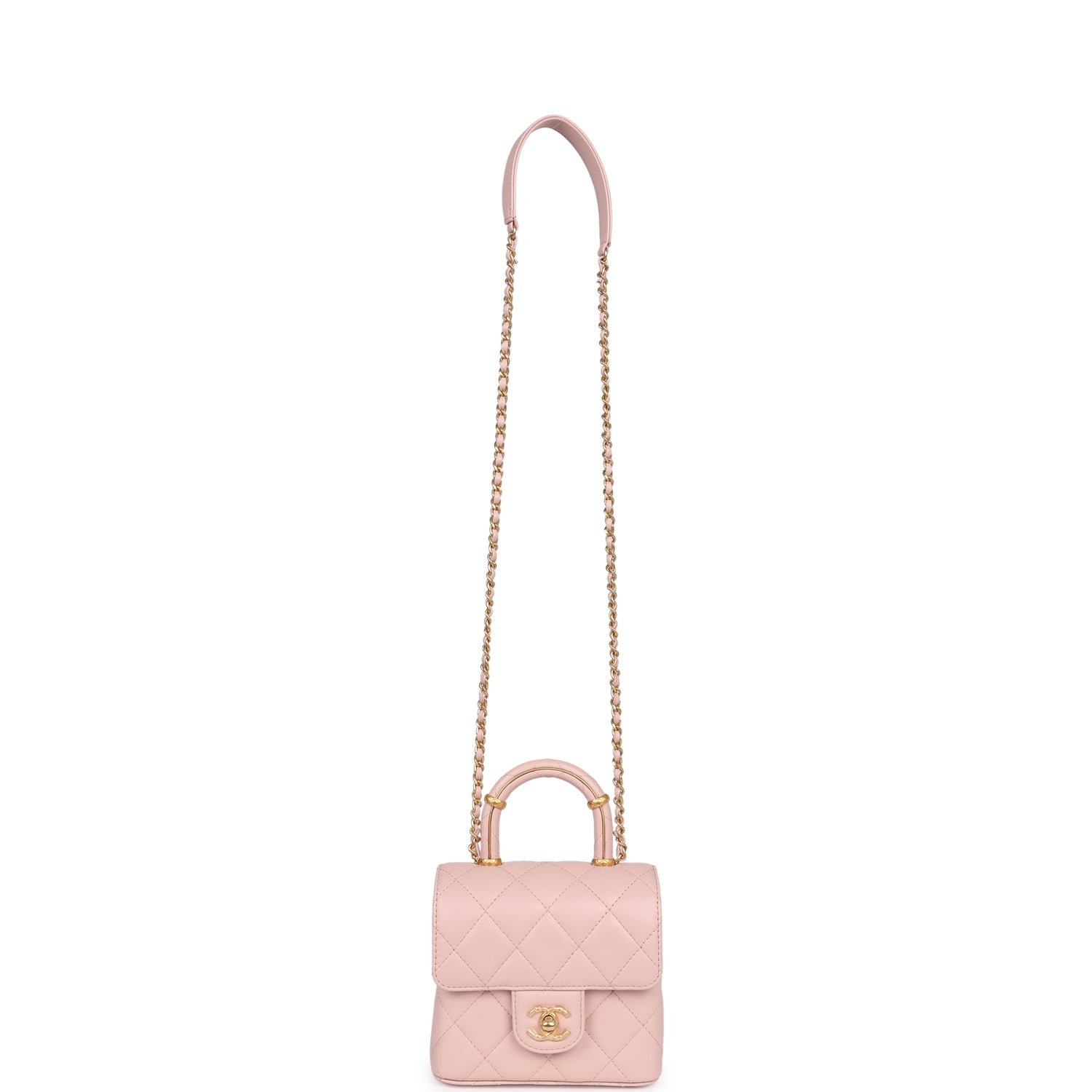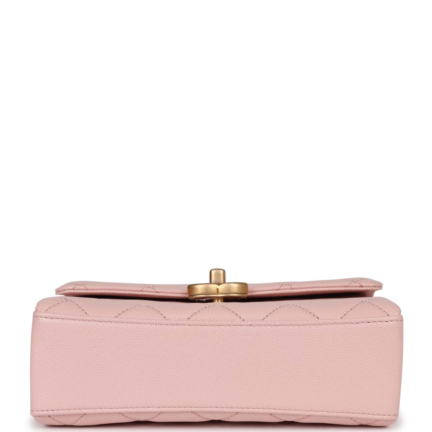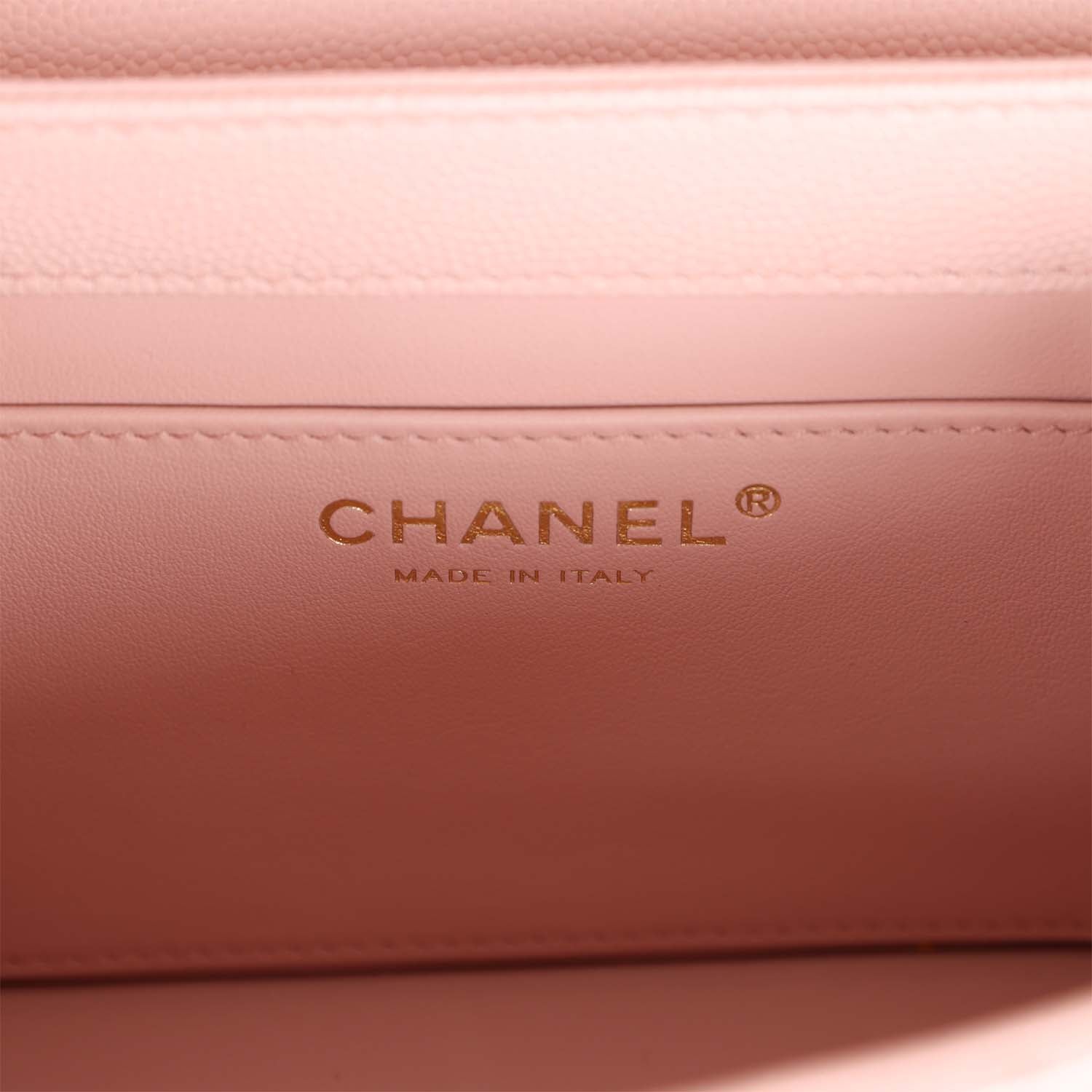 Chanel Mini Top Handle Flap Bag Pink Caviar Aged Gold Hardware