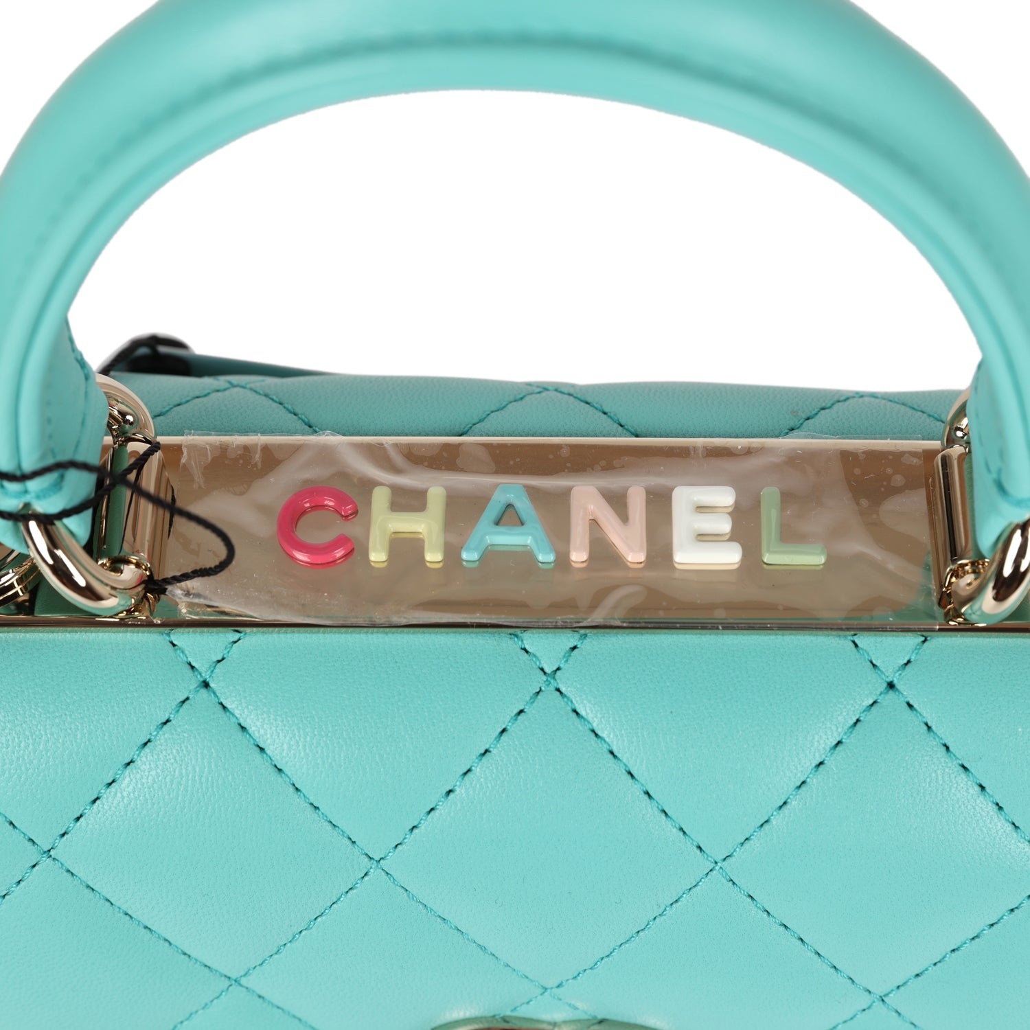 Chanel Mini Trendy CC Flap Bag Turquoise Lambskin Light Gold Hardware