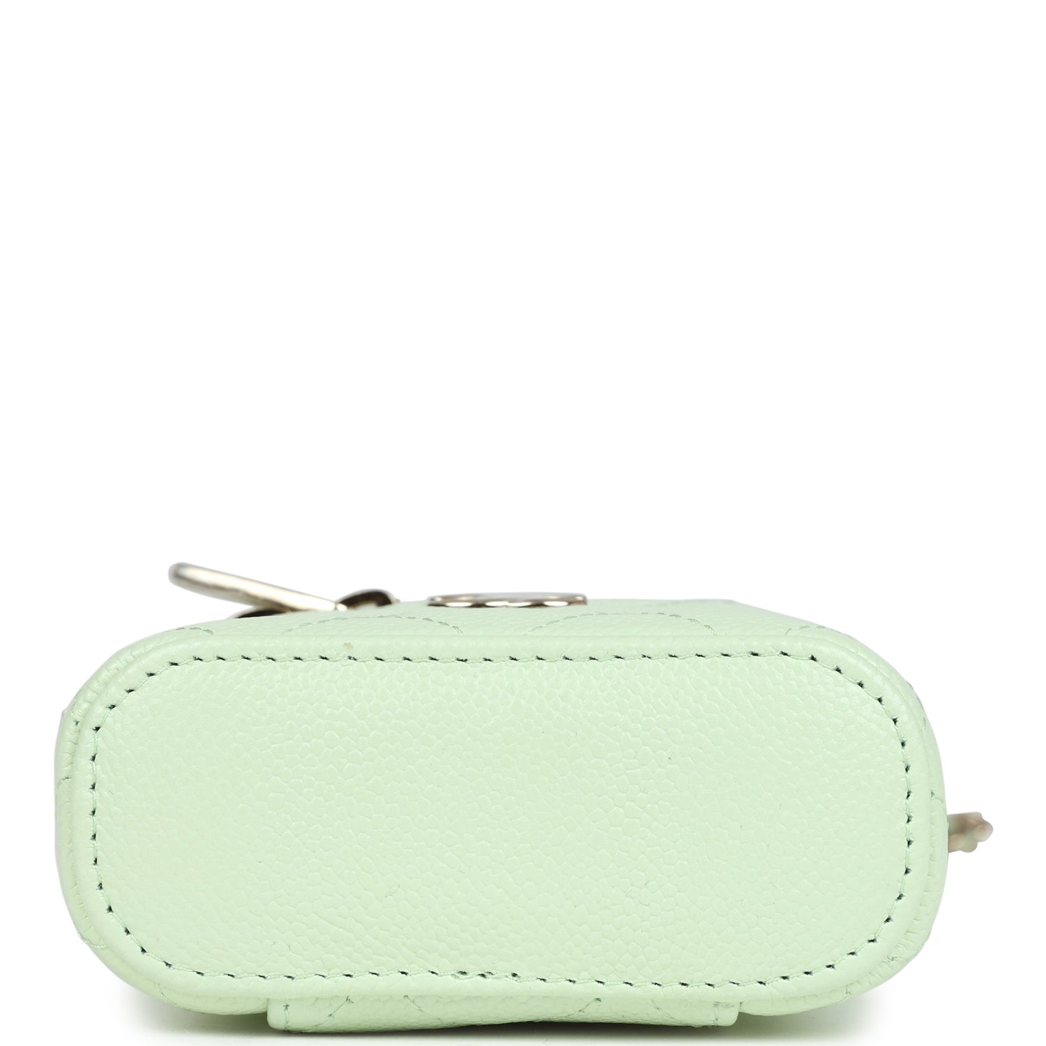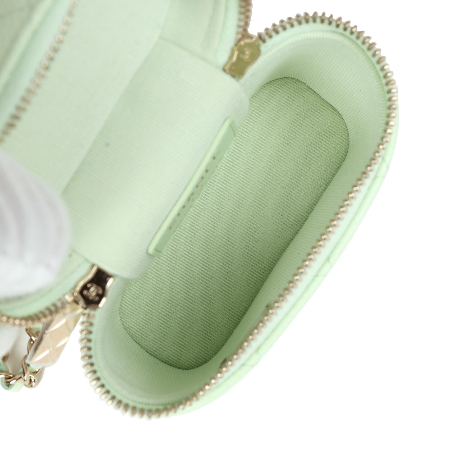 Chanel Mini Top Handle Crossbody Vanity Case Light Green Caviar Gold Hardware