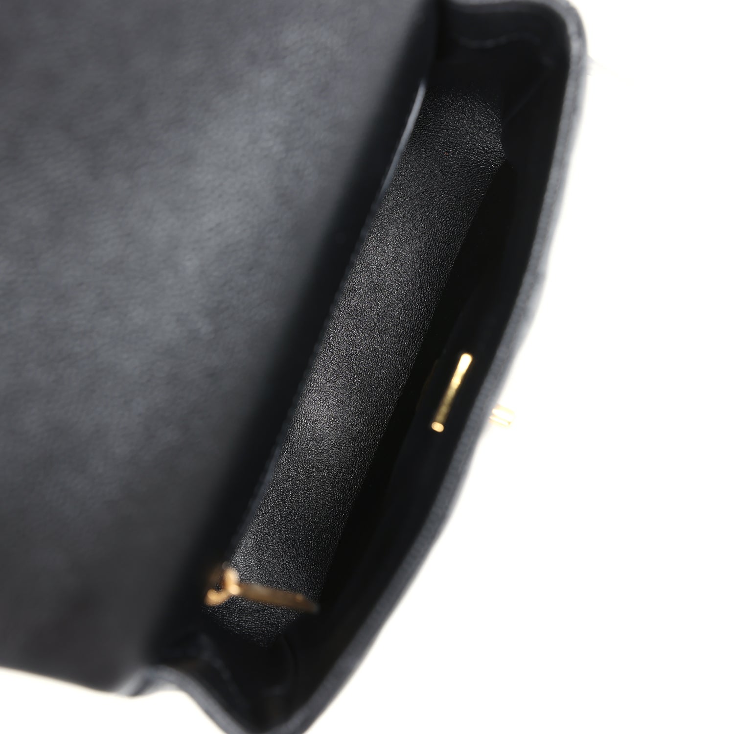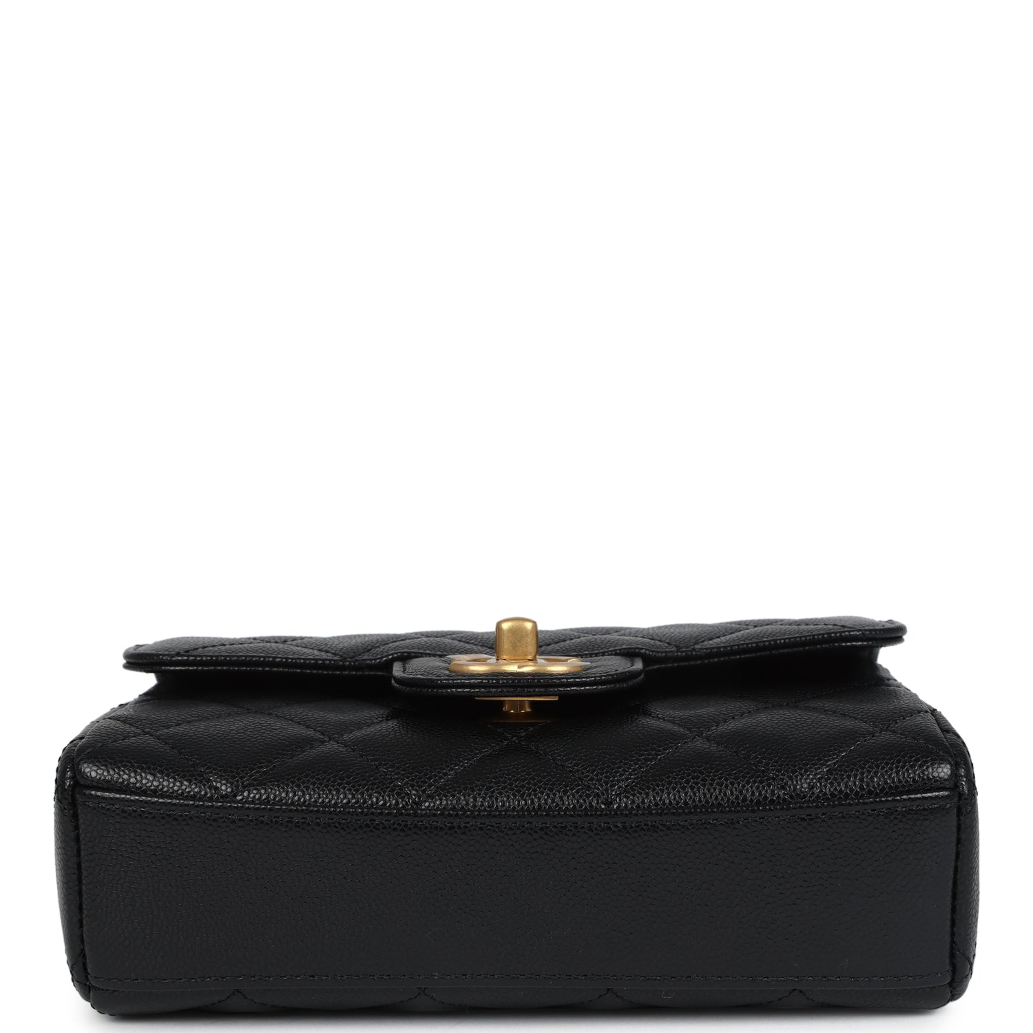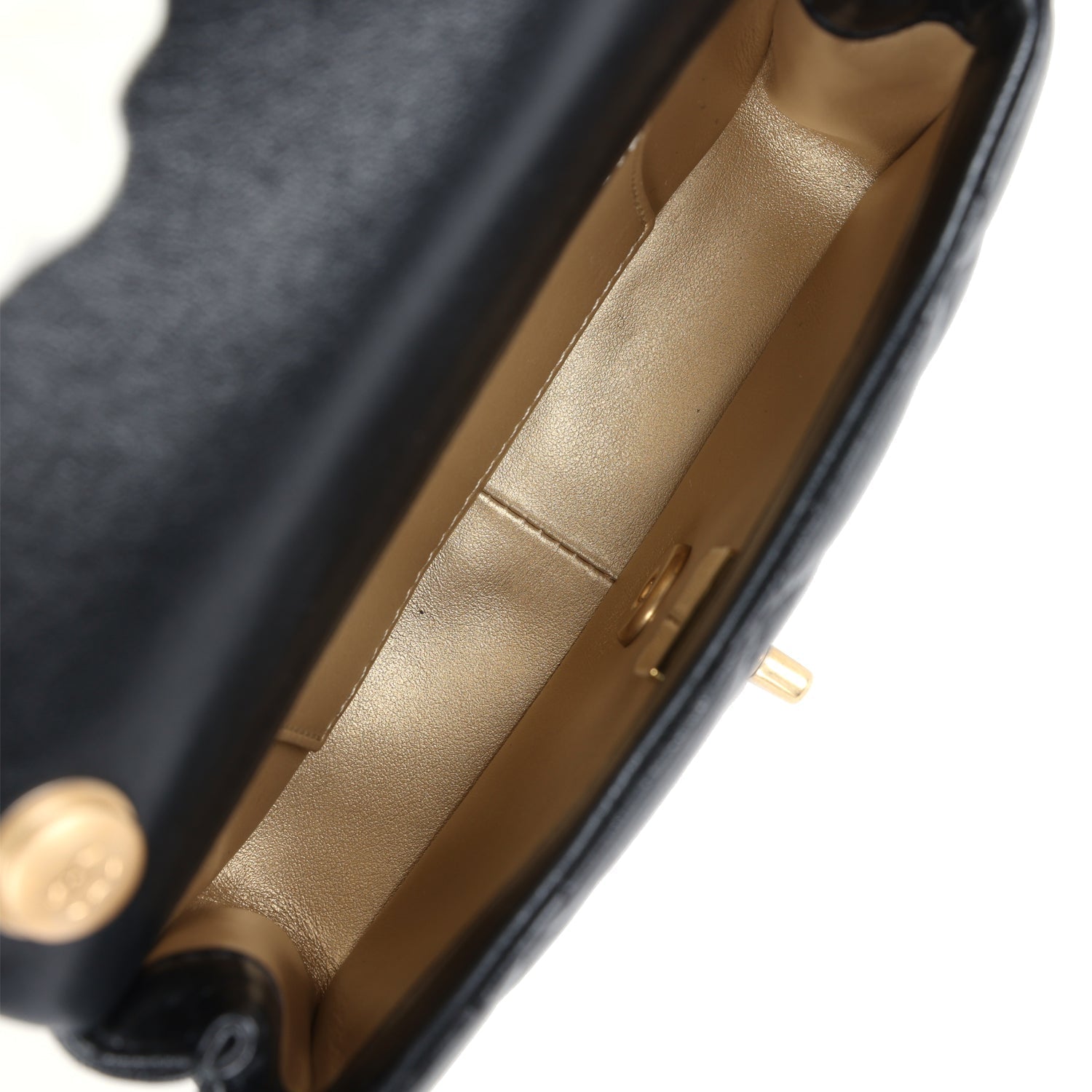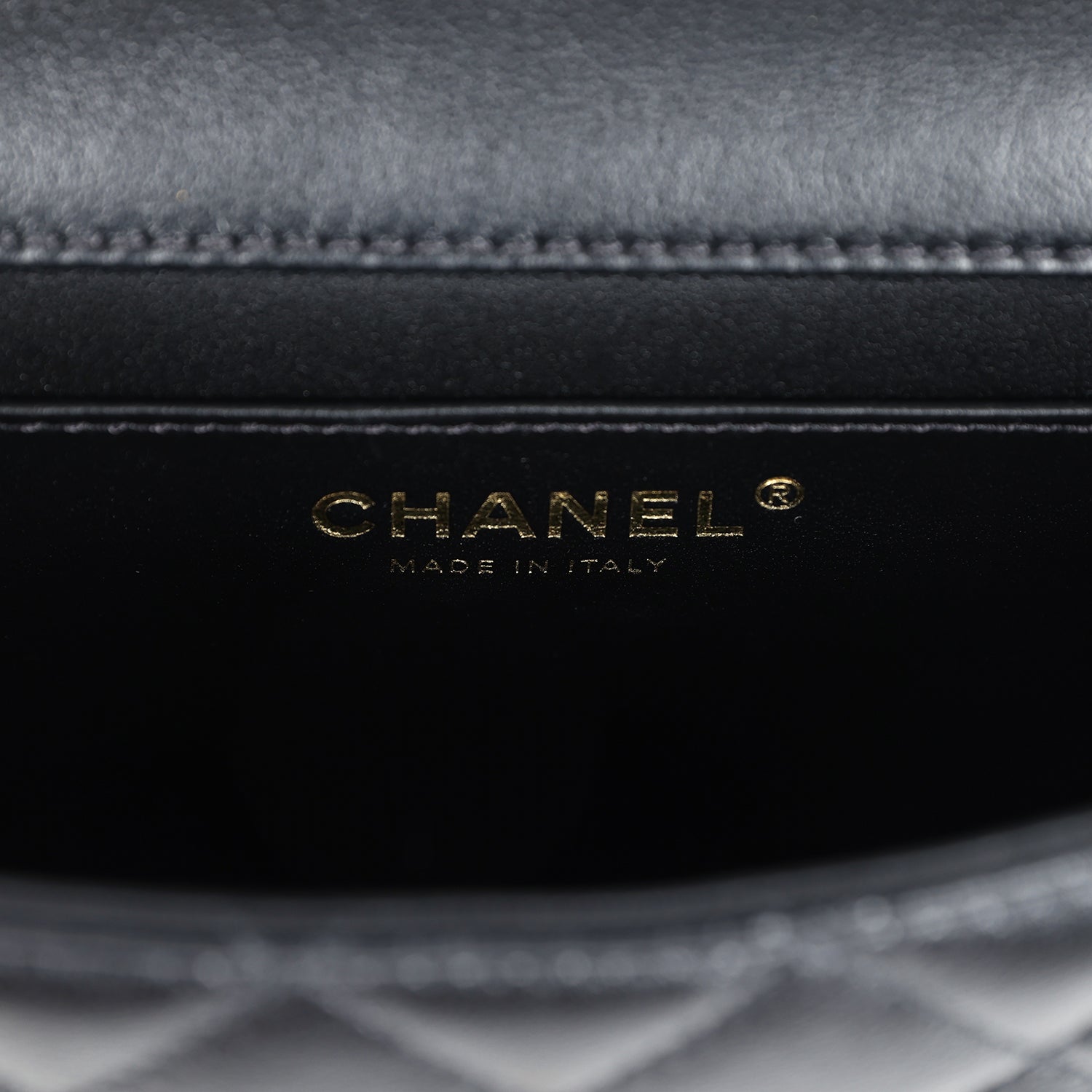 Chanel Mini Top Handle Flap Bag Black Grained Calfskin Brushed Gold Hardware