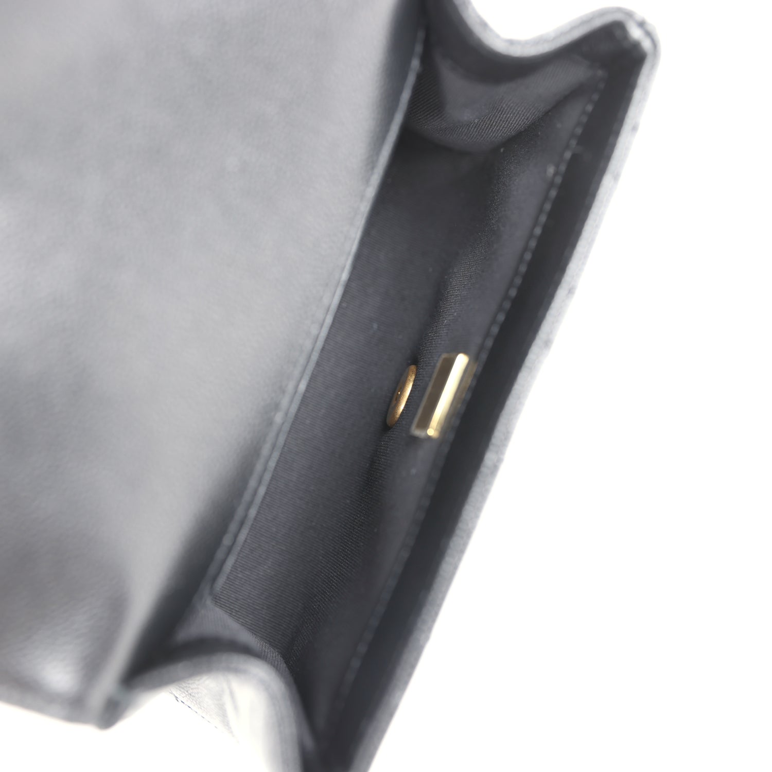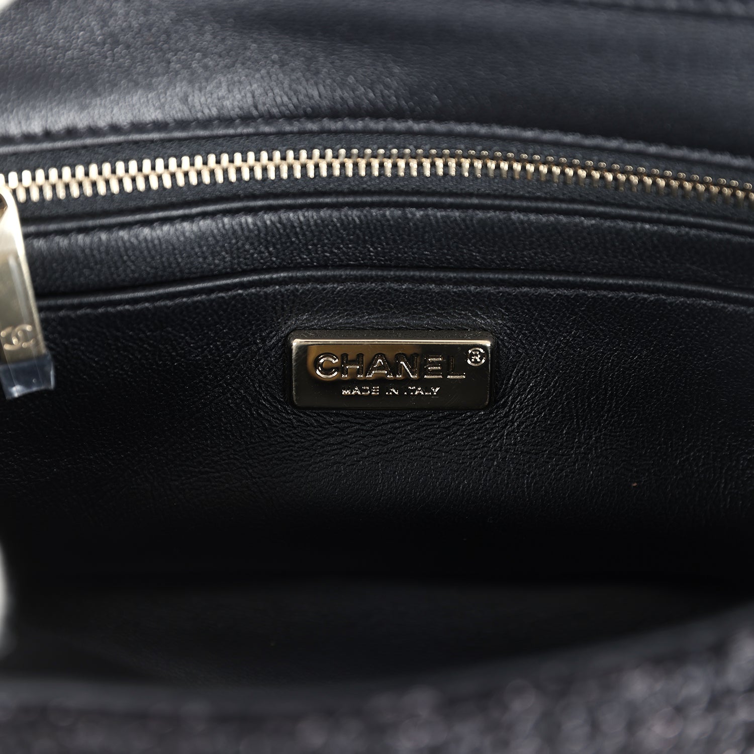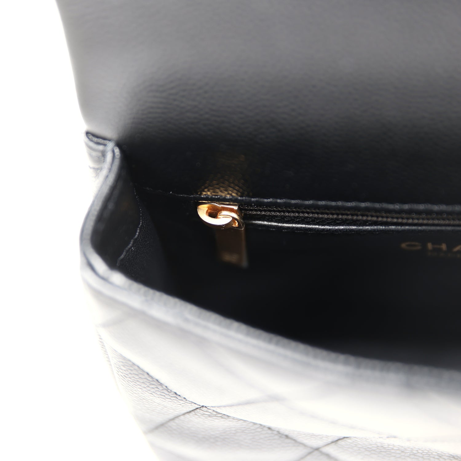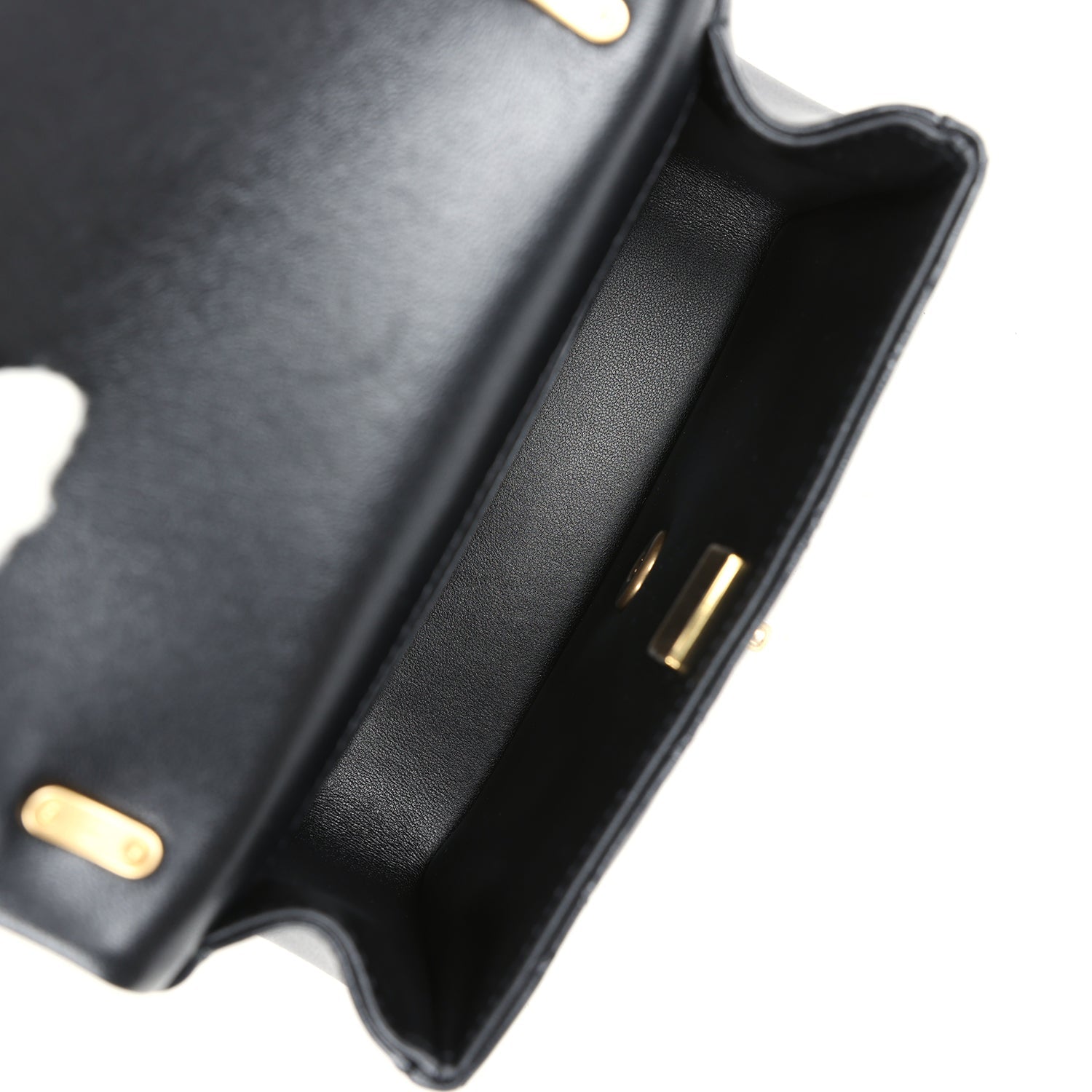 Chanel Mini Top Handle Flap Bag Black Grained Calfskin Brushed Gold Hardware