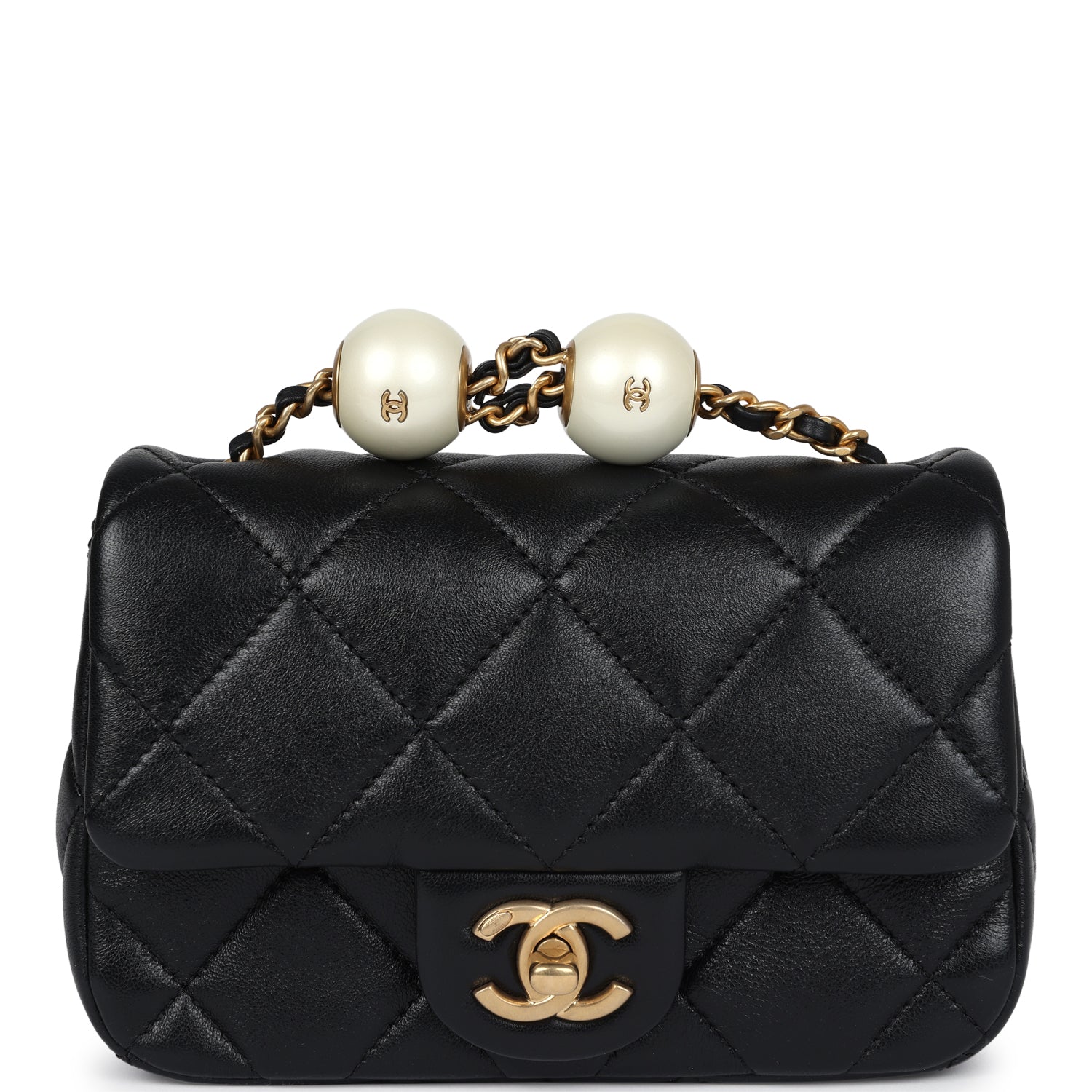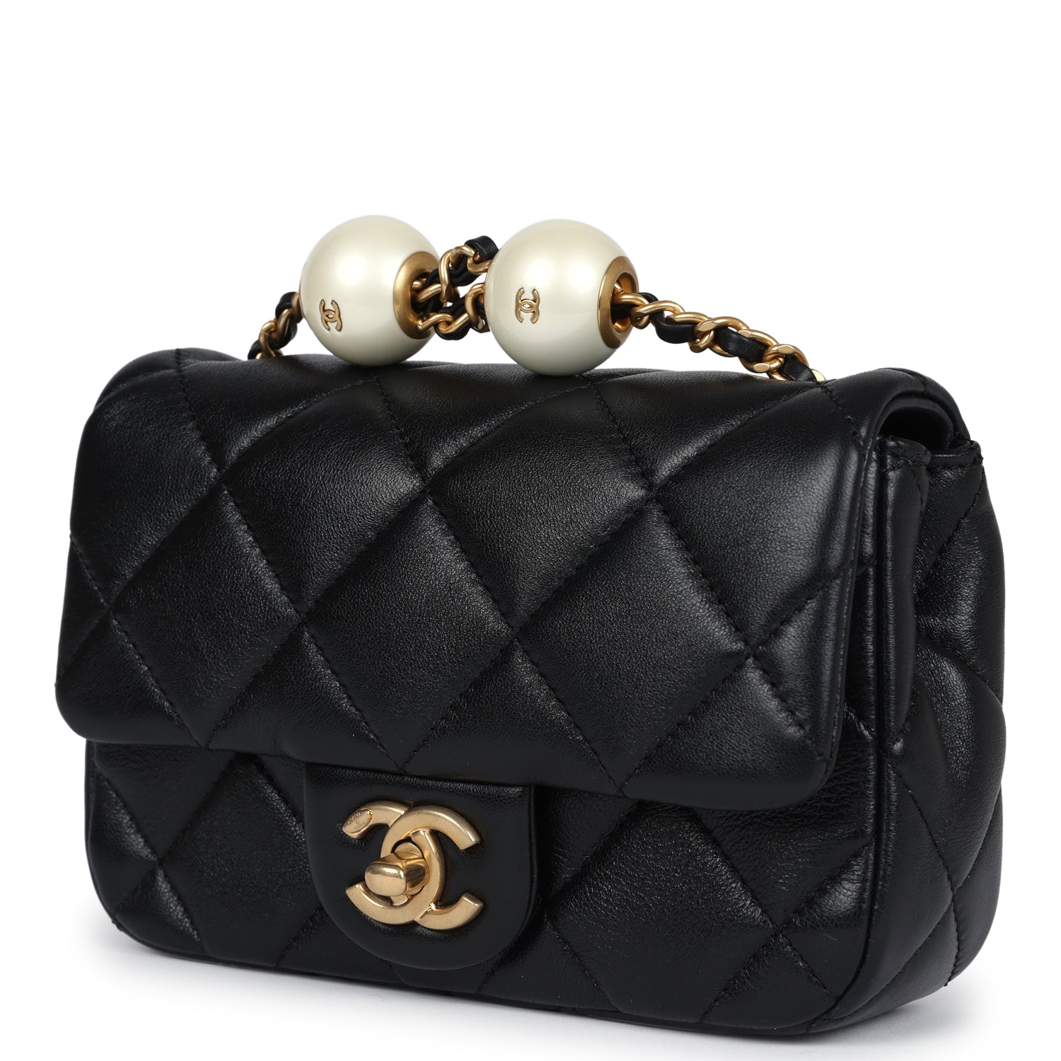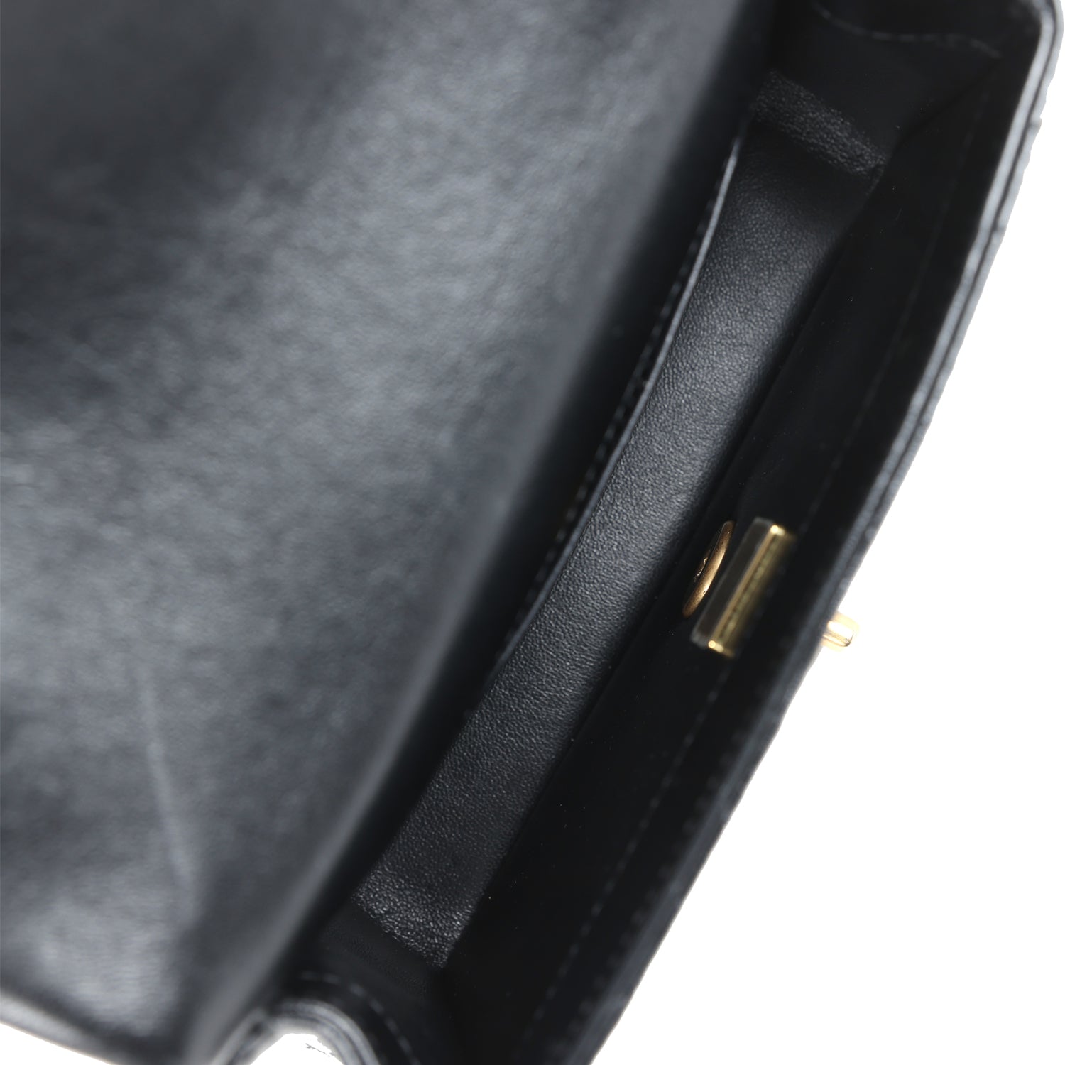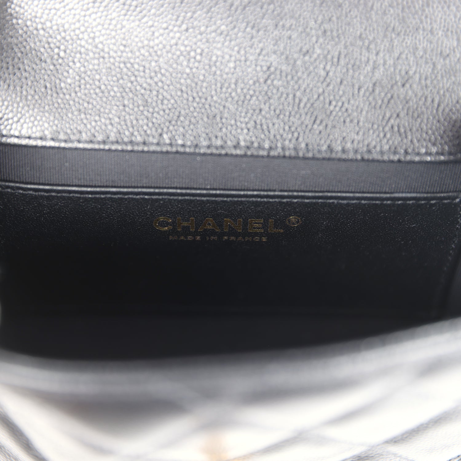 Chanel Mini Top Handle Flap Bag Black Grained Calfskin Brushed Gold Hardware