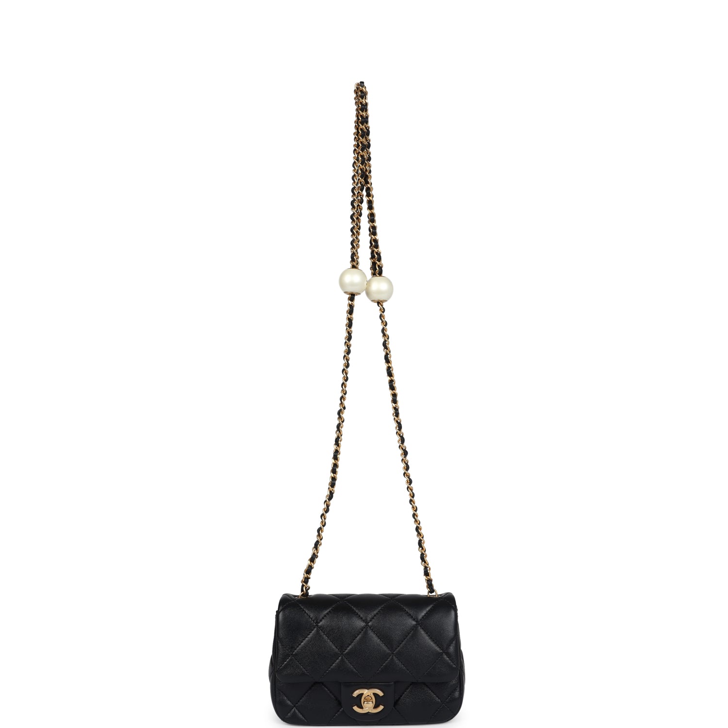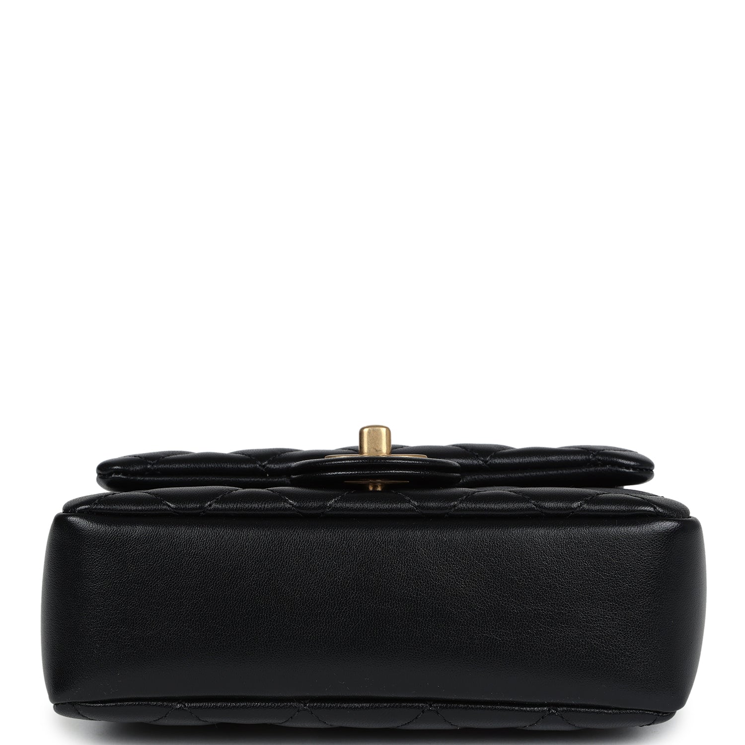 Chanel Mini Sweetheart Crush Square Flap Bag Black Shiny Calfskin Antique Gold Hardware