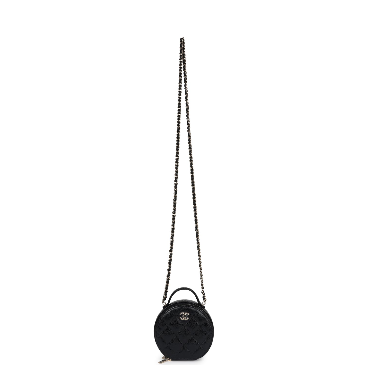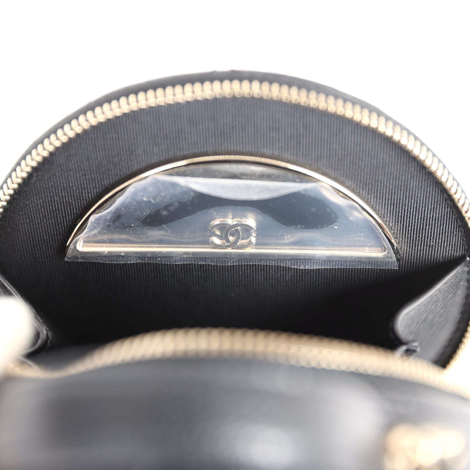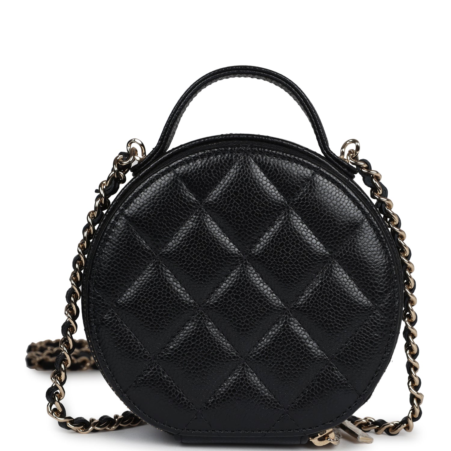 Chanel Mini Top Handle Round Vanity Bag Black Caviar Gold Hardware