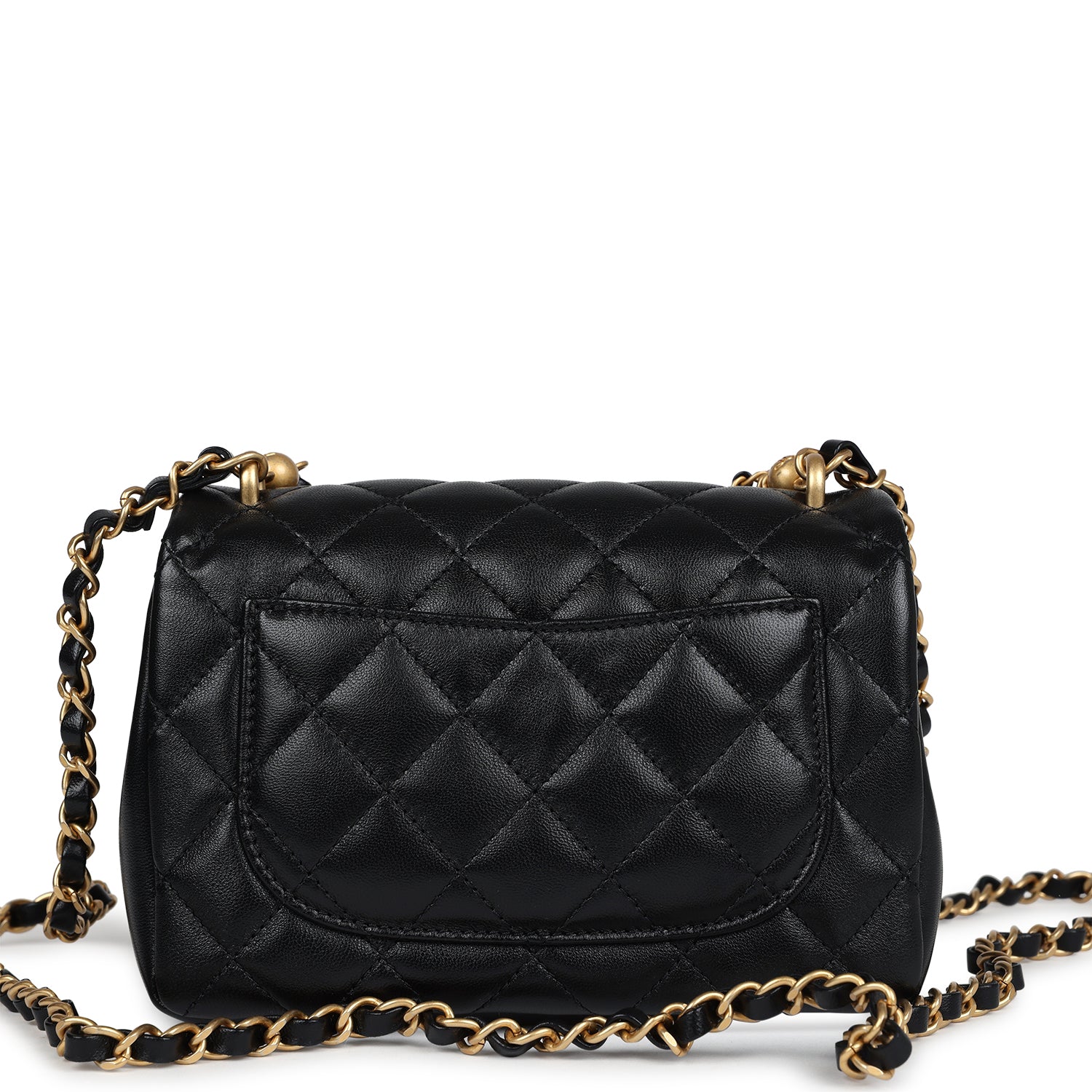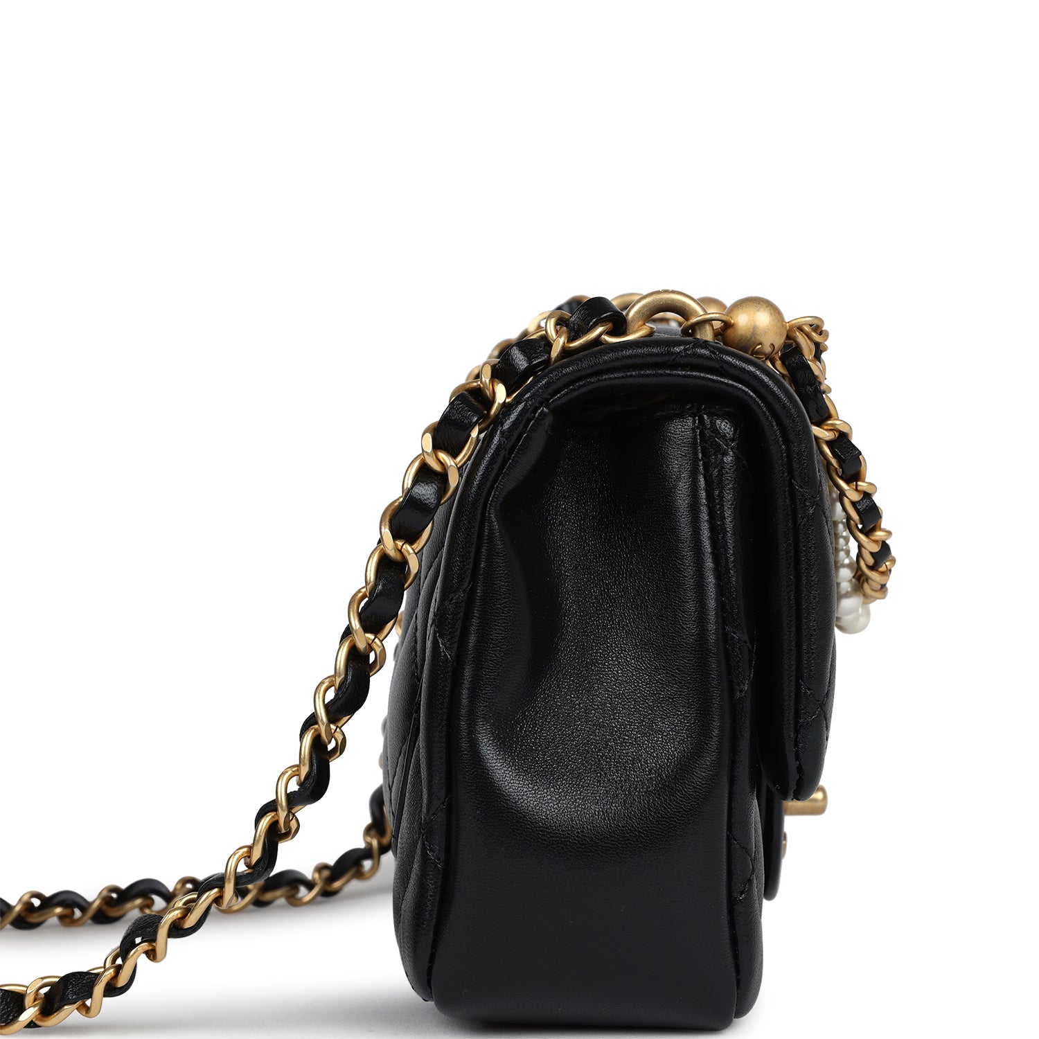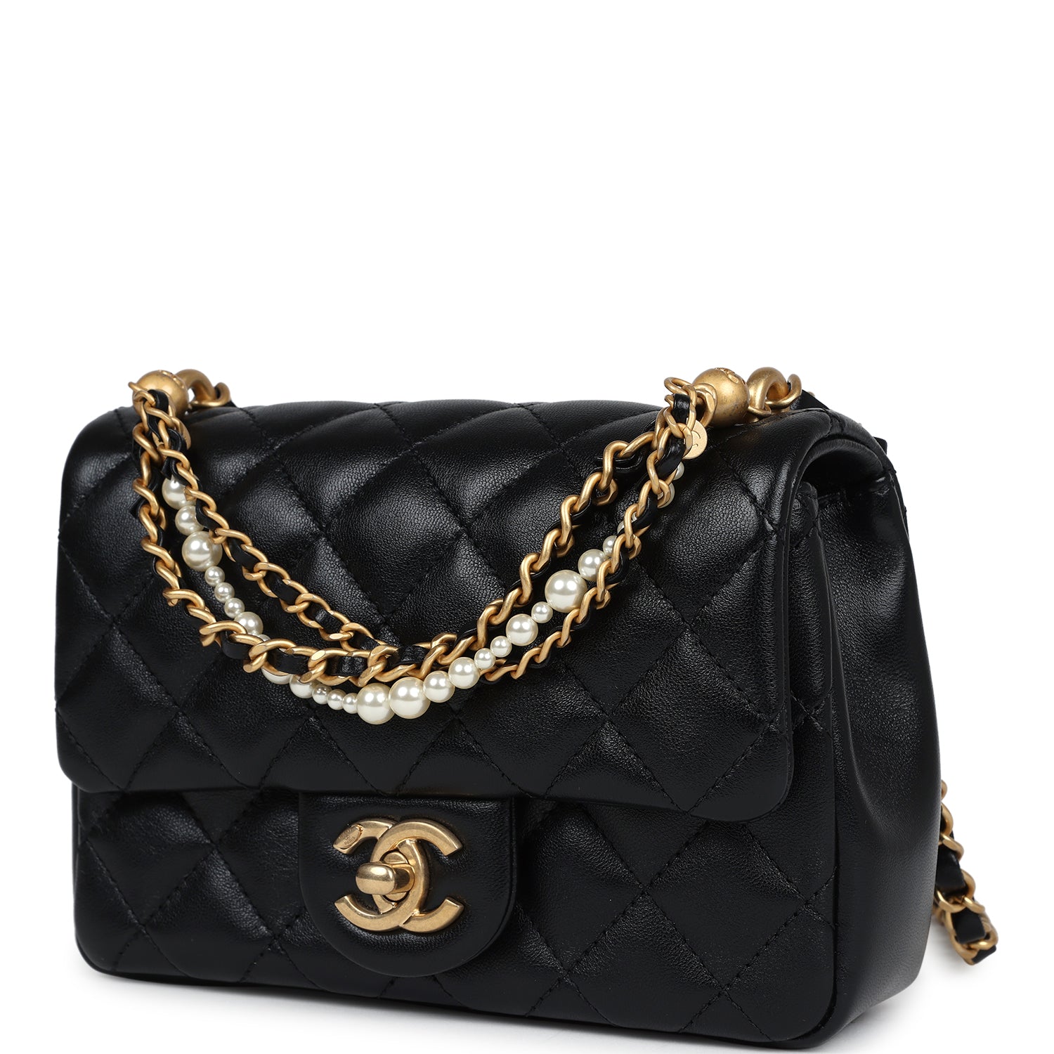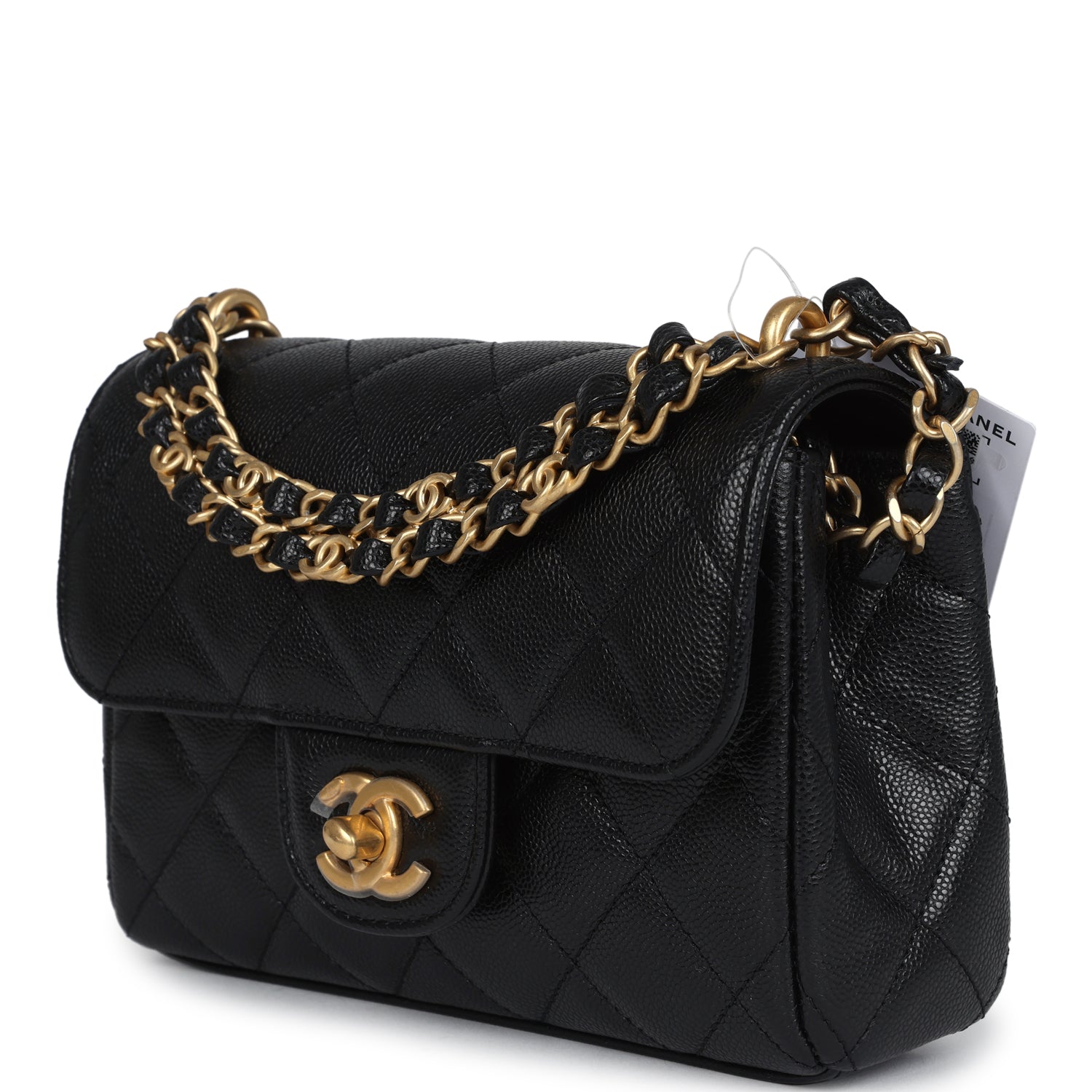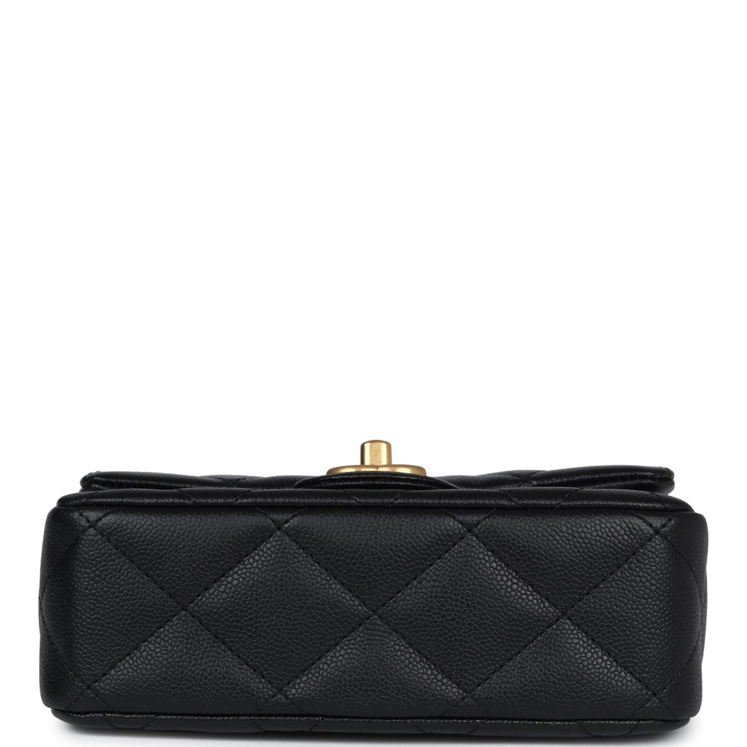 Chanel Mini Sweetheart Crush Square Flap Bag Black Caviar Antique Gold Hardware