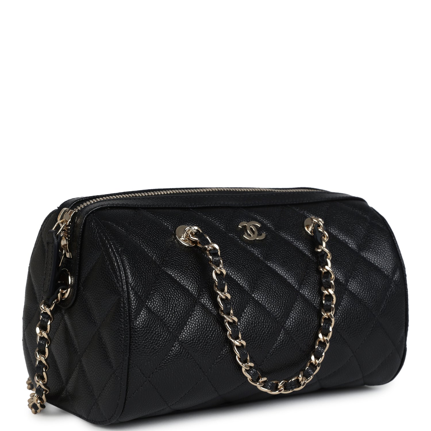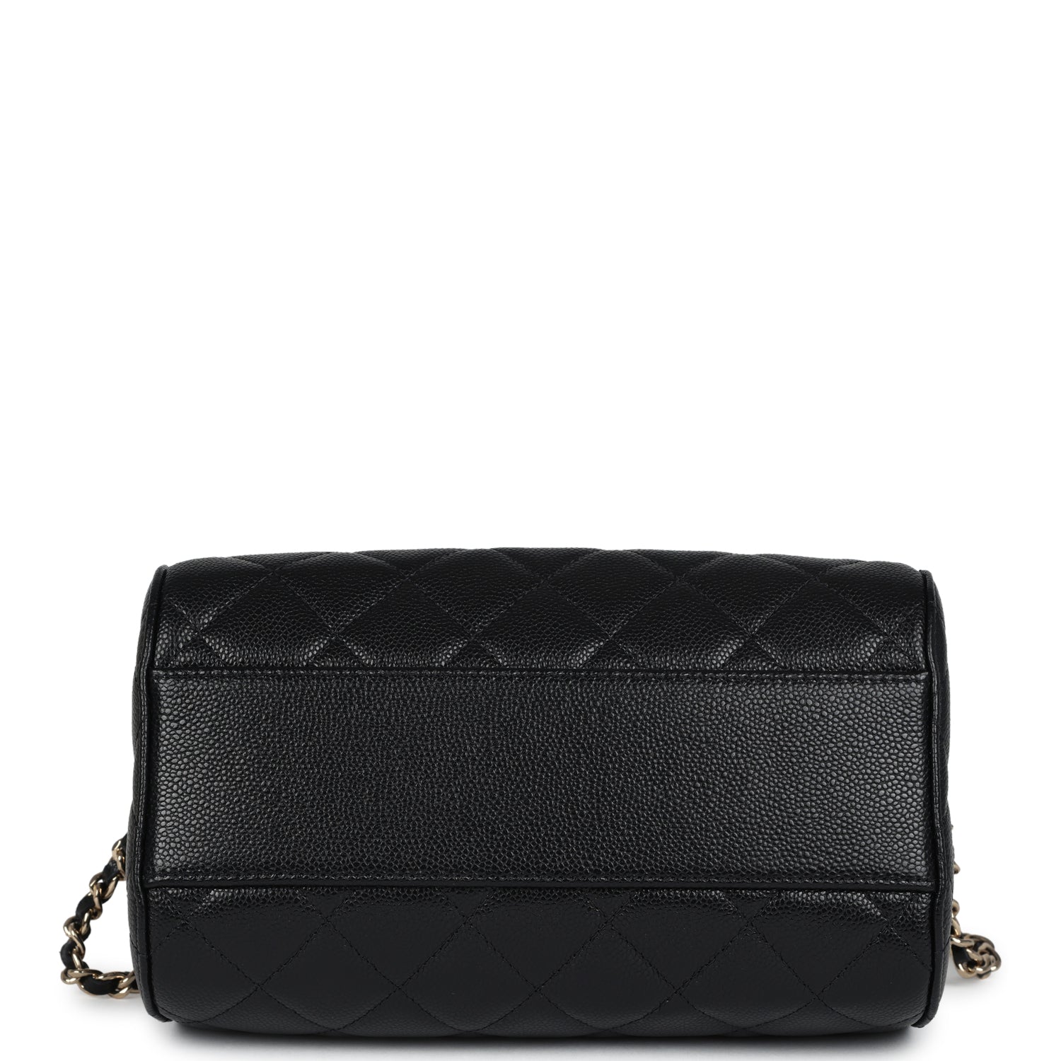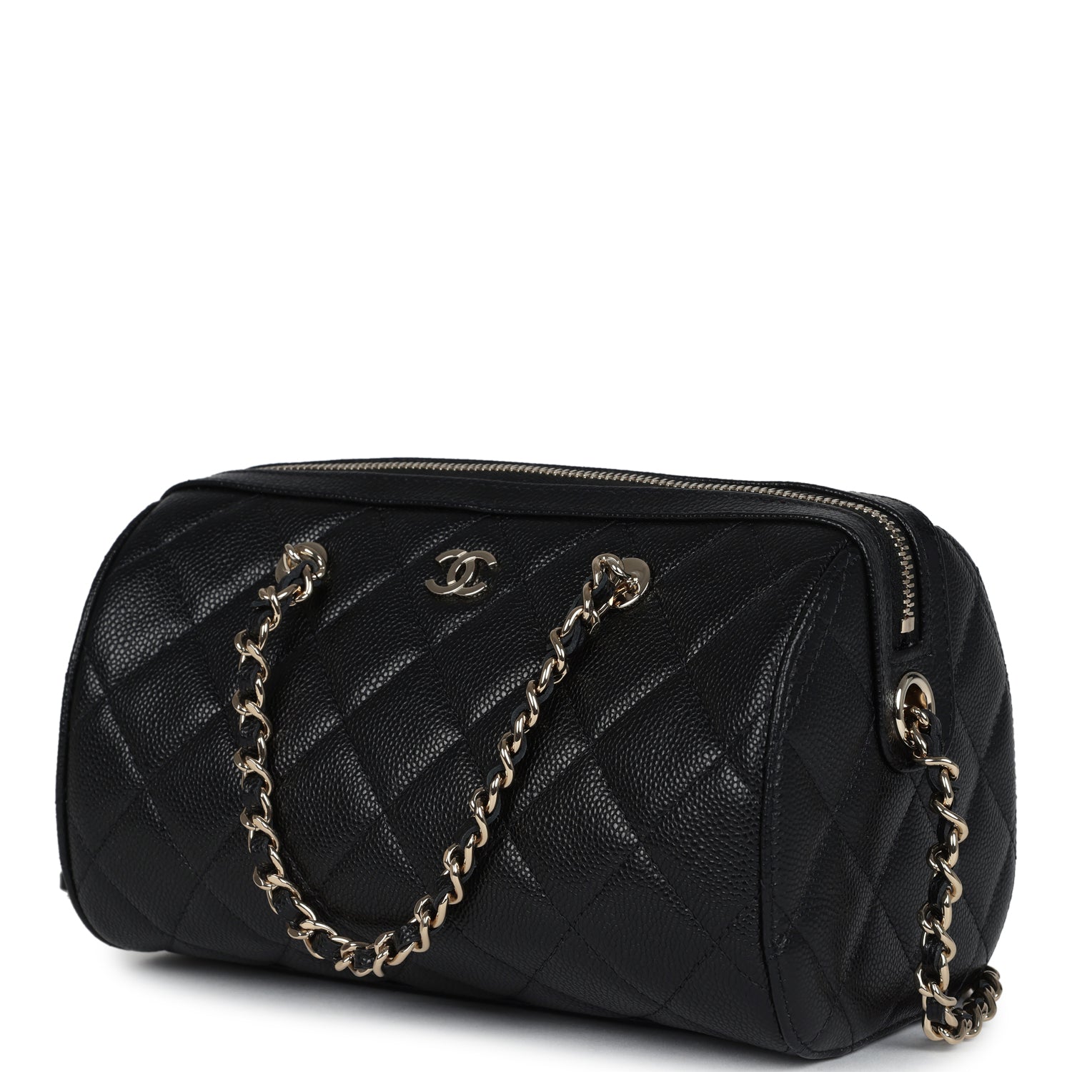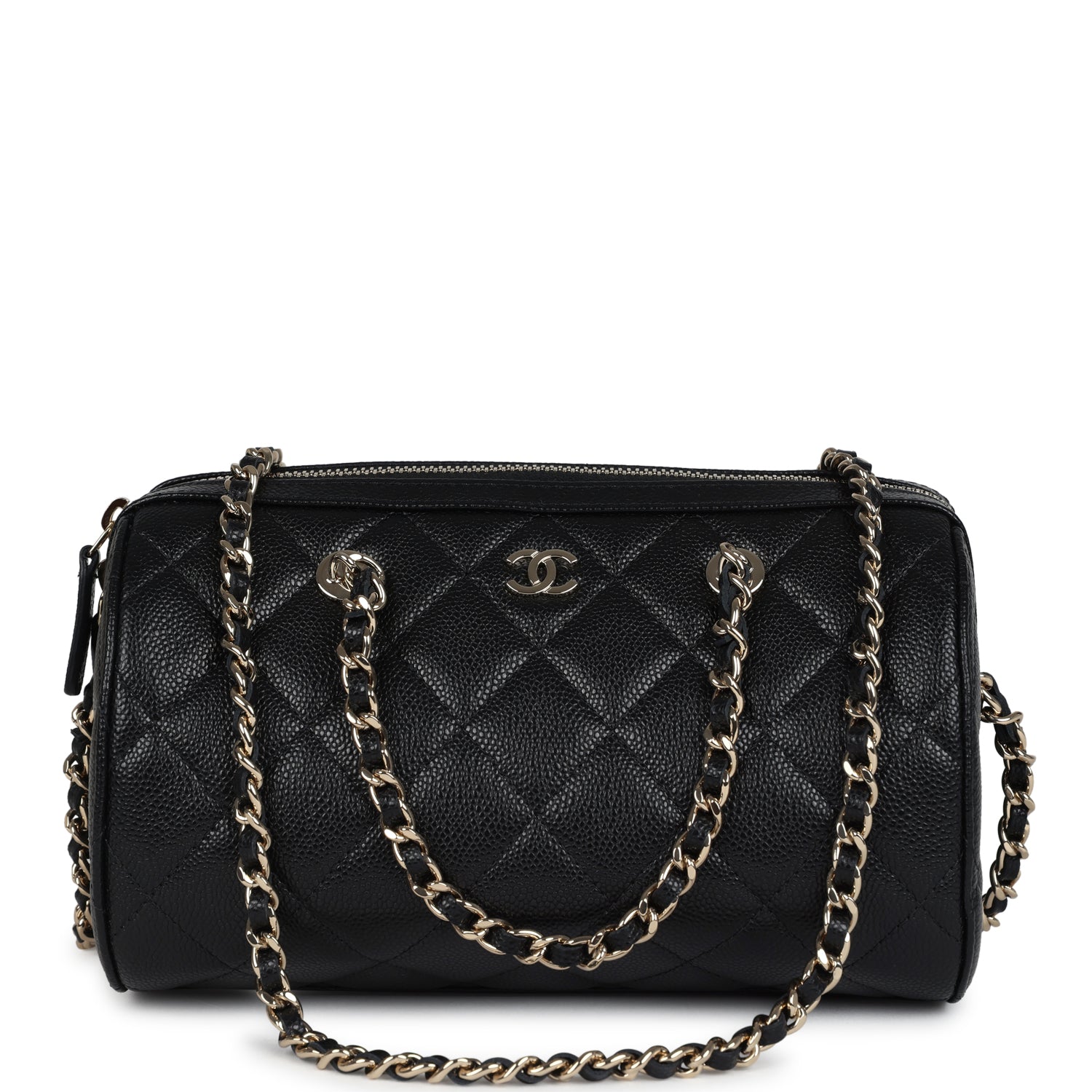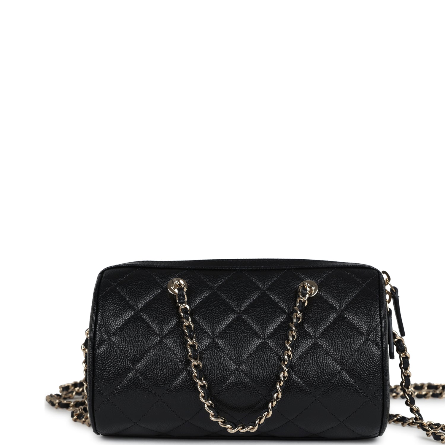 Chanel Mini Timeless Classic Barrel Bag with Chain Black Shiny Caviar Light Gold Hardware