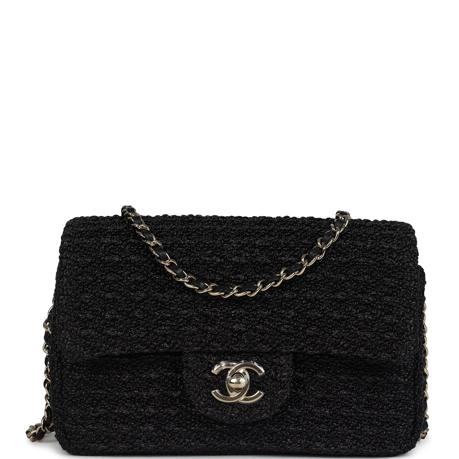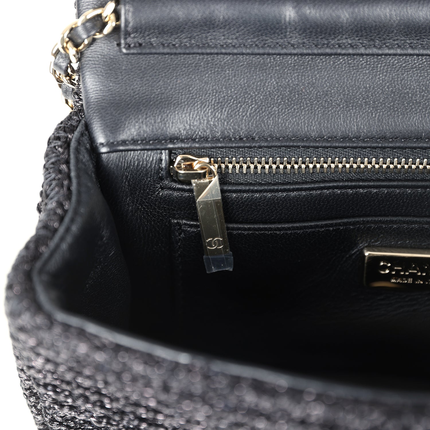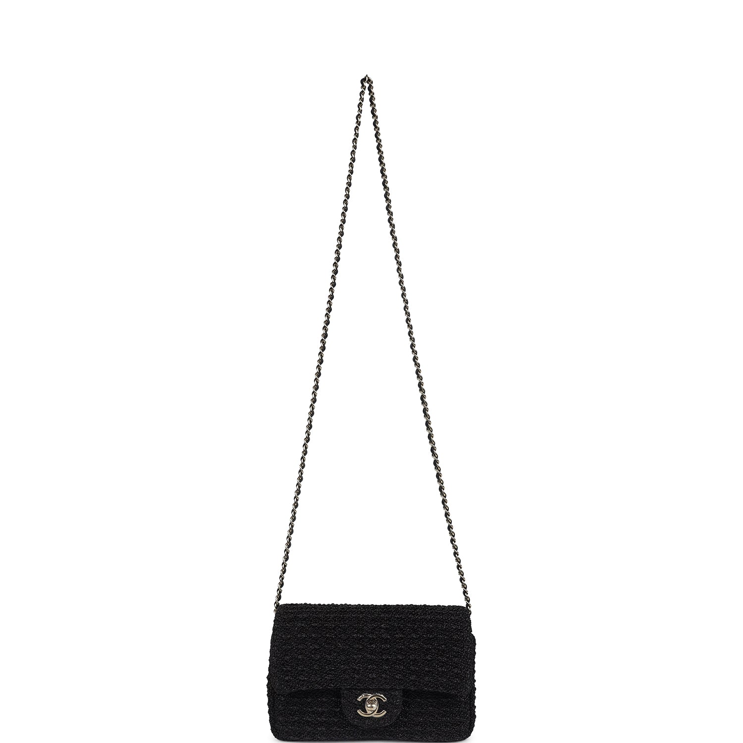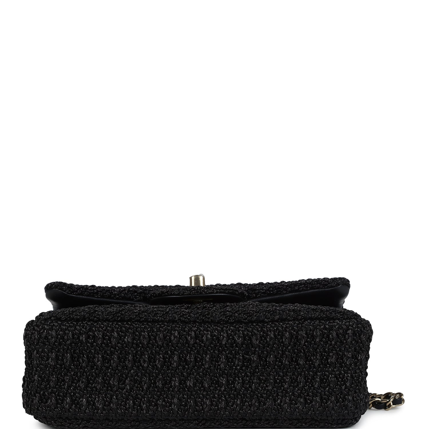 Chanel Mini Summer Nights Flap Bag Black Woven Patent Leather Light Gold Hardware