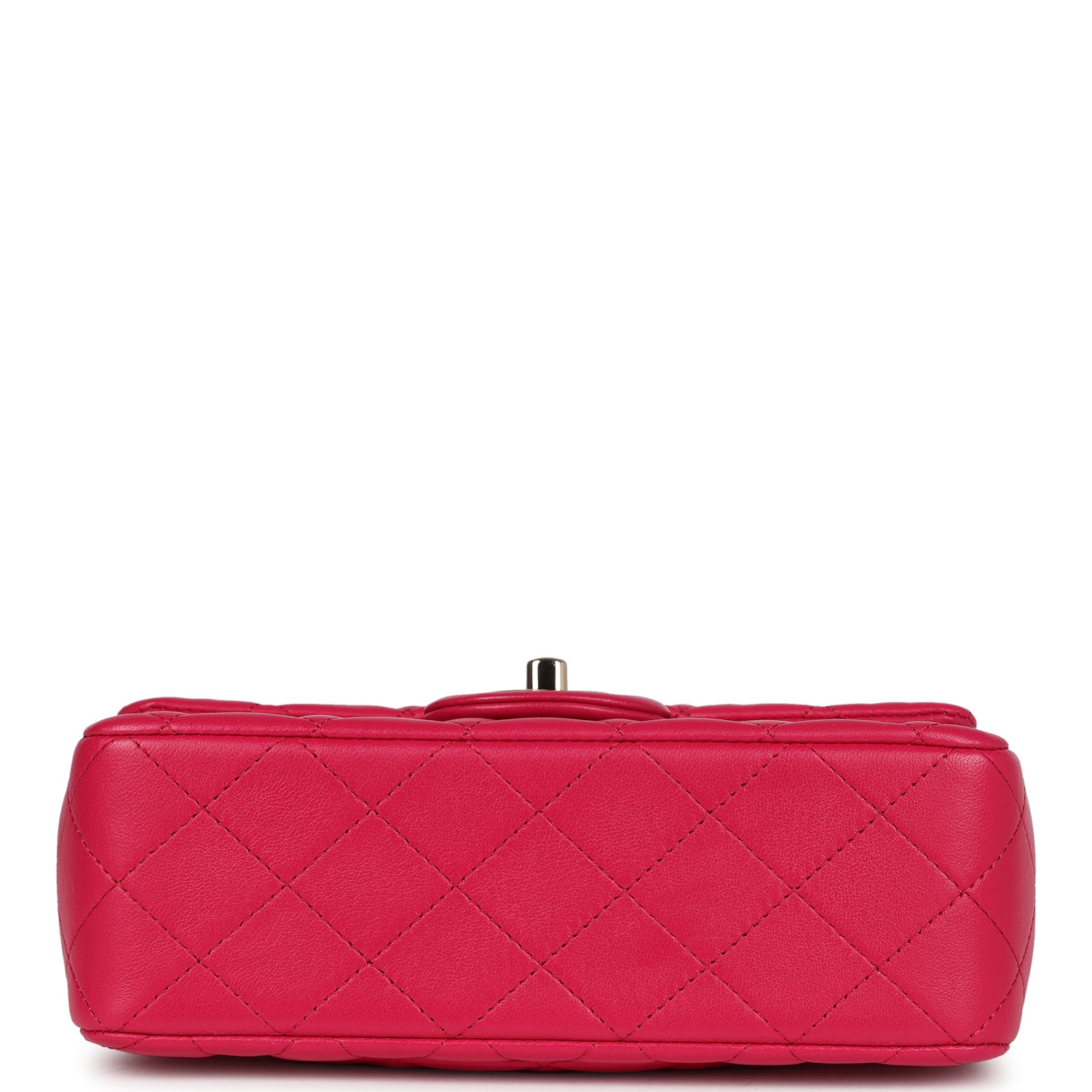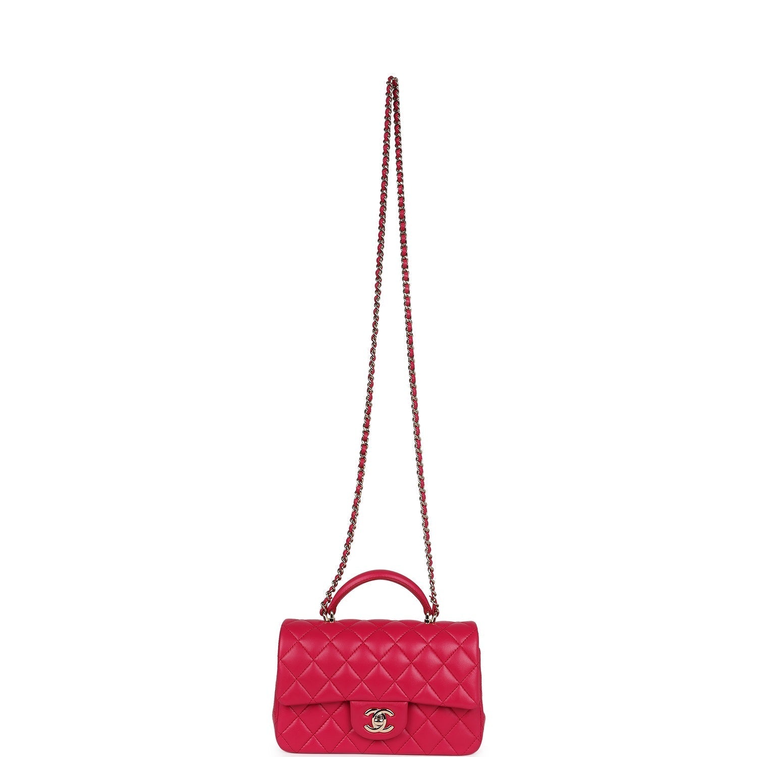 Chanel Mini Top Handle Rectangular Flap Bag Fuchsia Lambskin Light Gold Hardware