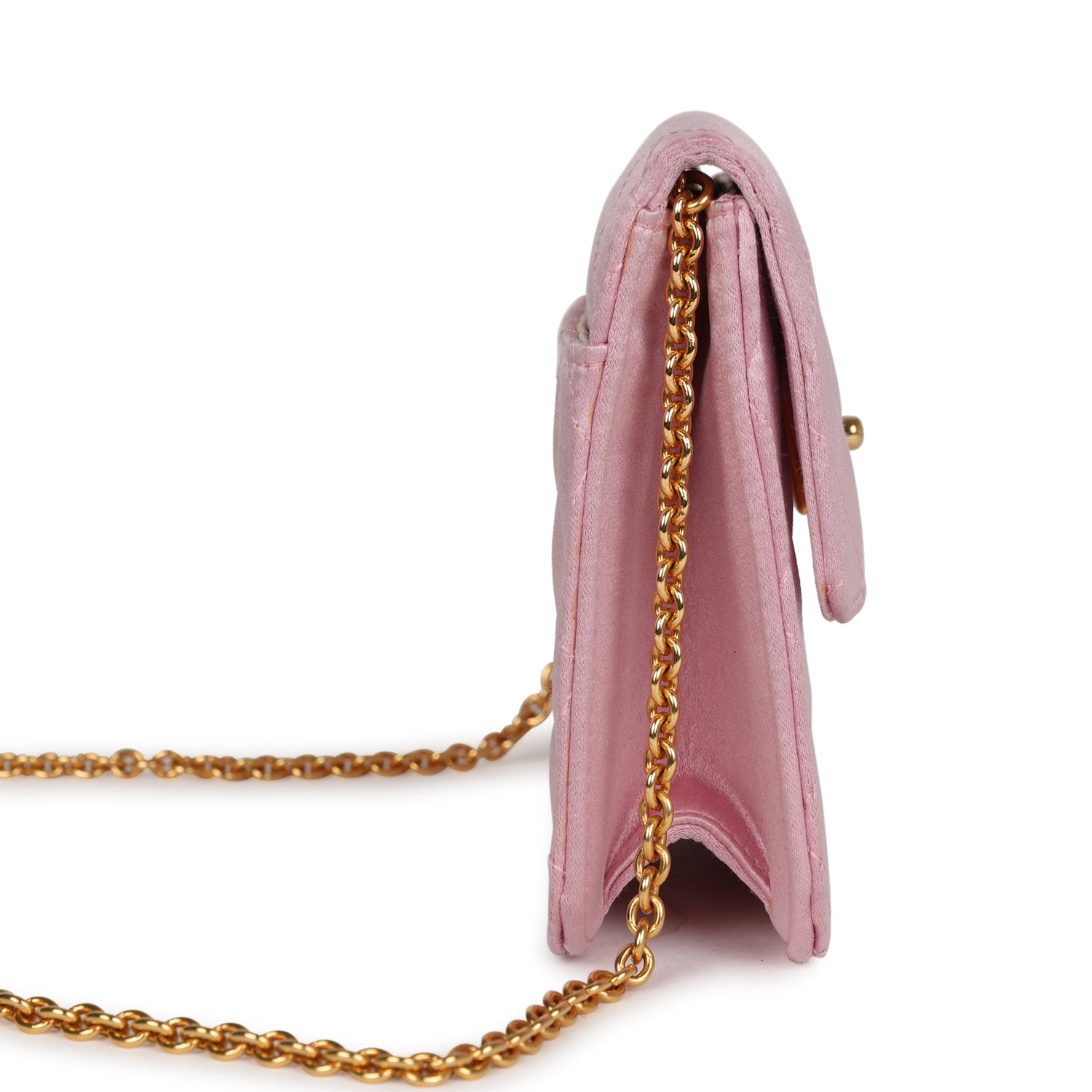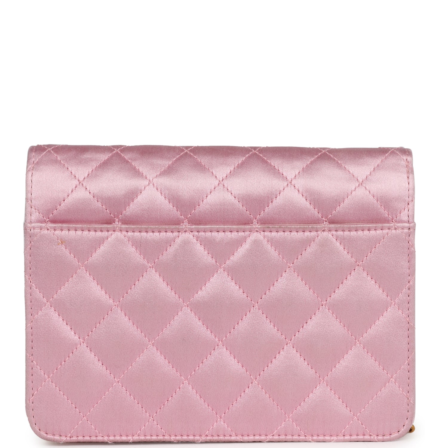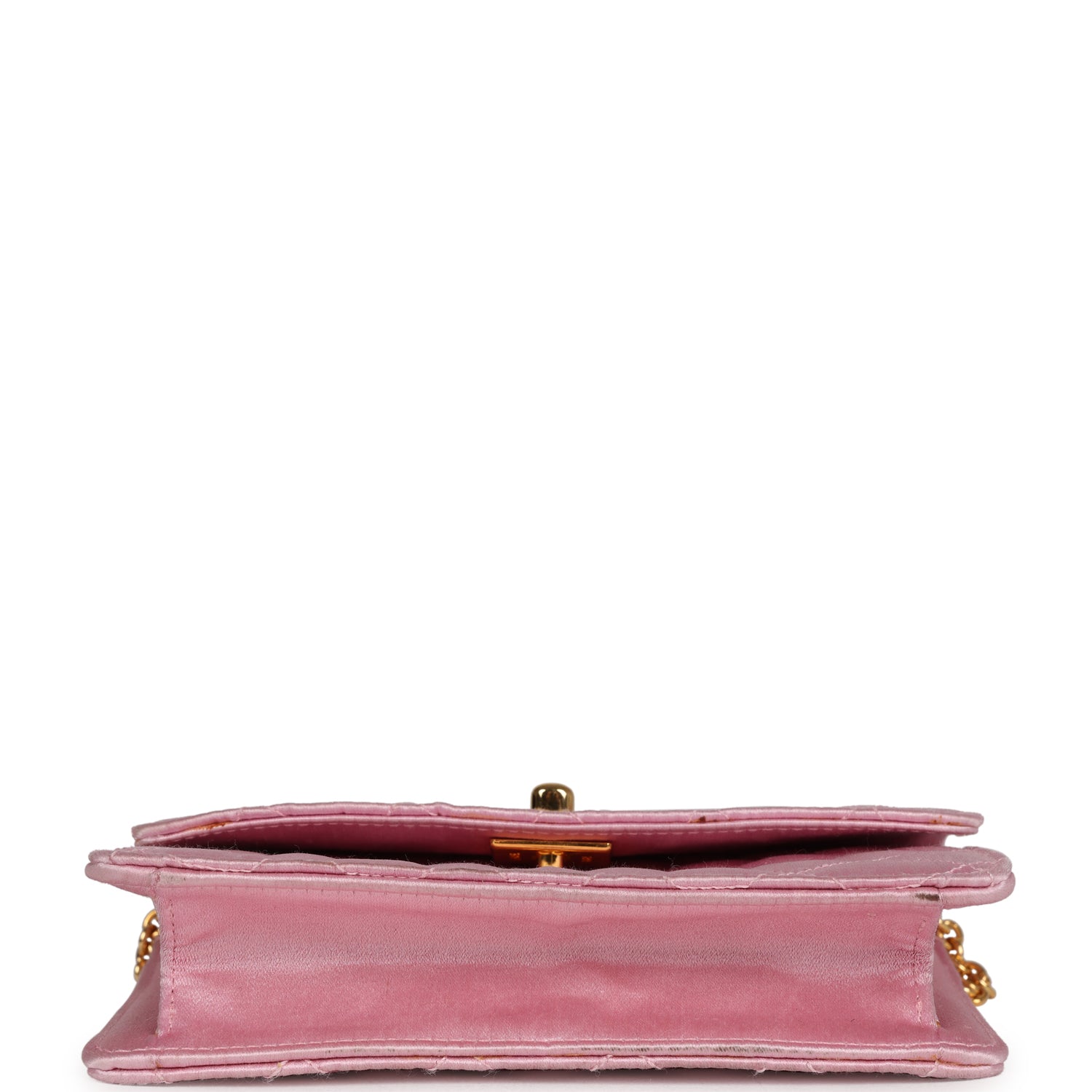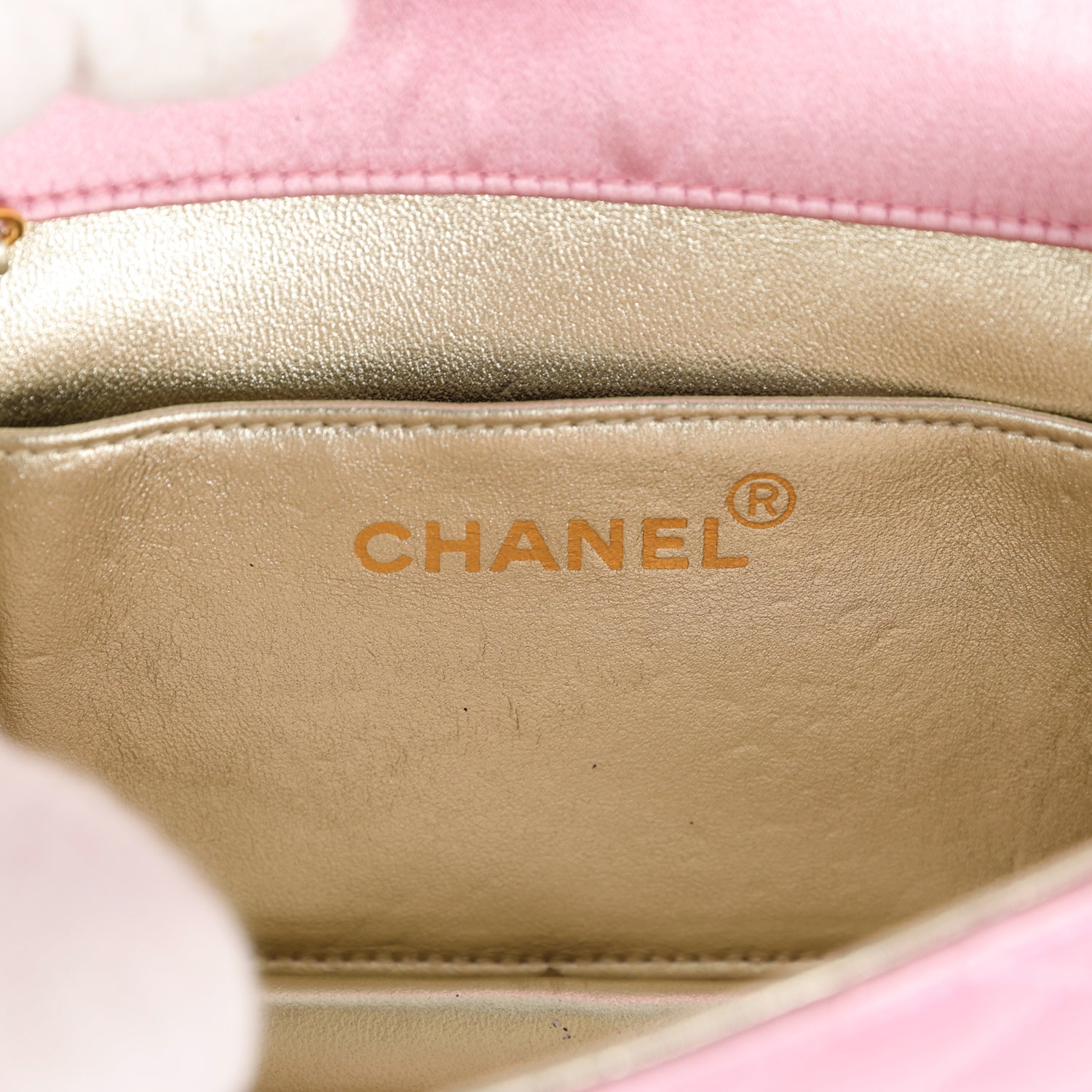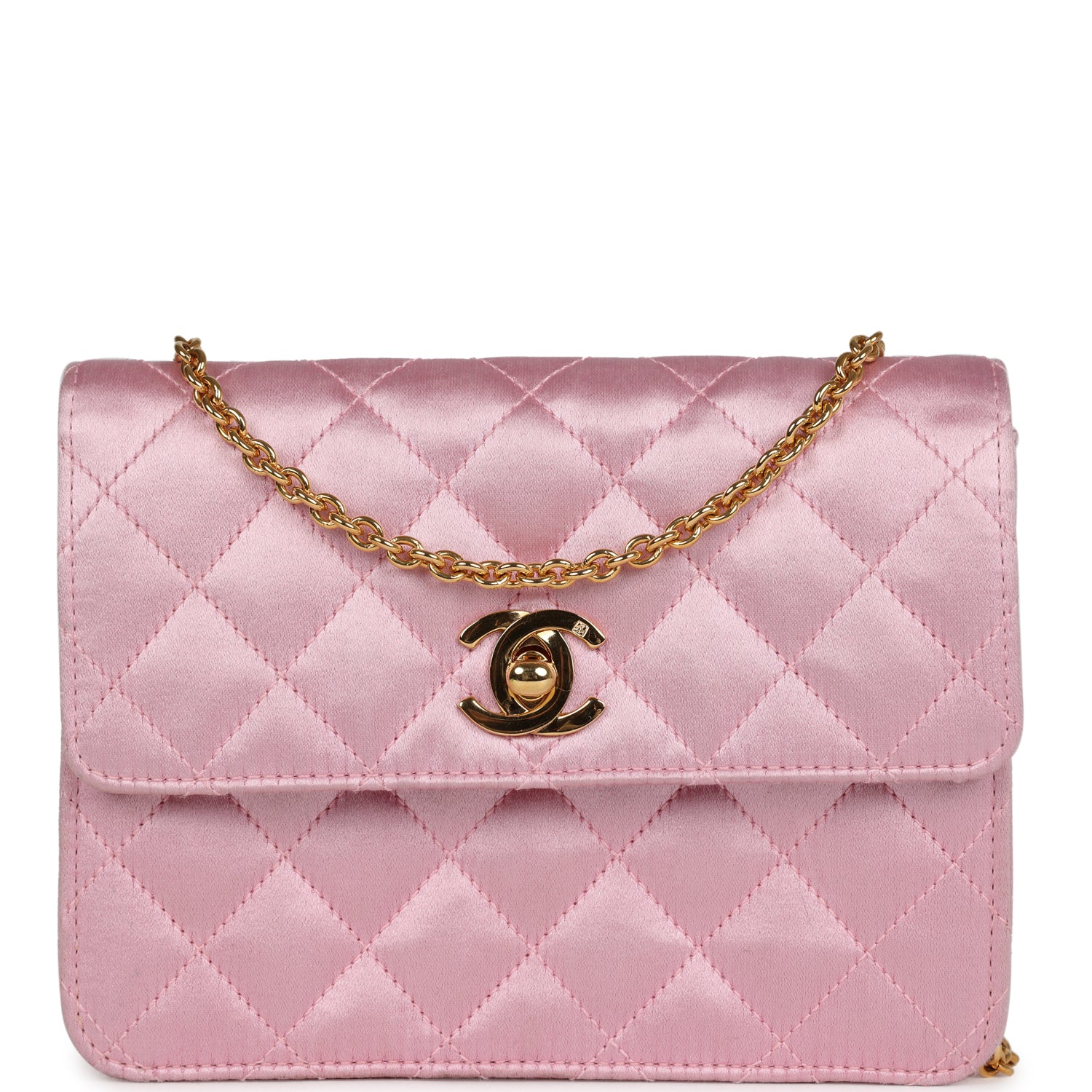 Chanel Mini Straight Flap Bag Pink Satin Gold Hardware