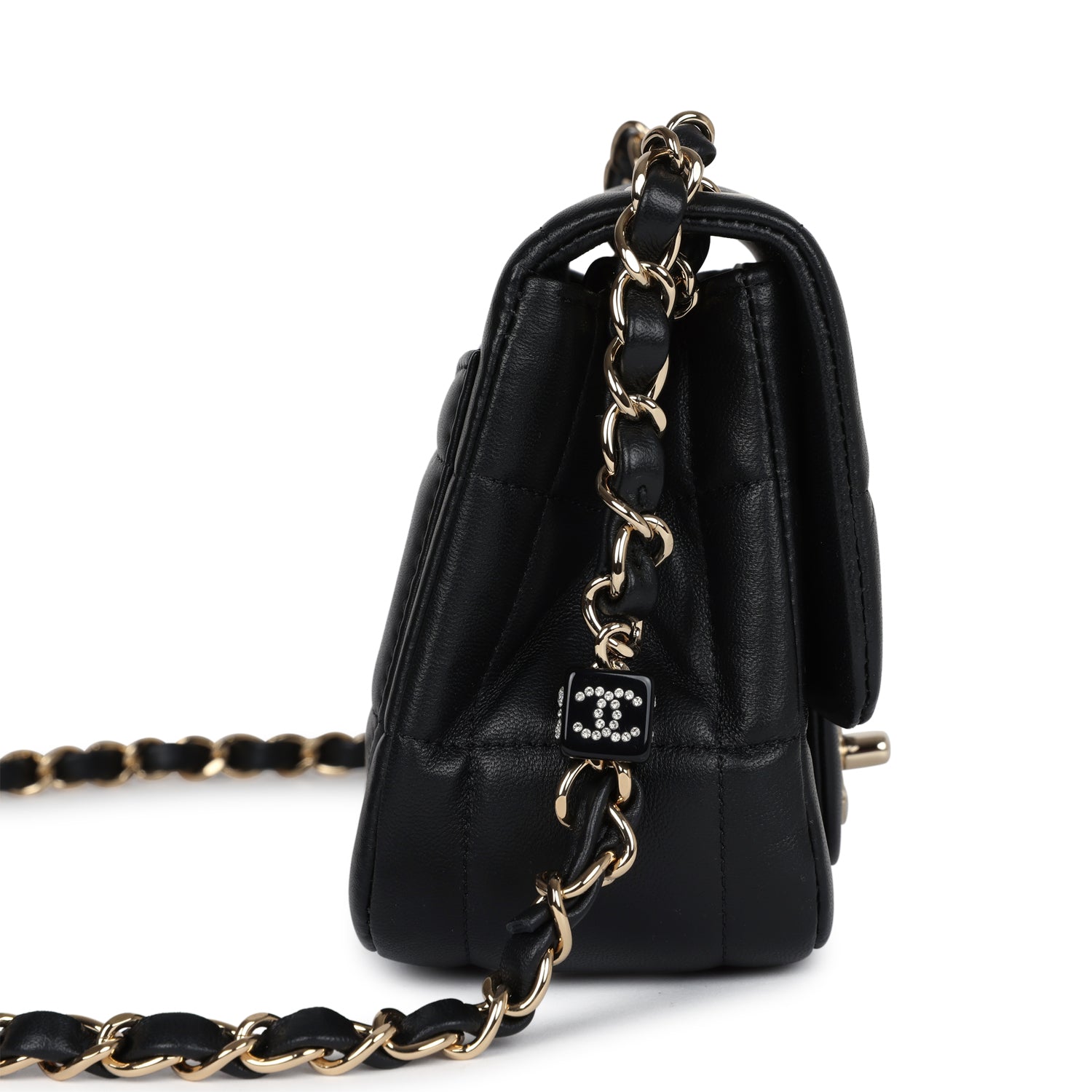 Chanel Monaco Mini Square Flap Bag Black Lambskin Light Gold Hardware
