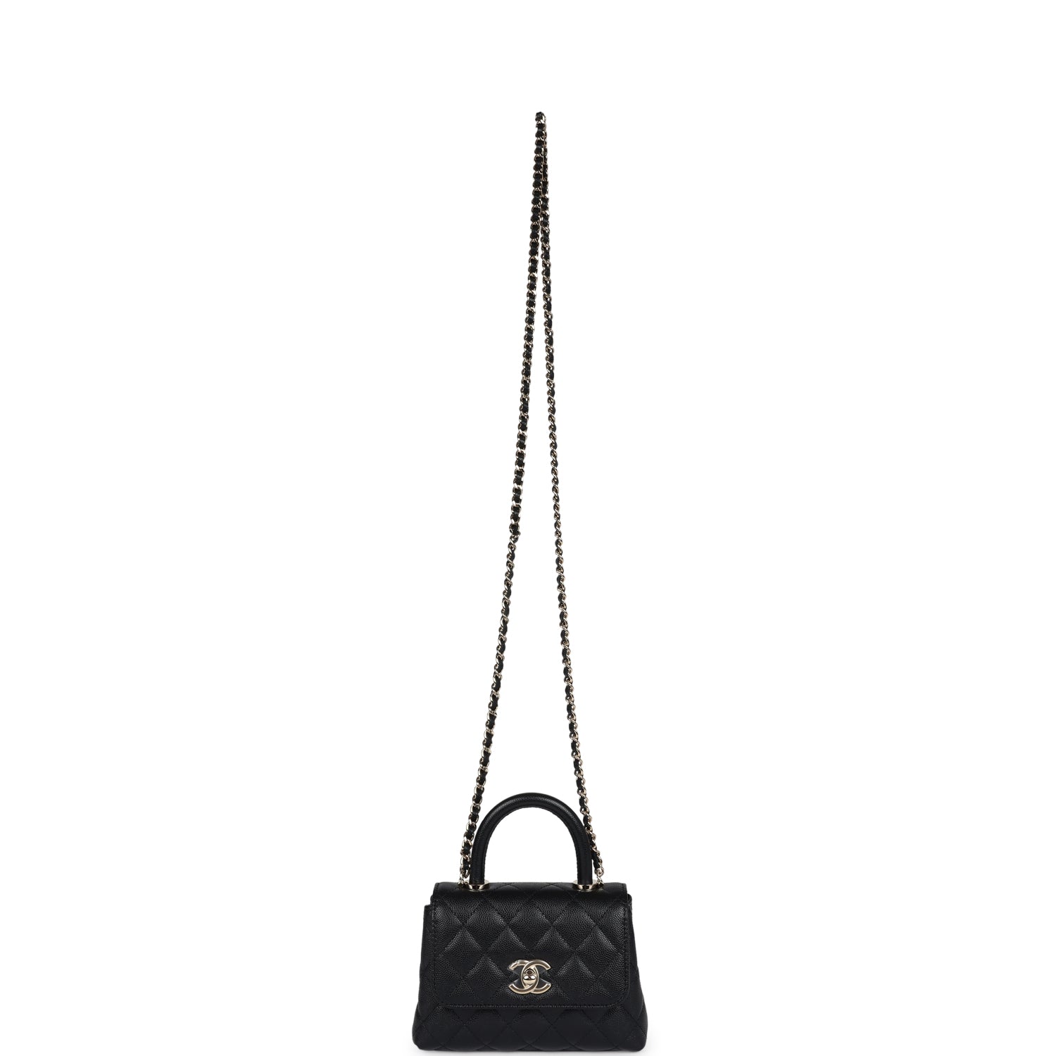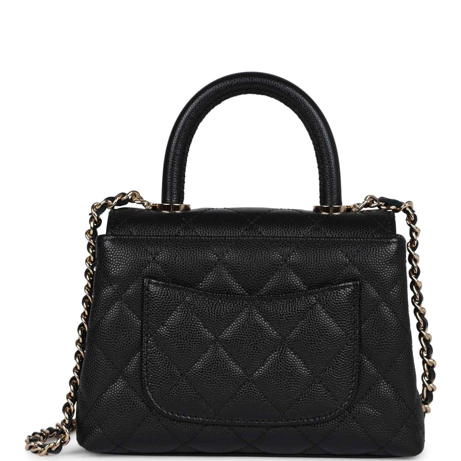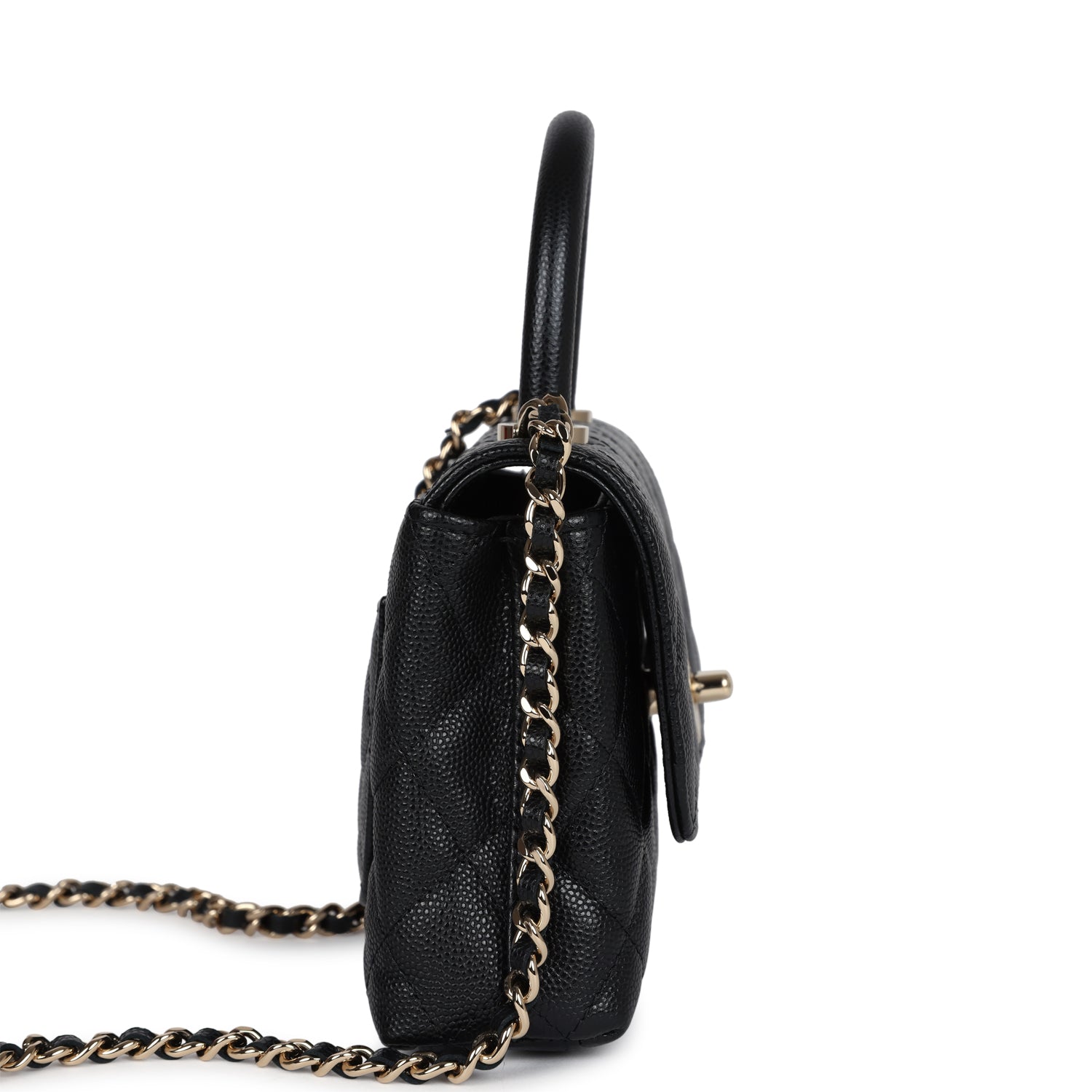 Chanel Nano Coco Top Handle Flap Bag Black Caviar Light Gold Hardware