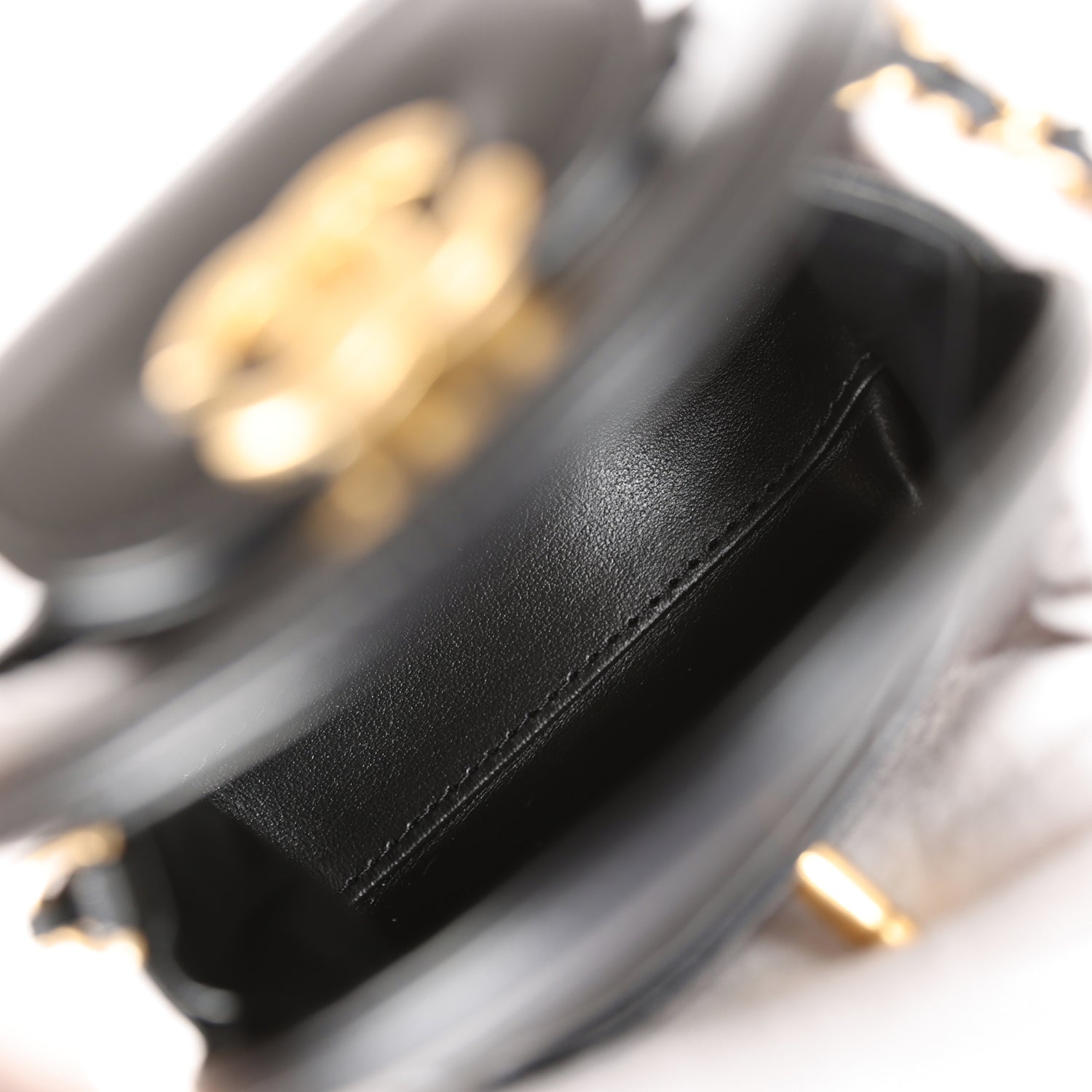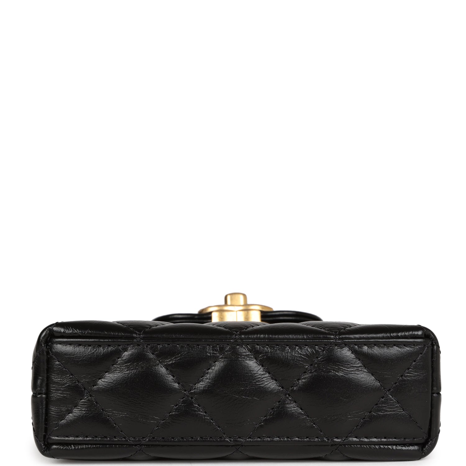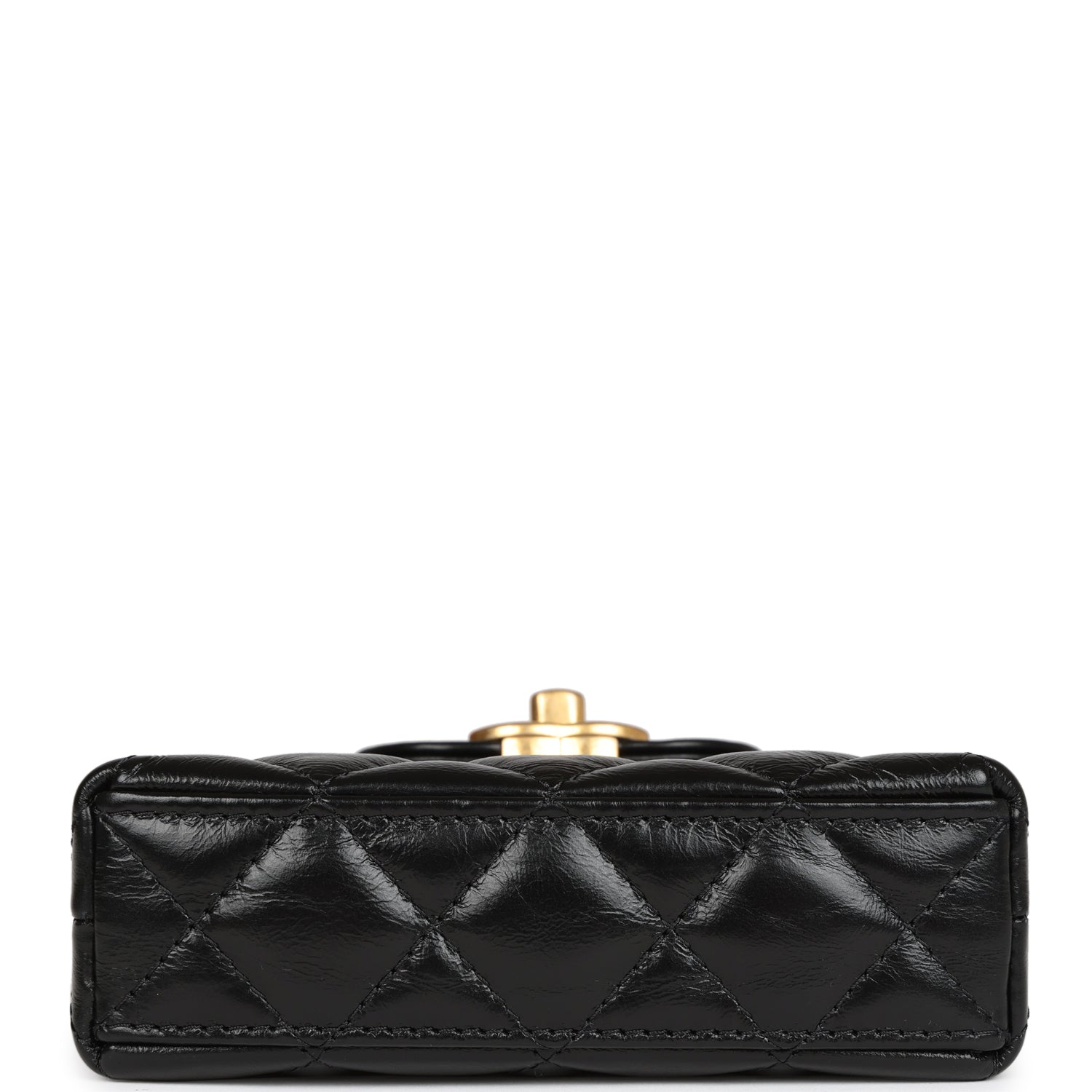 Chanel Nano Coco Top Handle Flap Bag Black Caviar Light Gold Hardware