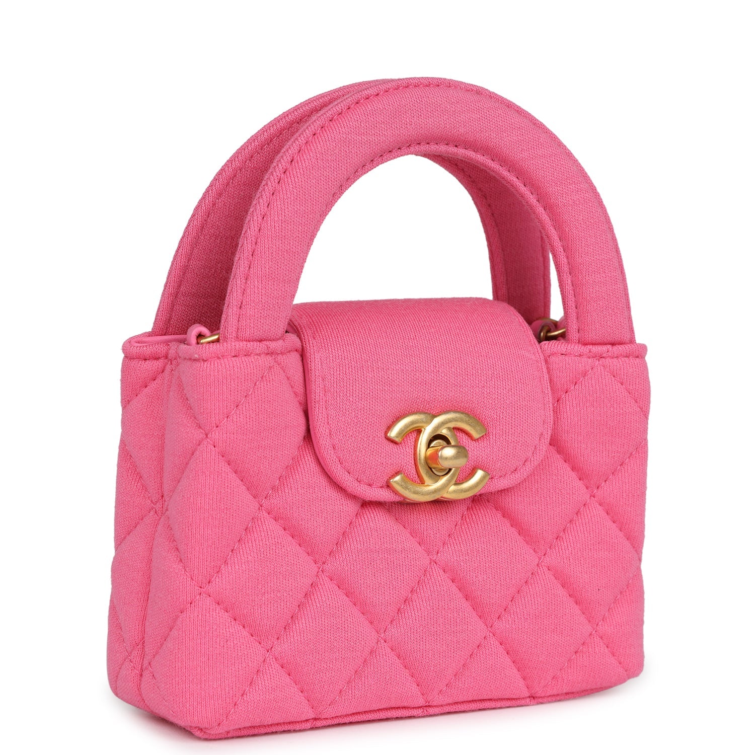 Chanel Nano Kelly Shopper Hot Pink Jersey Brushed Gold Hardware