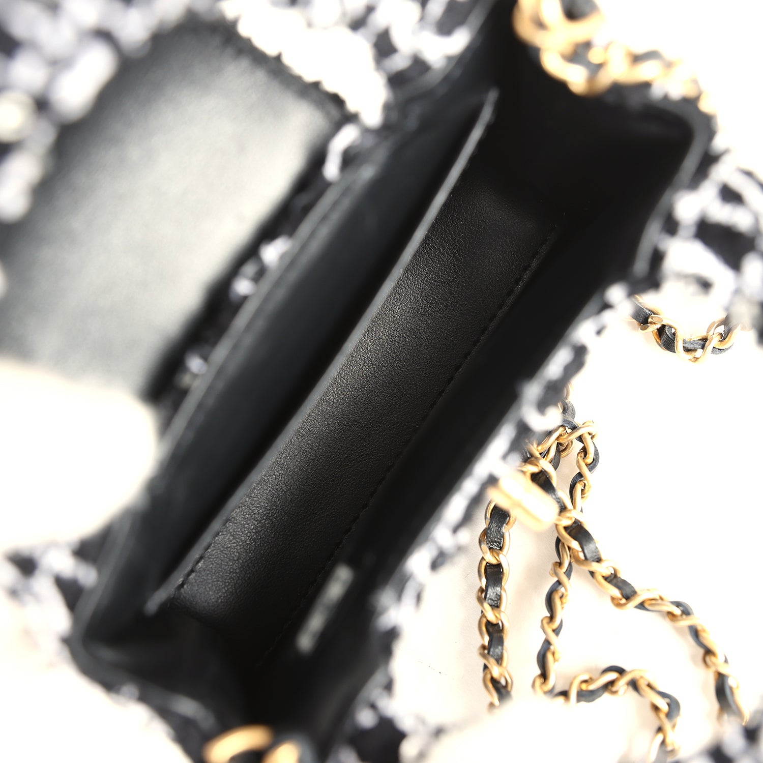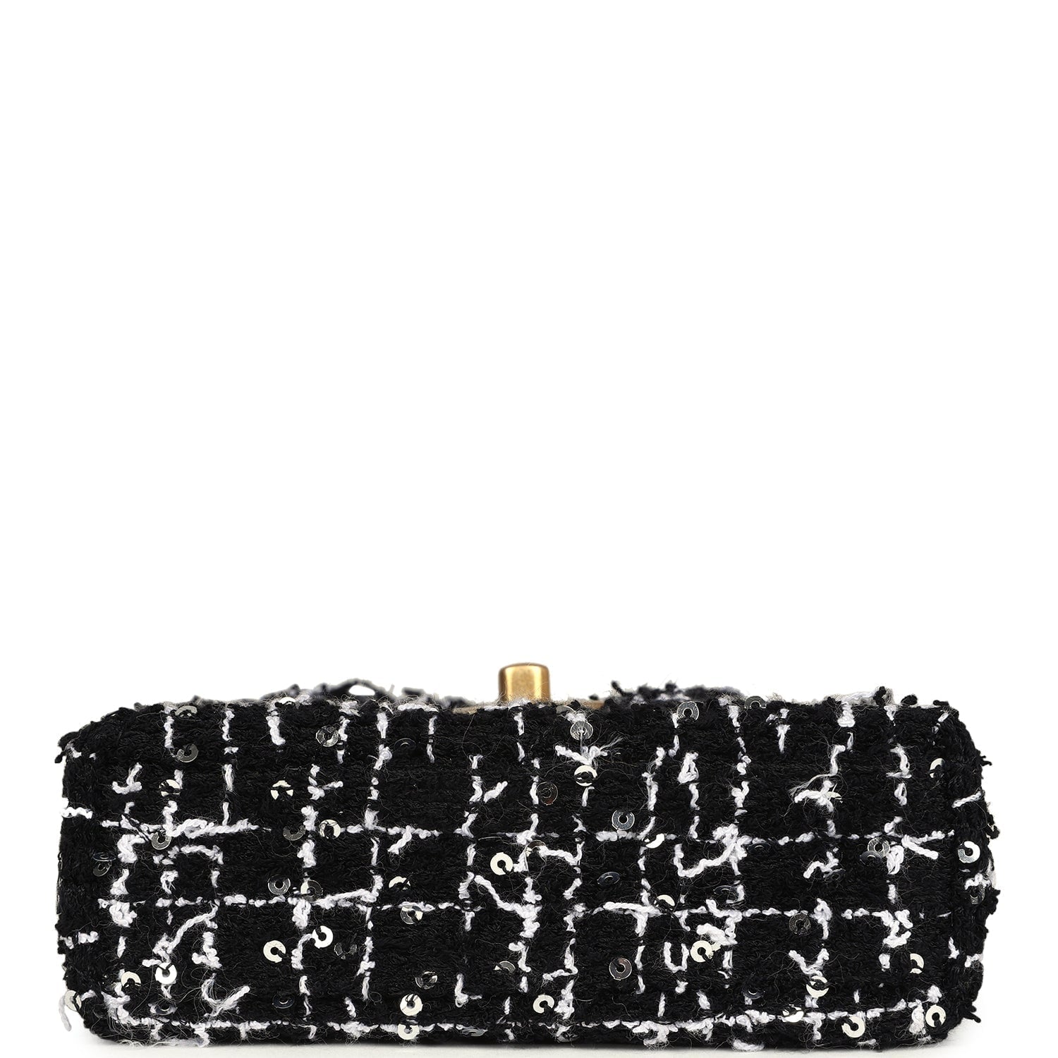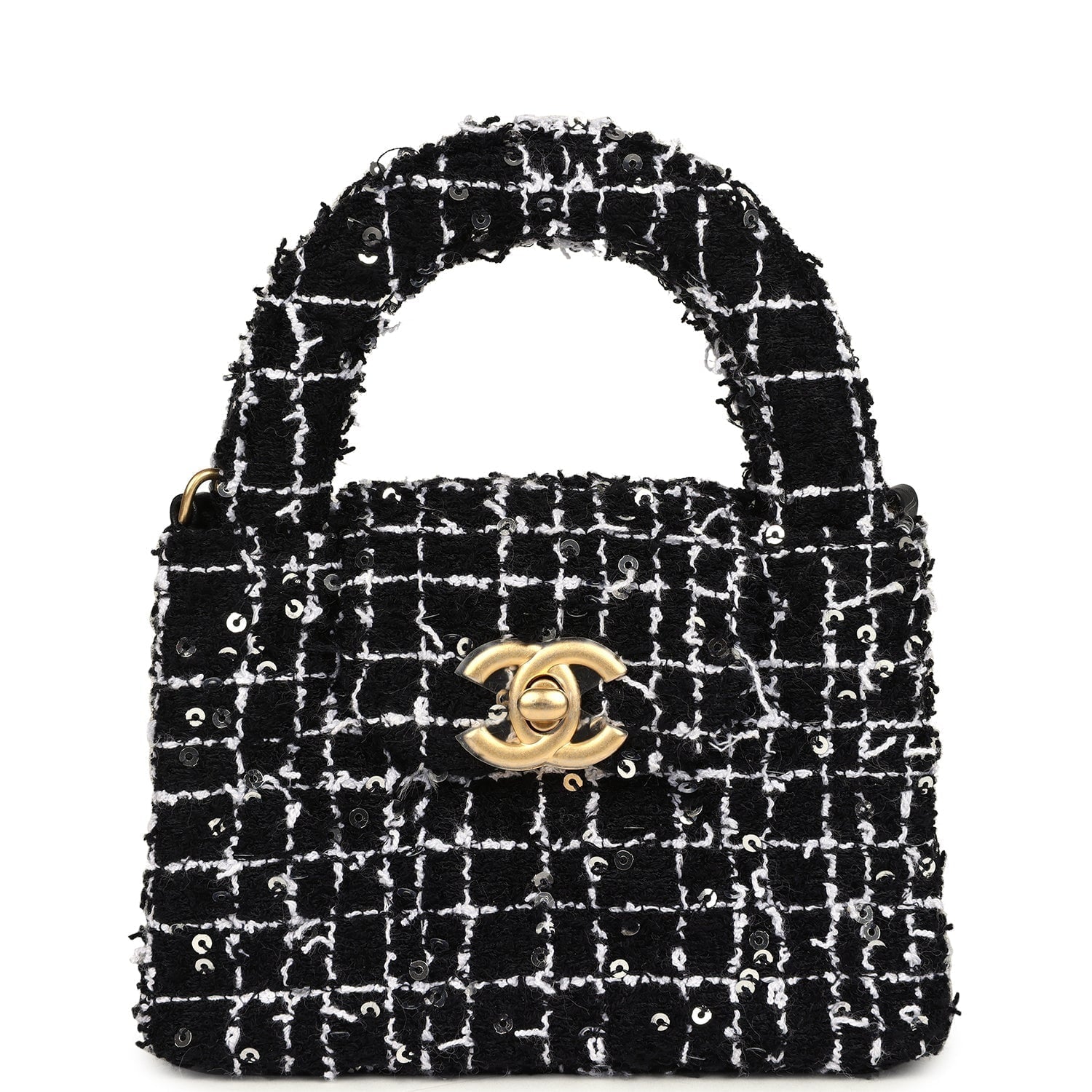 Chanel Nano Kelly Shopper Black, White & Sequin Tweed Brushed Gold Hardware