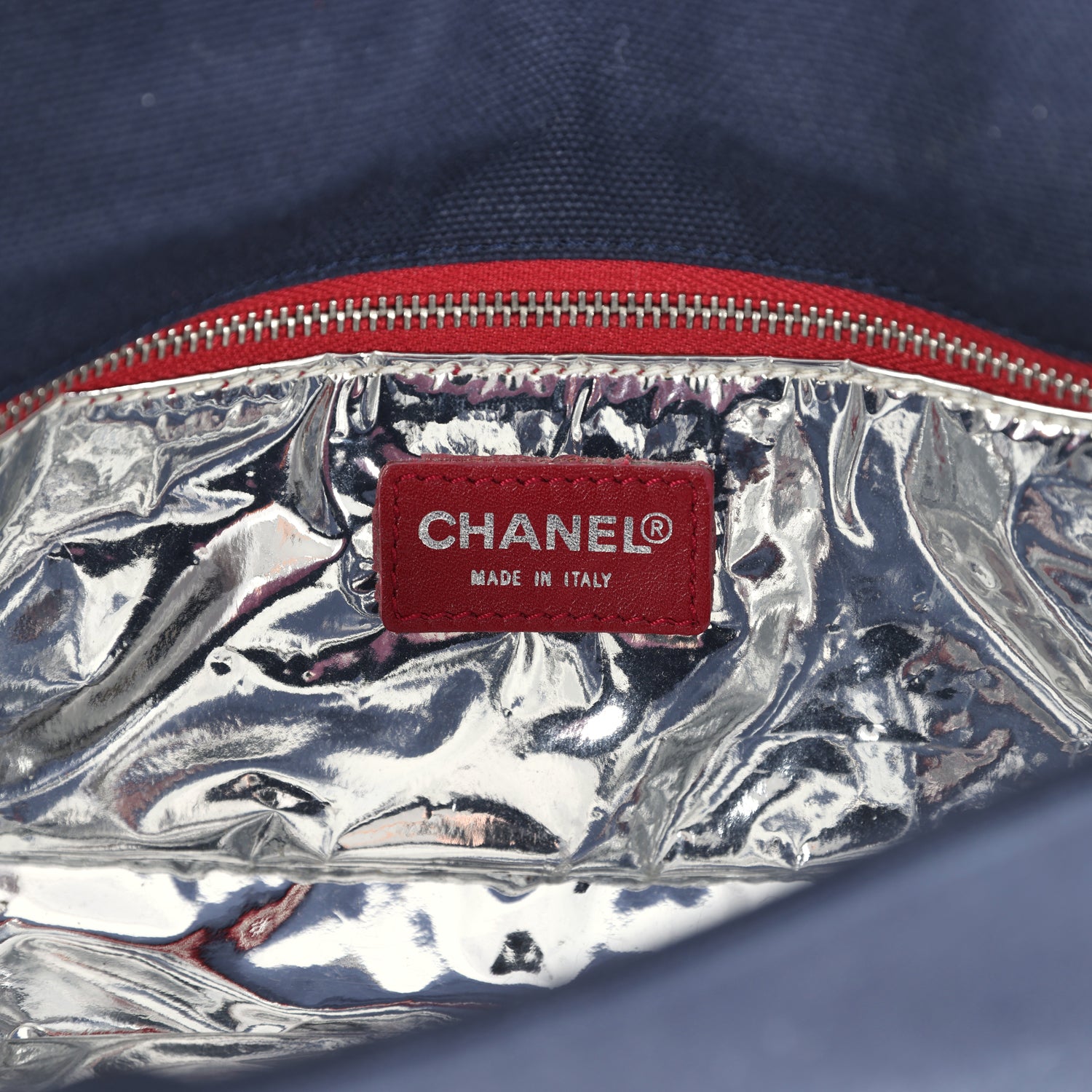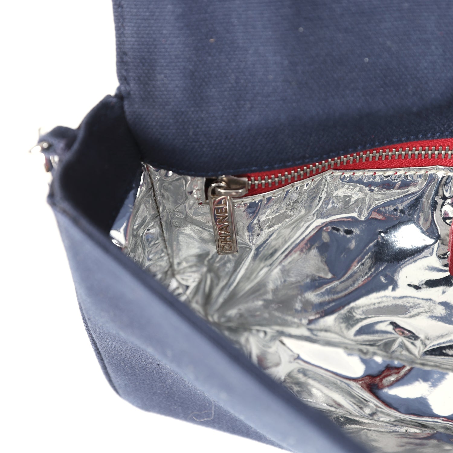 Chanel N0.5 Chain Shoulder Bag Navy, Silver, Red Canvas Silver Hardware