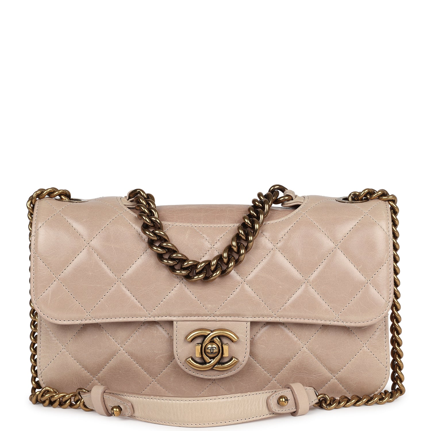 Chanel Perfect Edge Flap Bag Beige Aged Calfskin Antique Gold Hardware