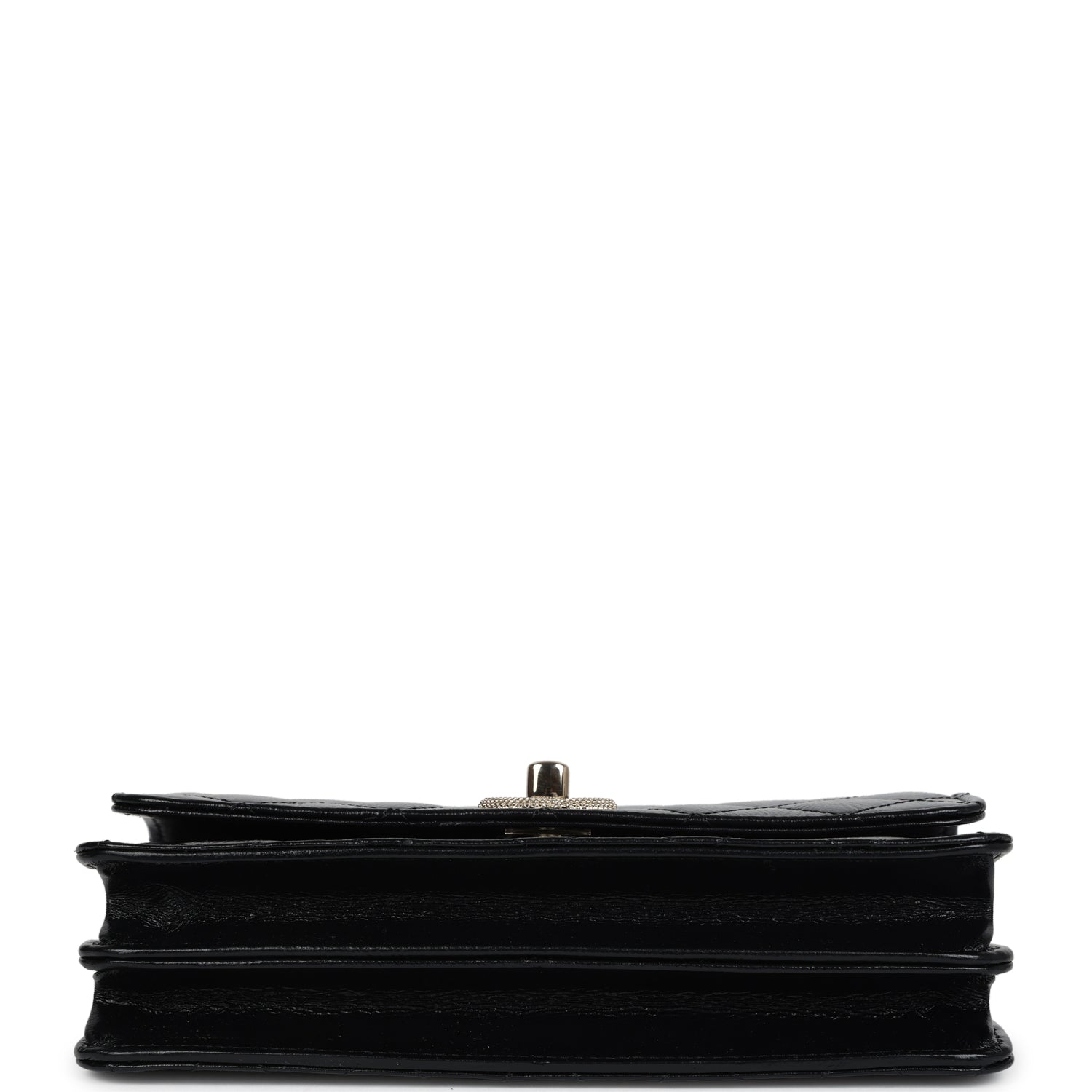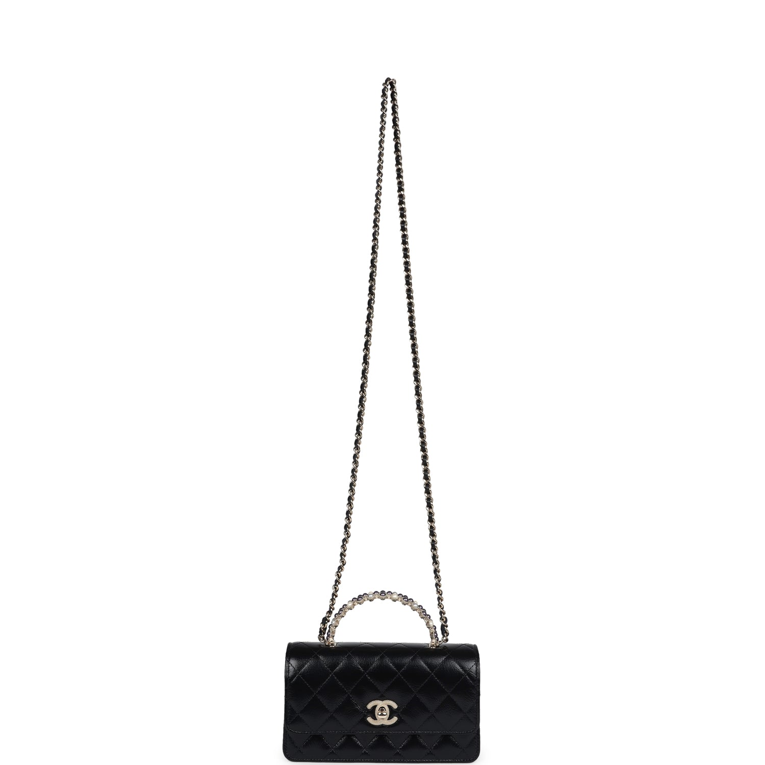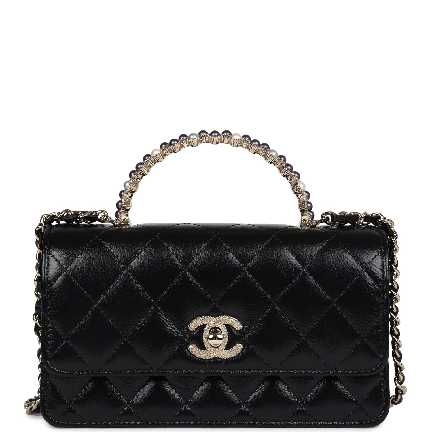 Chanel Pearl Top Handle Wallet on Chain WOC Black Shiny Aged Calfskin Light Gold Hardware